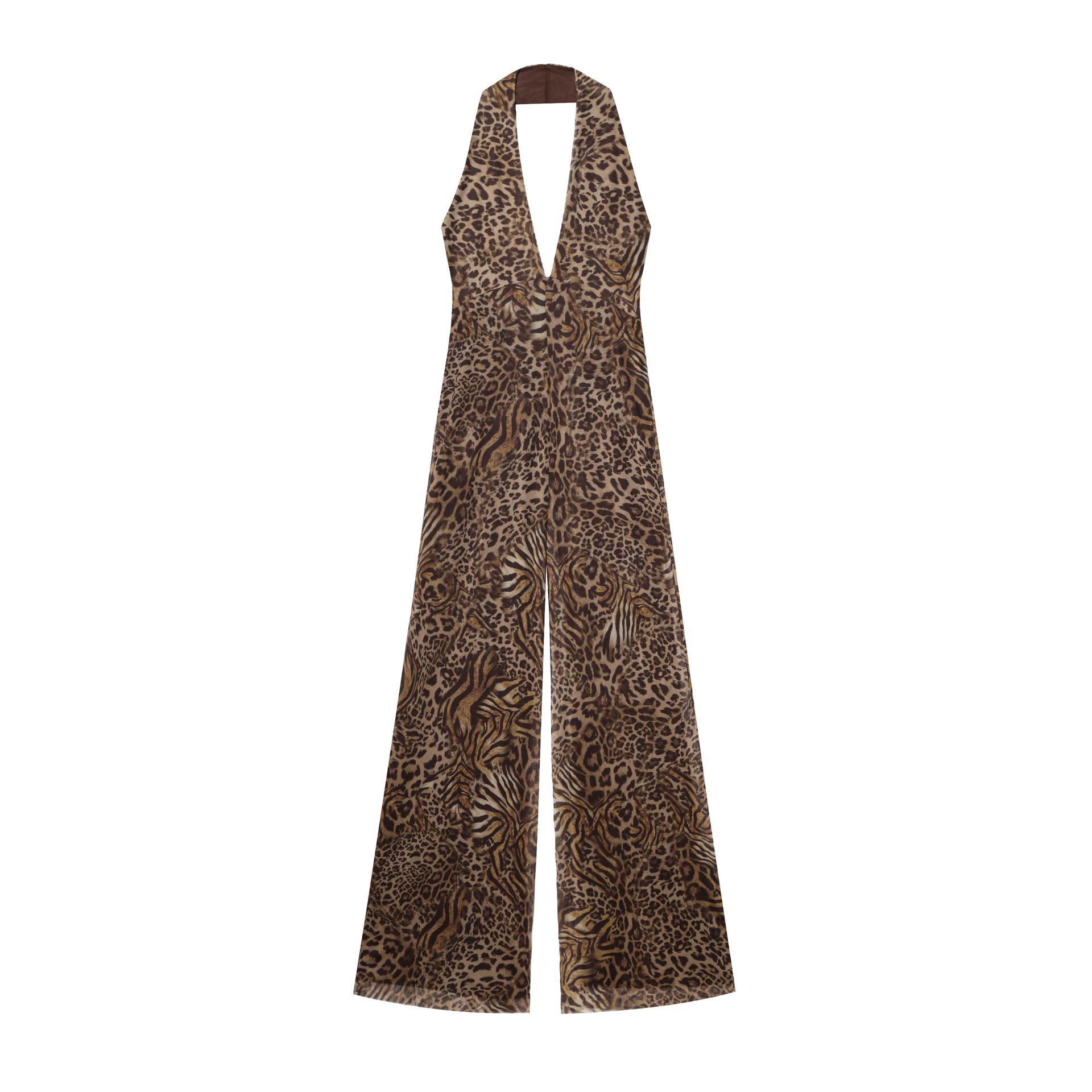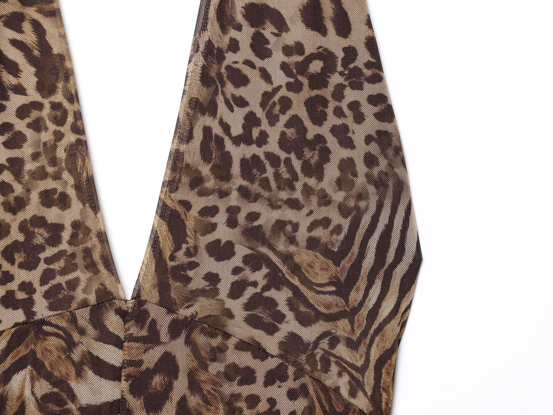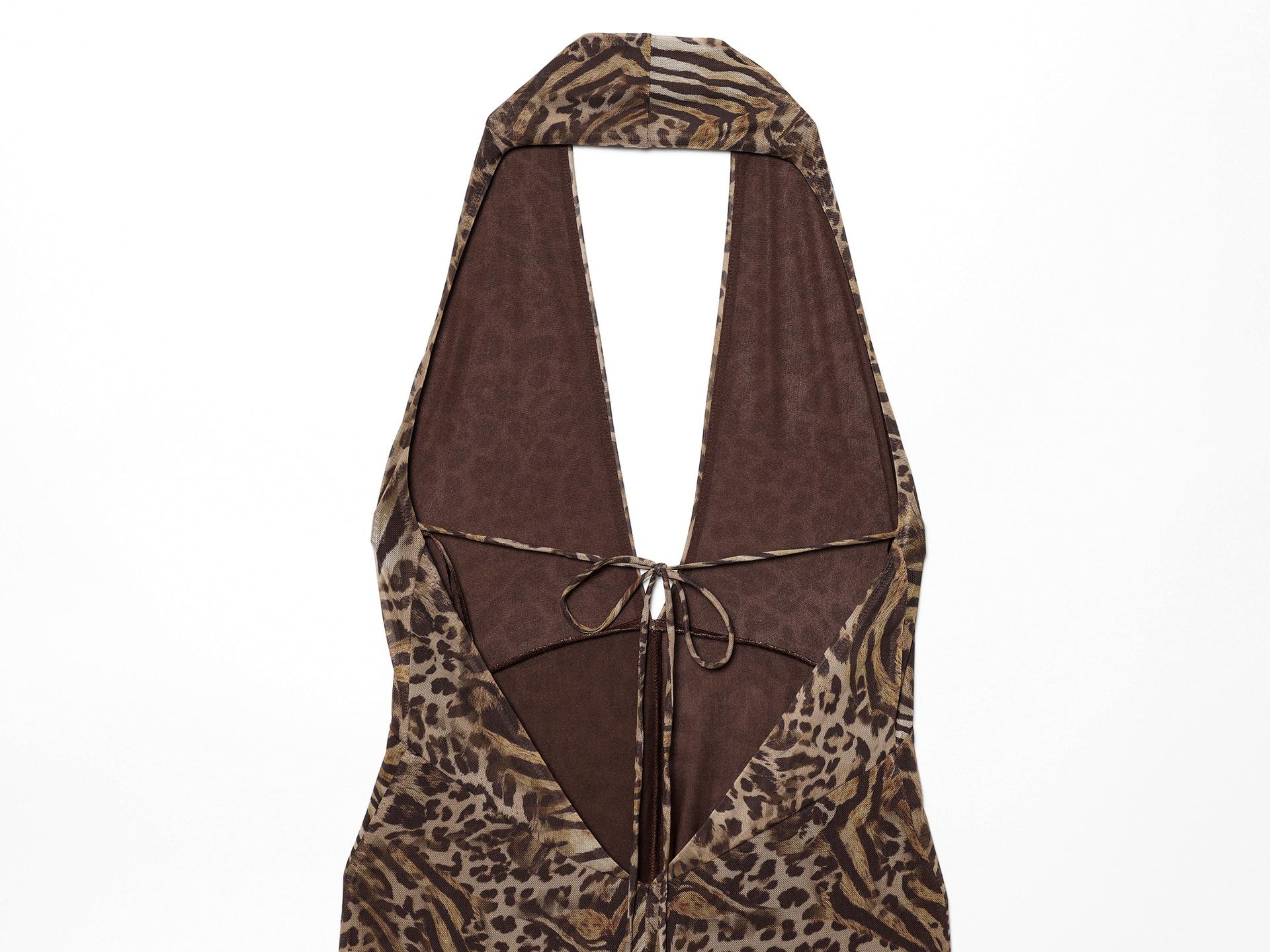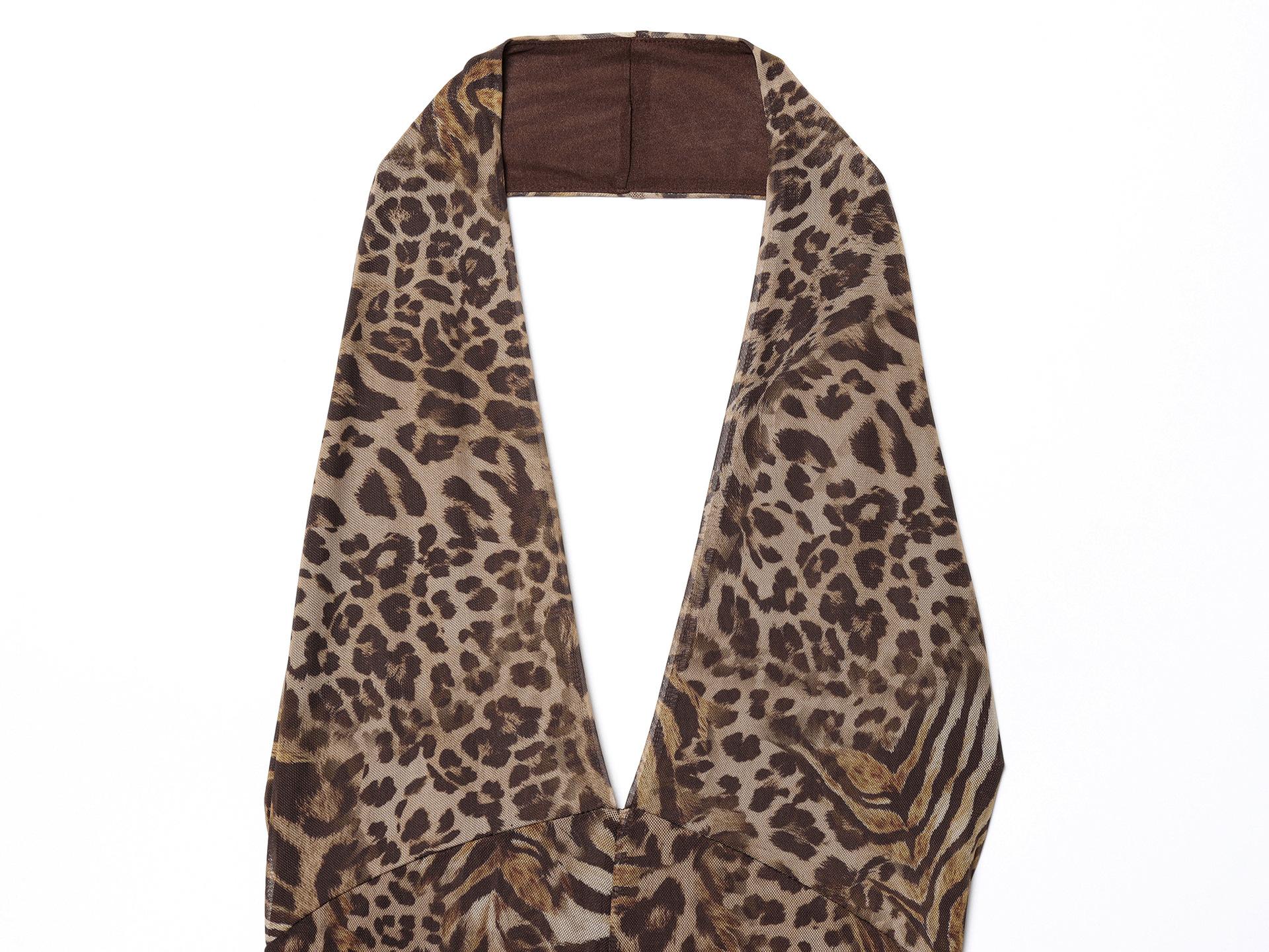 2025 Nueva Ropa de Verano para Mujer Estilo Europeo y Americano Moda Estampado Animal Tul Halter Mono 5039147