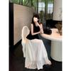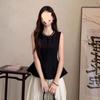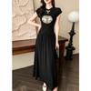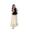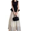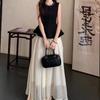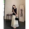 2025 Nuevo Verano Cuentas Nuevo Estilo Chino Estilo Traje Sin Mangas Top Chaleco Negro Falda Cintura Alta Conjunto de Dos Piezas
