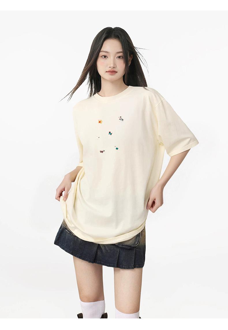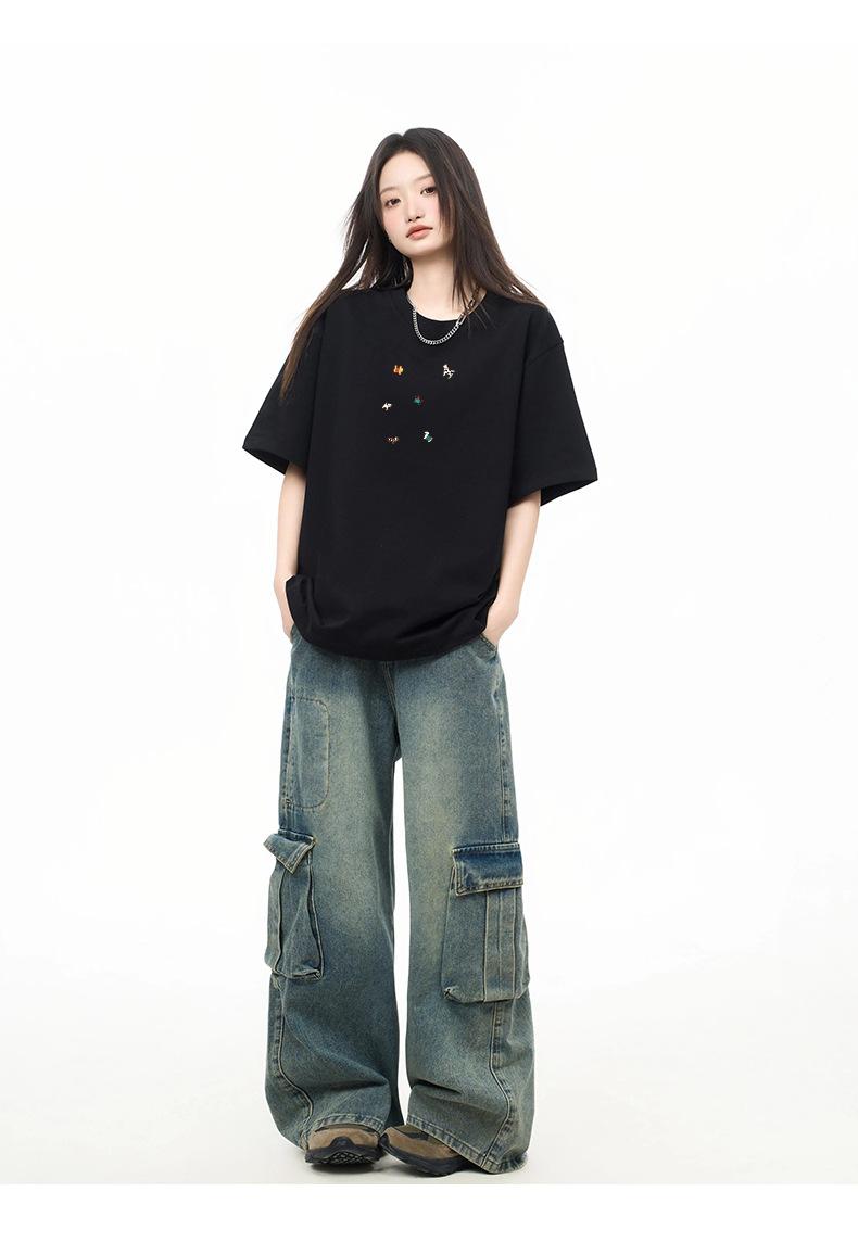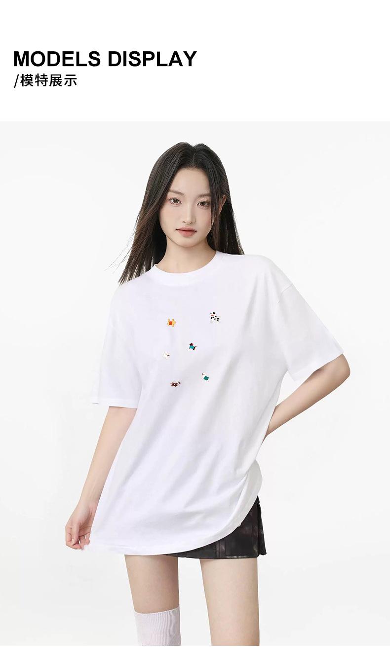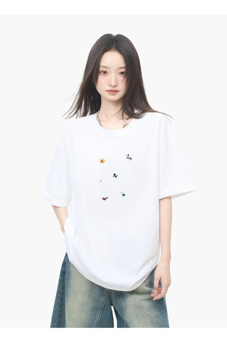 Verano Estilo Hermoso Camiseta Estampado Simple Hombre 230g Algodón Puro Ropa de Calle Cuello Redondo Manga Corta Suelta Casual Versátil Top