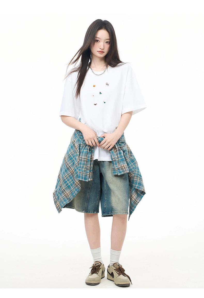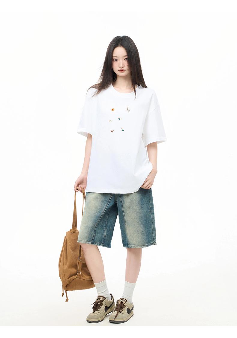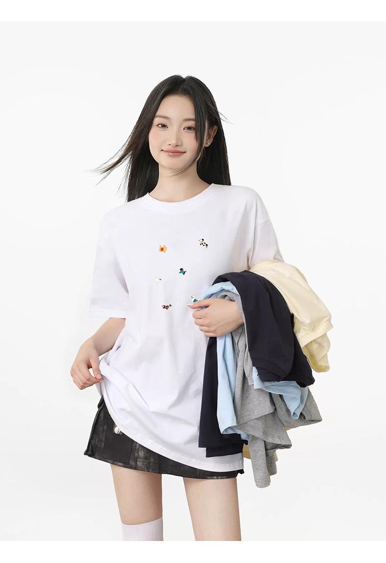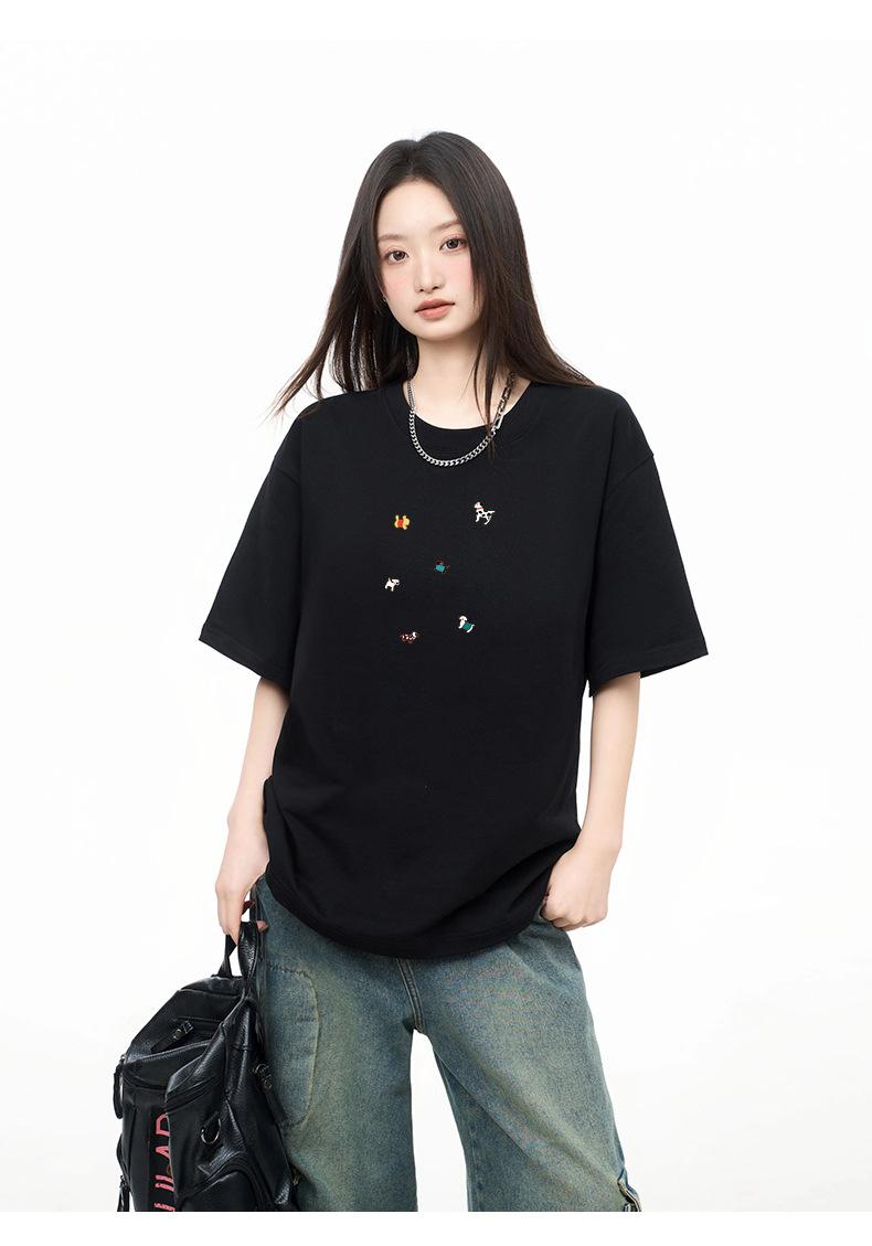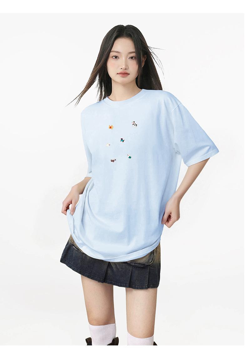 Verano Estilo Hermoso Camiseta Estampado Simple Hombre 230g Algodón Puro Ropa de Calle Cuello Redondo Manga Corta Suelta Casual Versátil Top