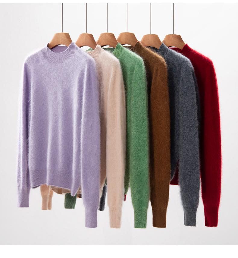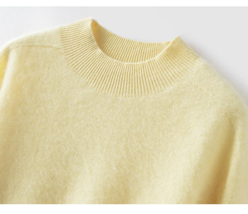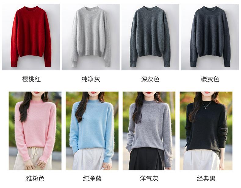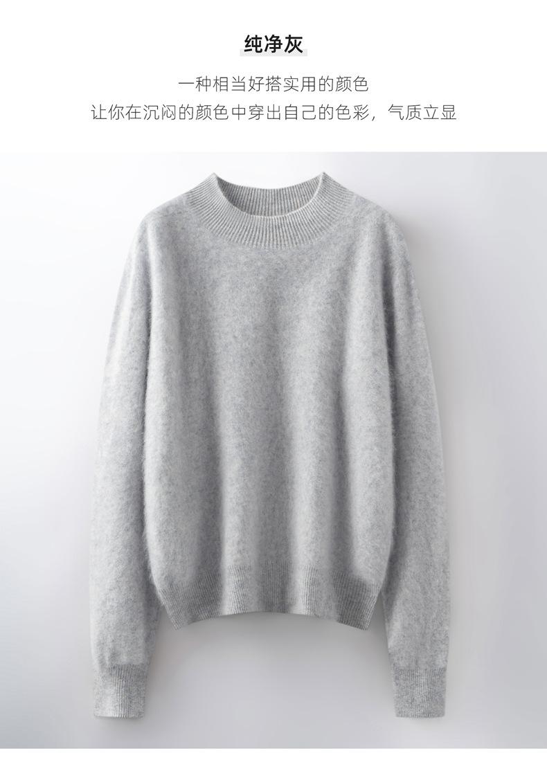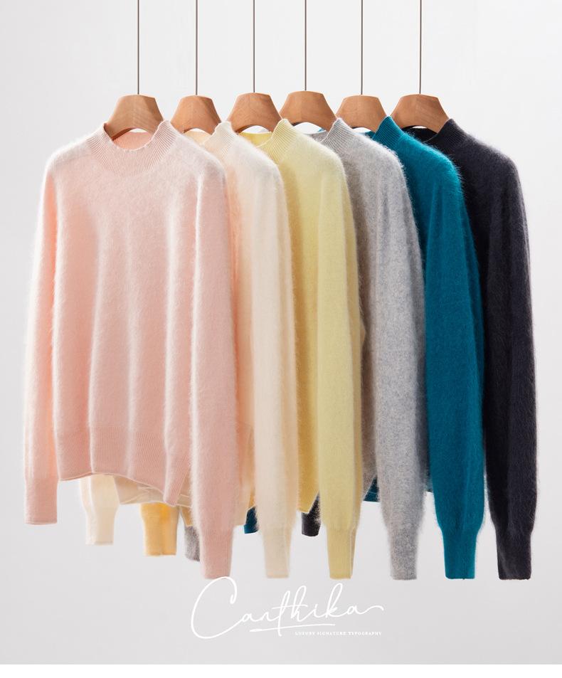 Suéter Jersey de Una Pieza de Cachemira Sin Costuras Cepillado Cuello Redondo Básico Holgado de Lana para Otoño/Invierno para Mujer