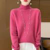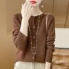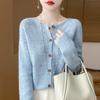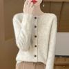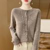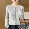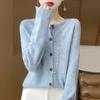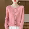 Otoño e invierno 2024 nuevo cárdigan de punto de lana pura de primera línea de cuello redondo y manga larga para mujer, top holgado colorido