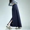 Falda midi de mezcla de lana 2025 nueva para mujer primavera y otoño cuadros rojos línea A adelgazante cintura alta ajustada a la cadera falda corta petite