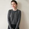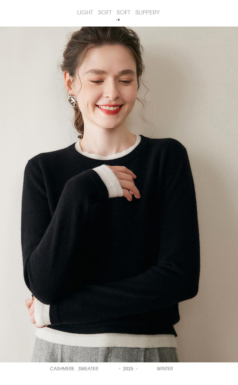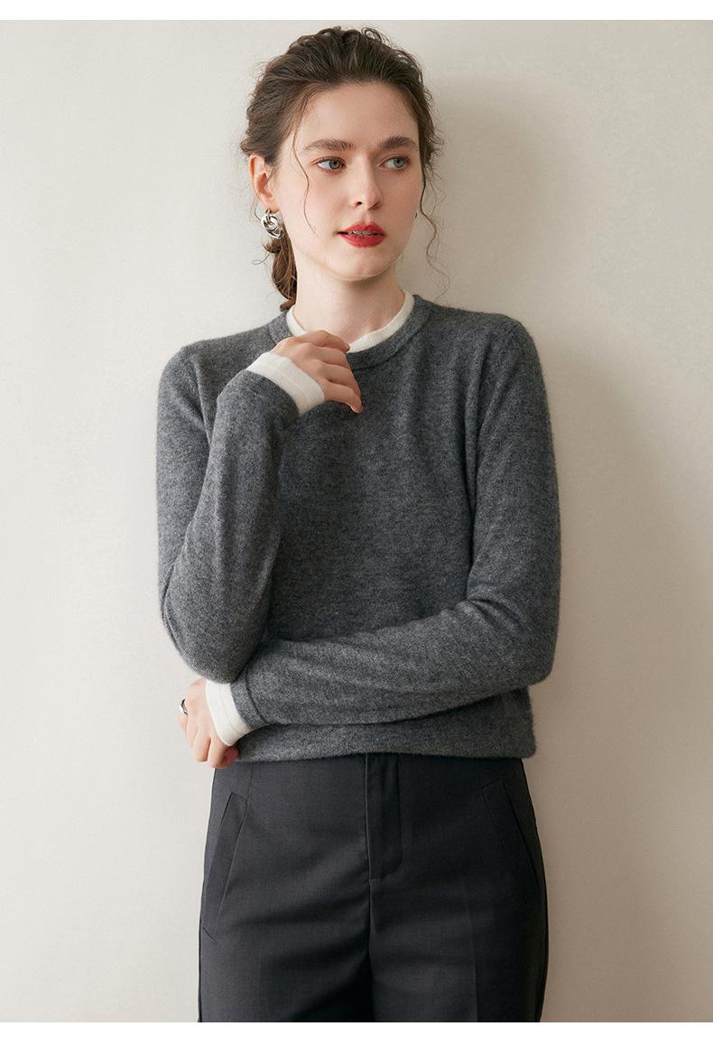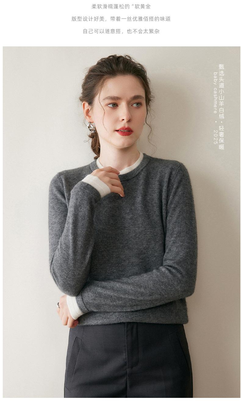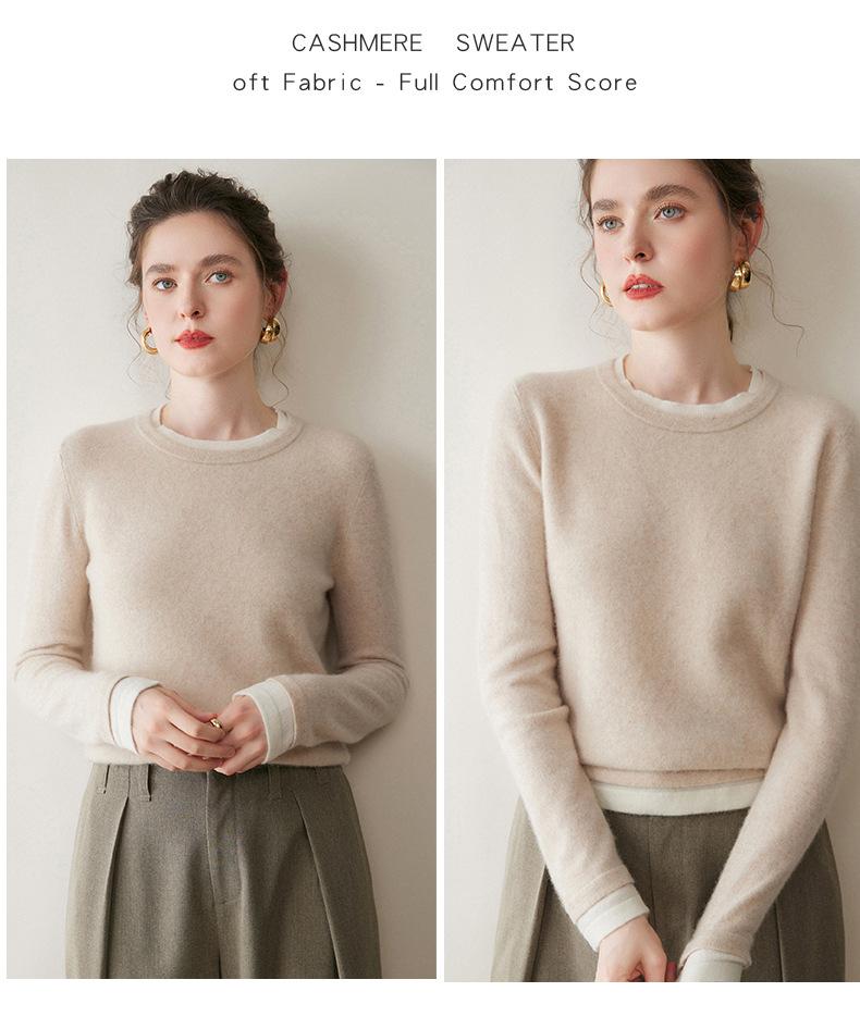25 Otoño/Invierno Nuevo Suéter Holgado de Cachemira Falso de Dos Piezas para Mujer Cuello Redondo Jersey Bloque de Color Tejido Base Moda Top