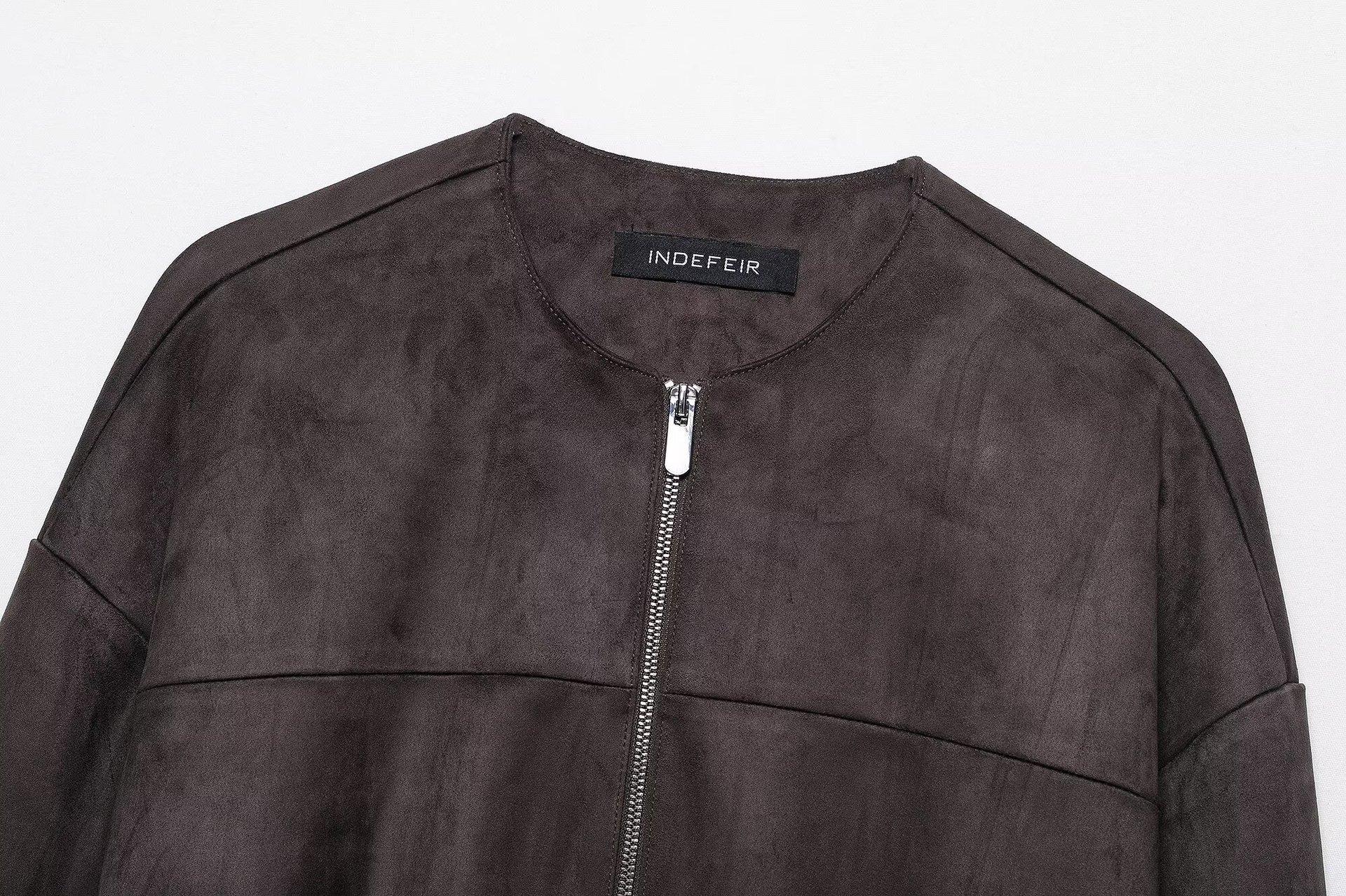 Ropa Nueva de Otoño 2025 para Mujer Estilo Europeo y Americano Moda Simple Chaqueta Abrigo Efecto Ante 6318256
