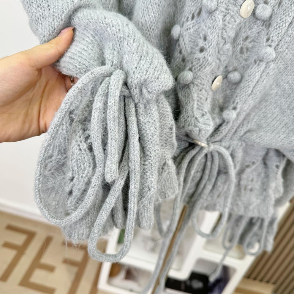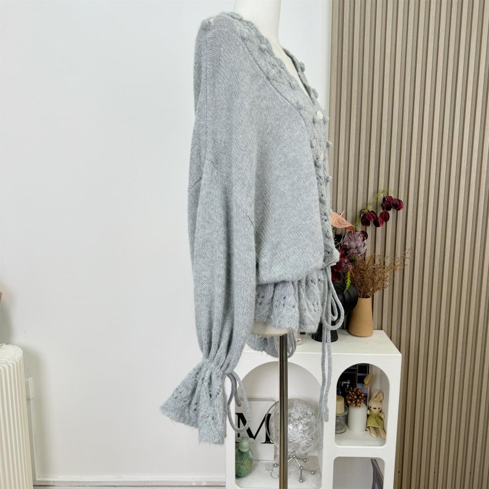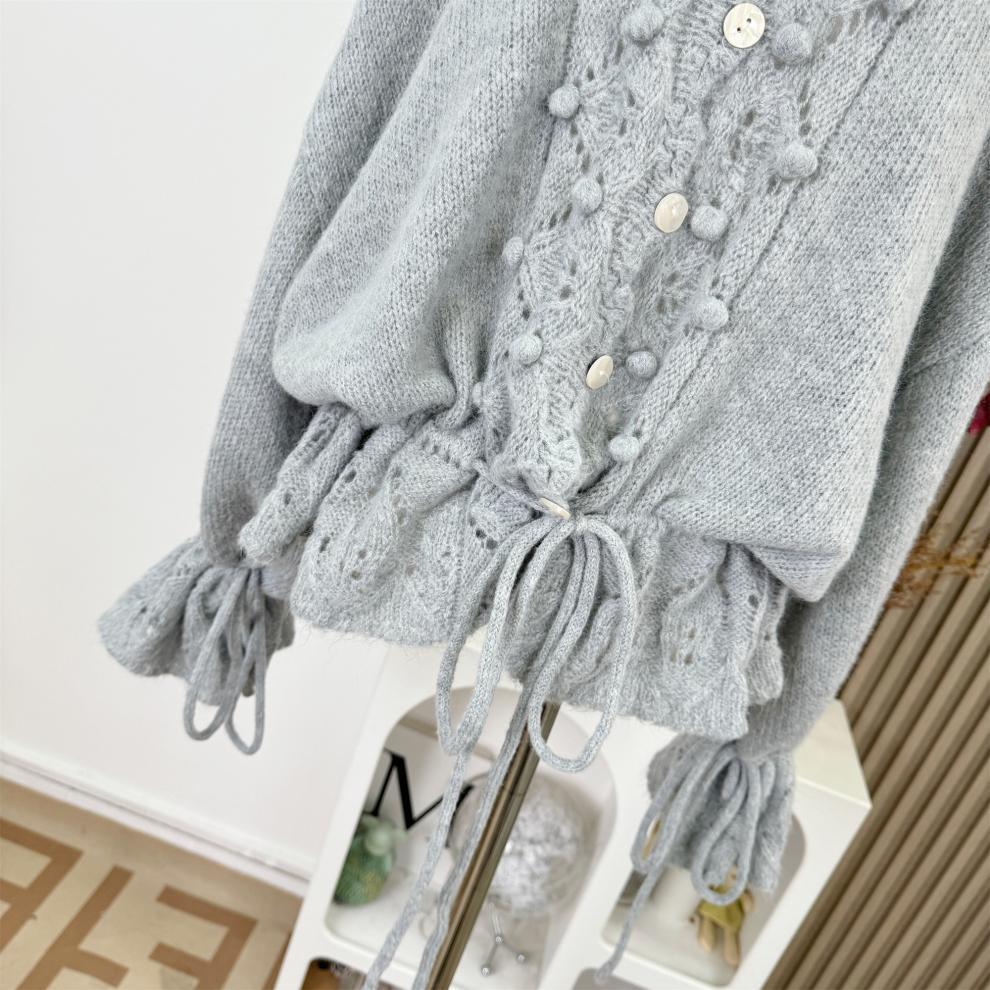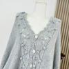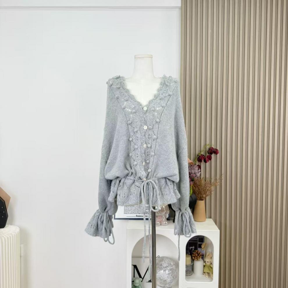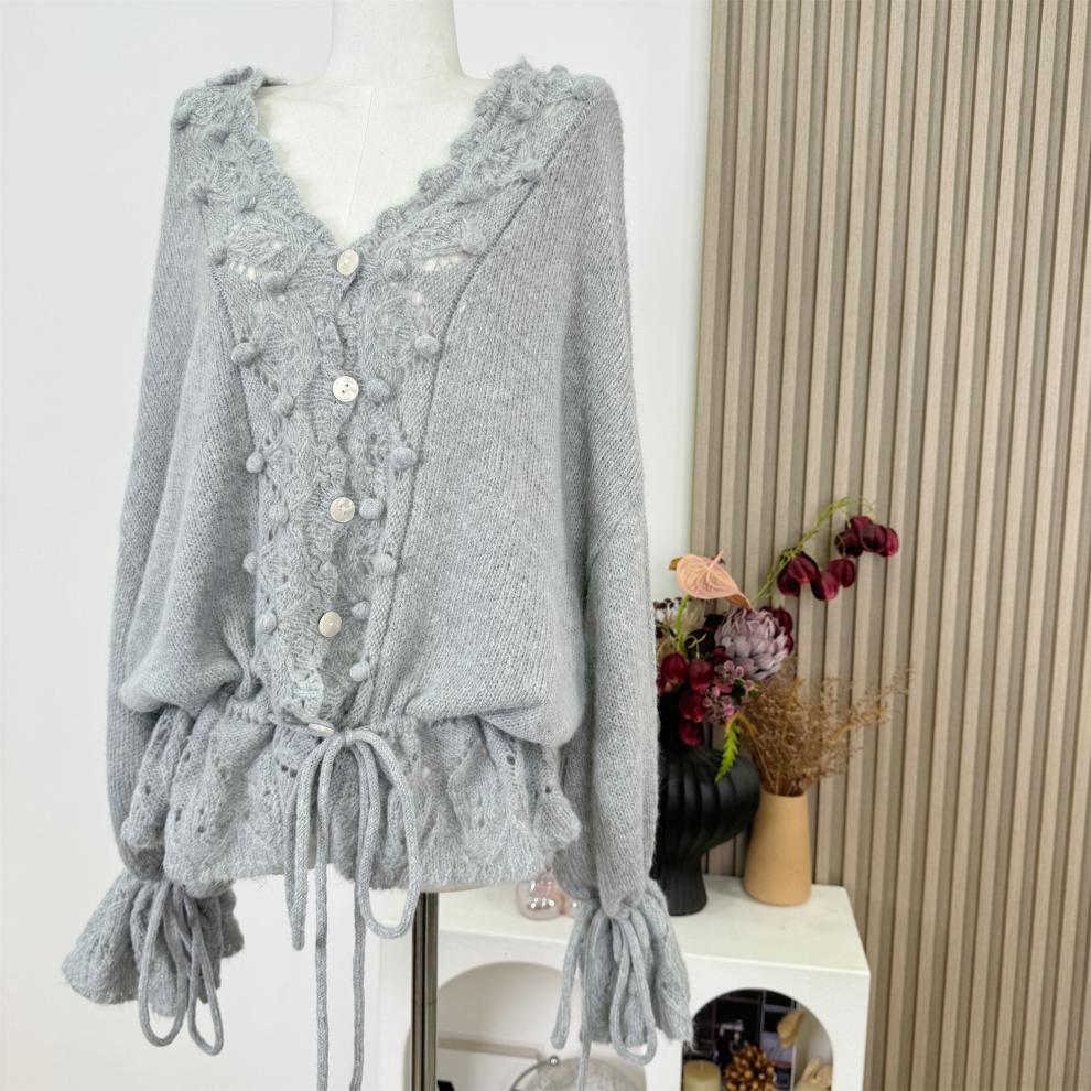 Suéter Nube Cálida Cuello en V Hueco Holgado con Cordón Estilo Lazy Tejido Top Adelgazante Mujer Otoño