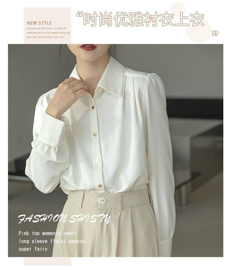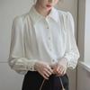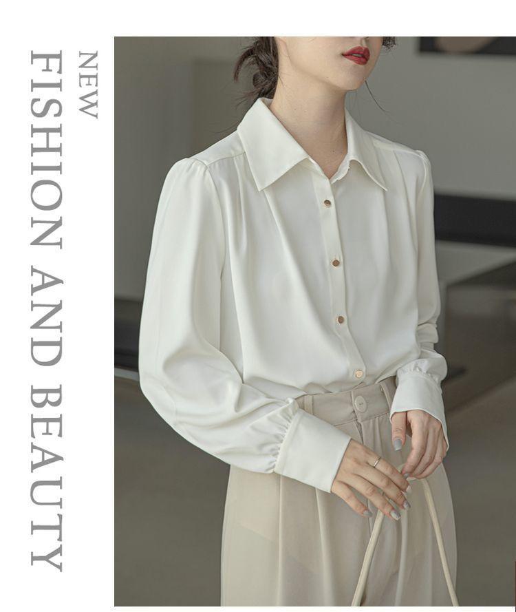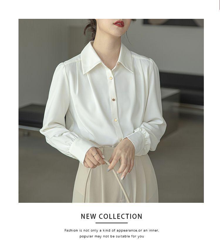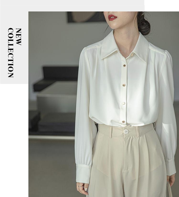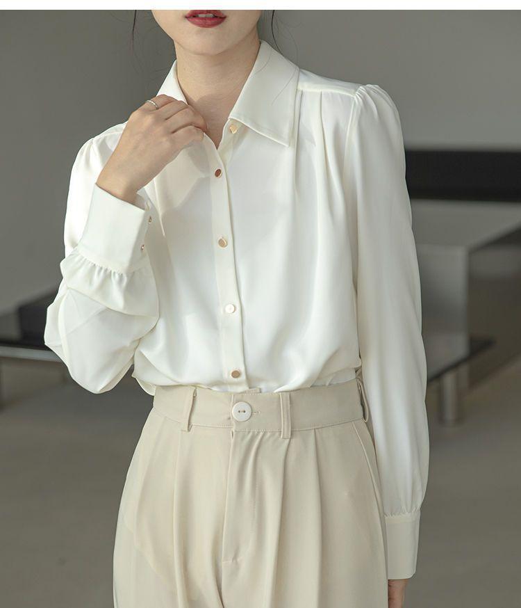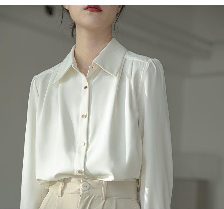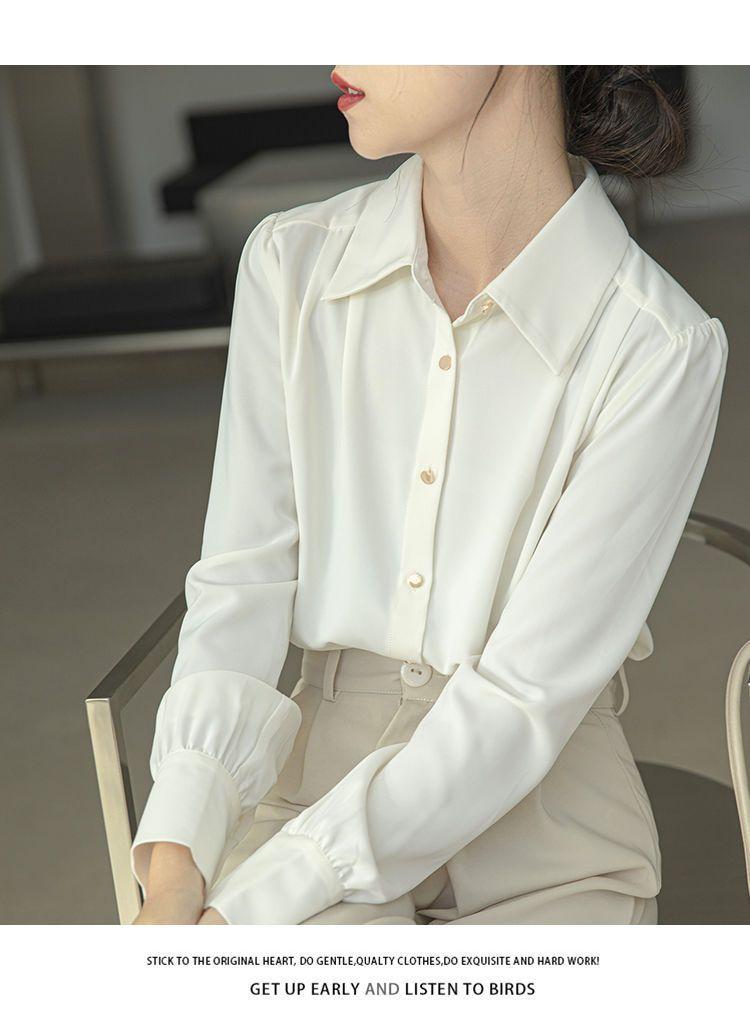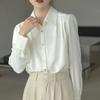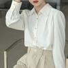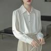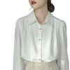 Camisa Blanca de Hombro Recto para Primavera y Otoño 2025 para Mujer Estilo Coreano para Ir al Trabajo Solapa Manga Larga Camisa Holgada Adelgazante Ropa Interior Top Mujer