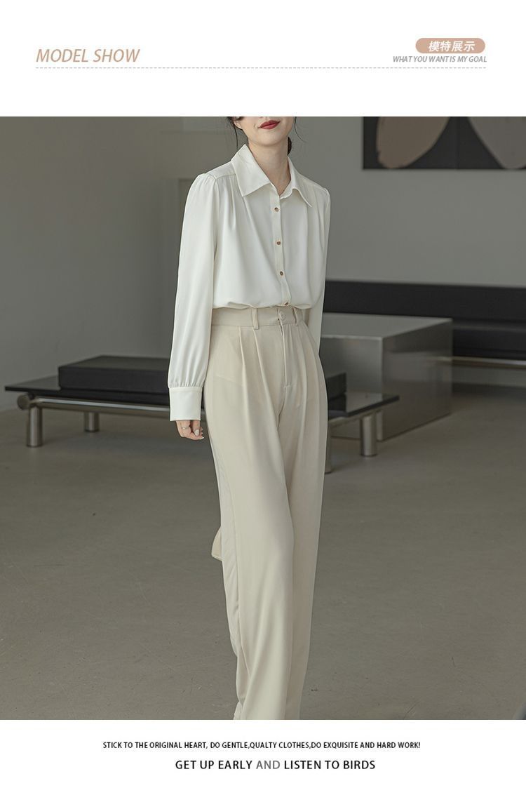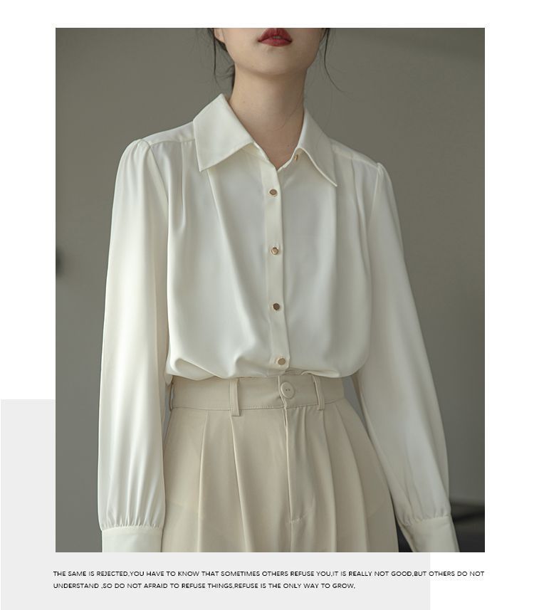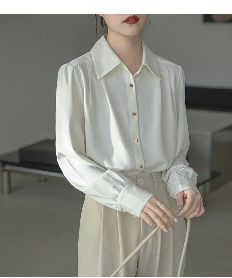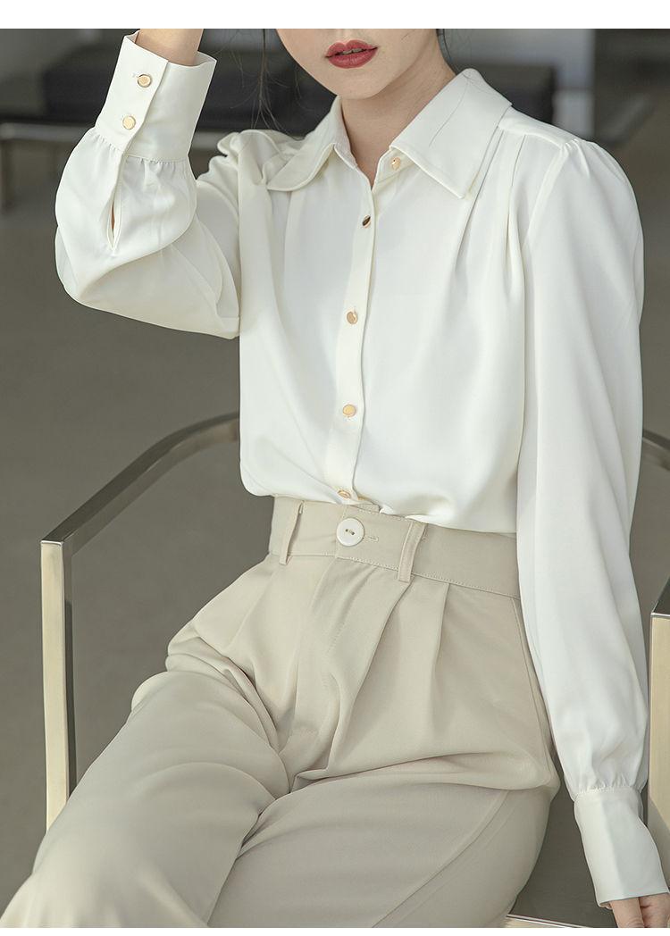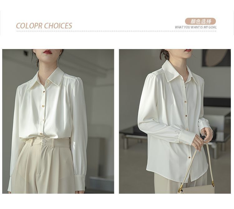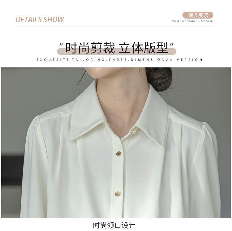 Camisa Blanca de Hombro Recto para Primavera y Otoño 2025 para Mujer Estilo Coreano para Ir al Trabajo Solapa Manga Larga Camisa Holgada Adelgazante Ropa Interior Top Mujer