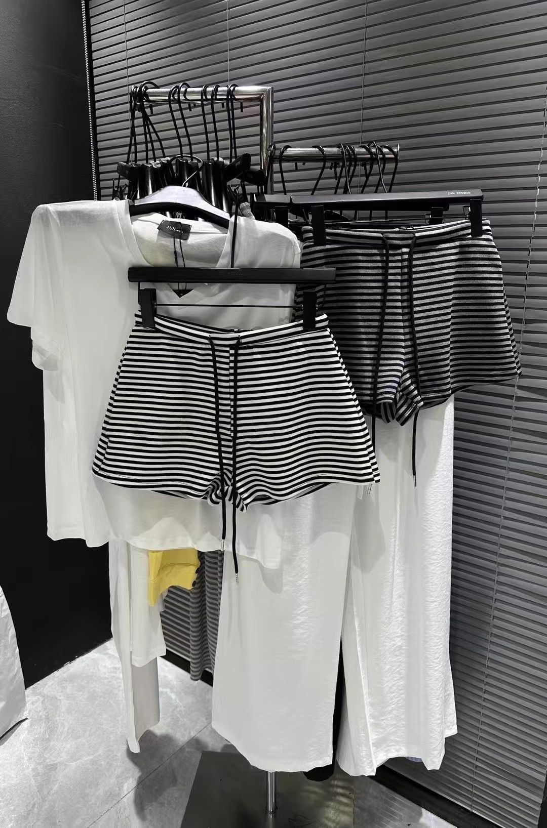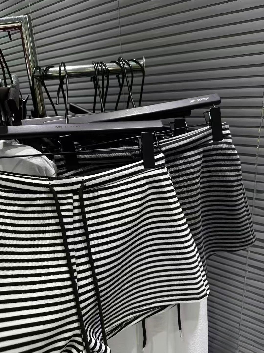 Shorts Deportivos Casuales Color Block a Rayas Mujer Verano 2025 Delgados Cordón Cintura Alta Adelgazantes Pierna Ancha Hot Pants Shorts