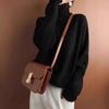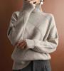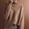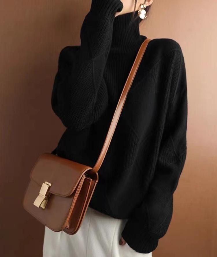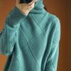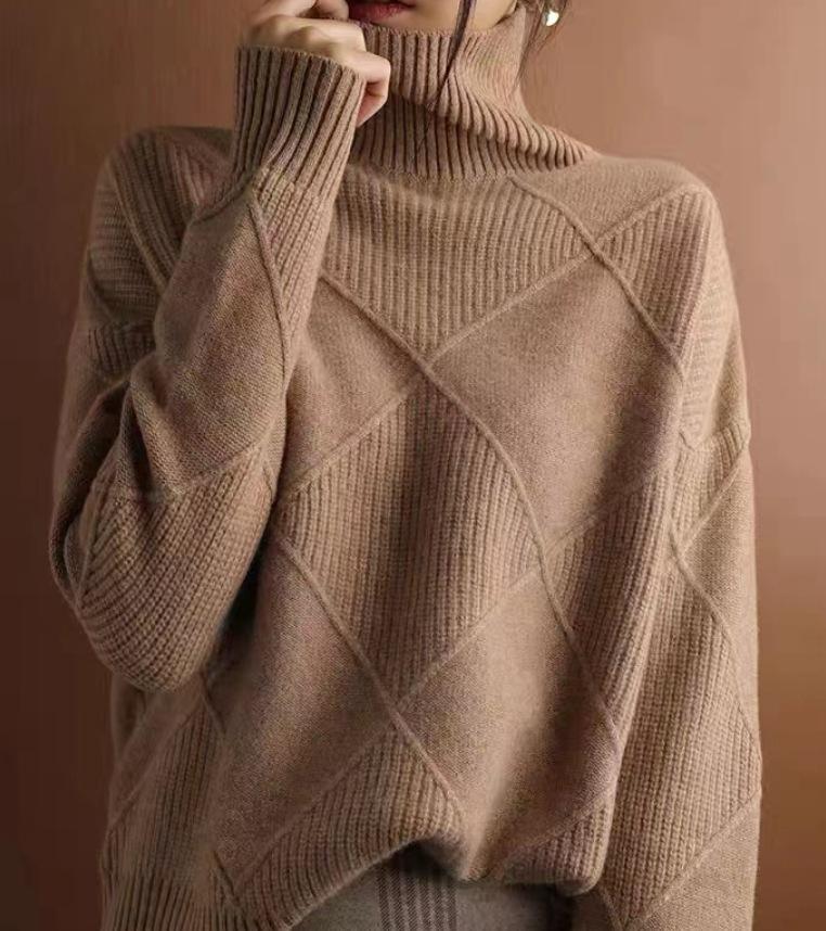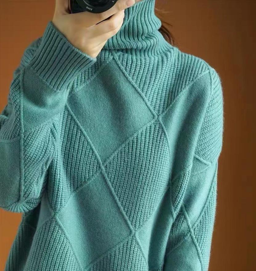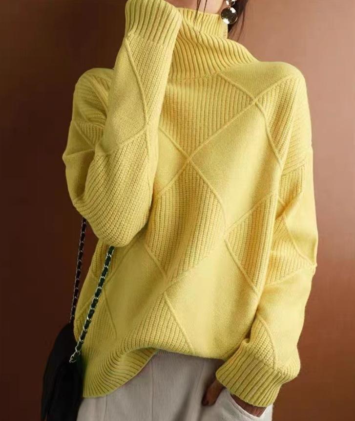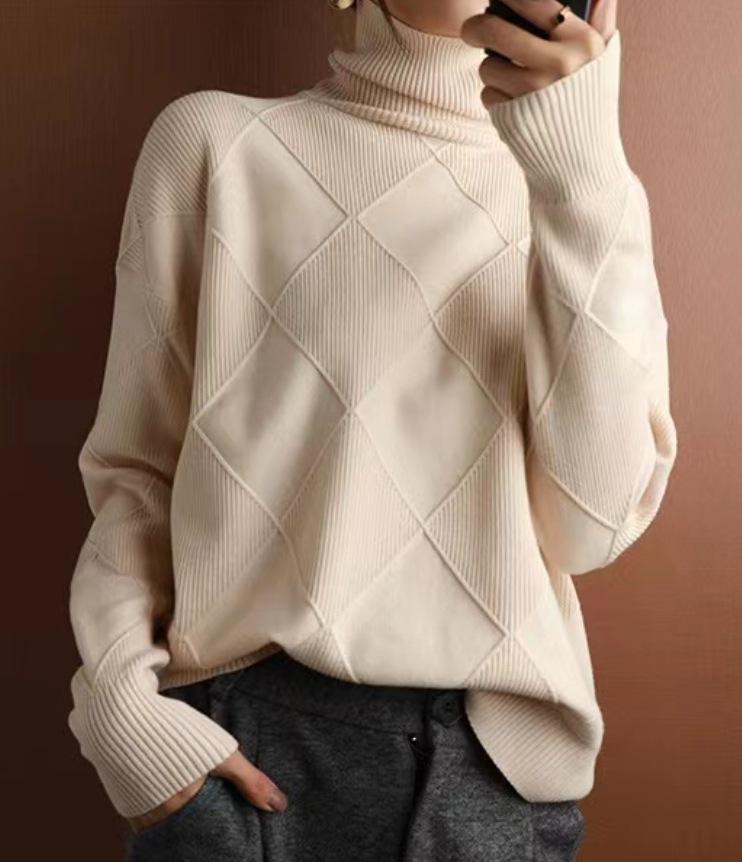 Suéter estilo otoño e invierno para mujer, cuello alto, jersey, rombos, versátil, color sólido, holgado, perezoso, camisa básica, jersey, tejido de punto grueso