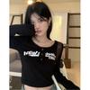 2025 Nuevo Top con Sentido del Diseño para Mujer Estilo Europeo y Americano Prendas de Punto para Exterior Camiseta Básica Y2K Chica Hot Elástica Hombro Recto