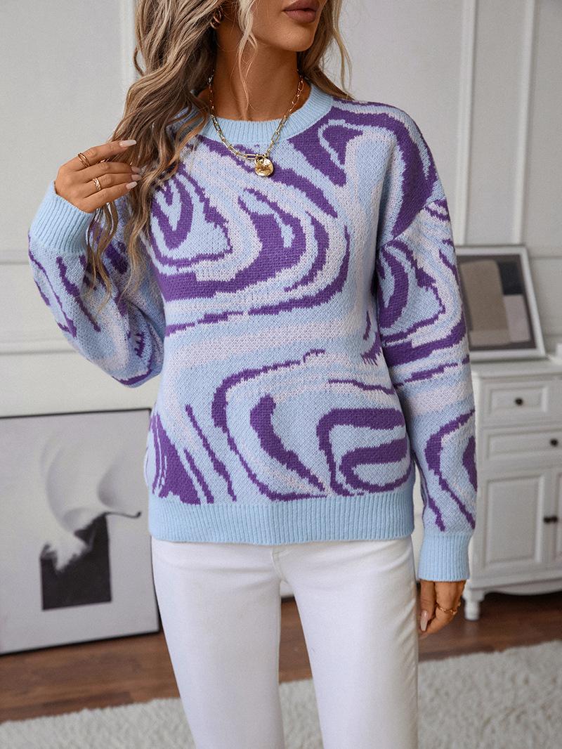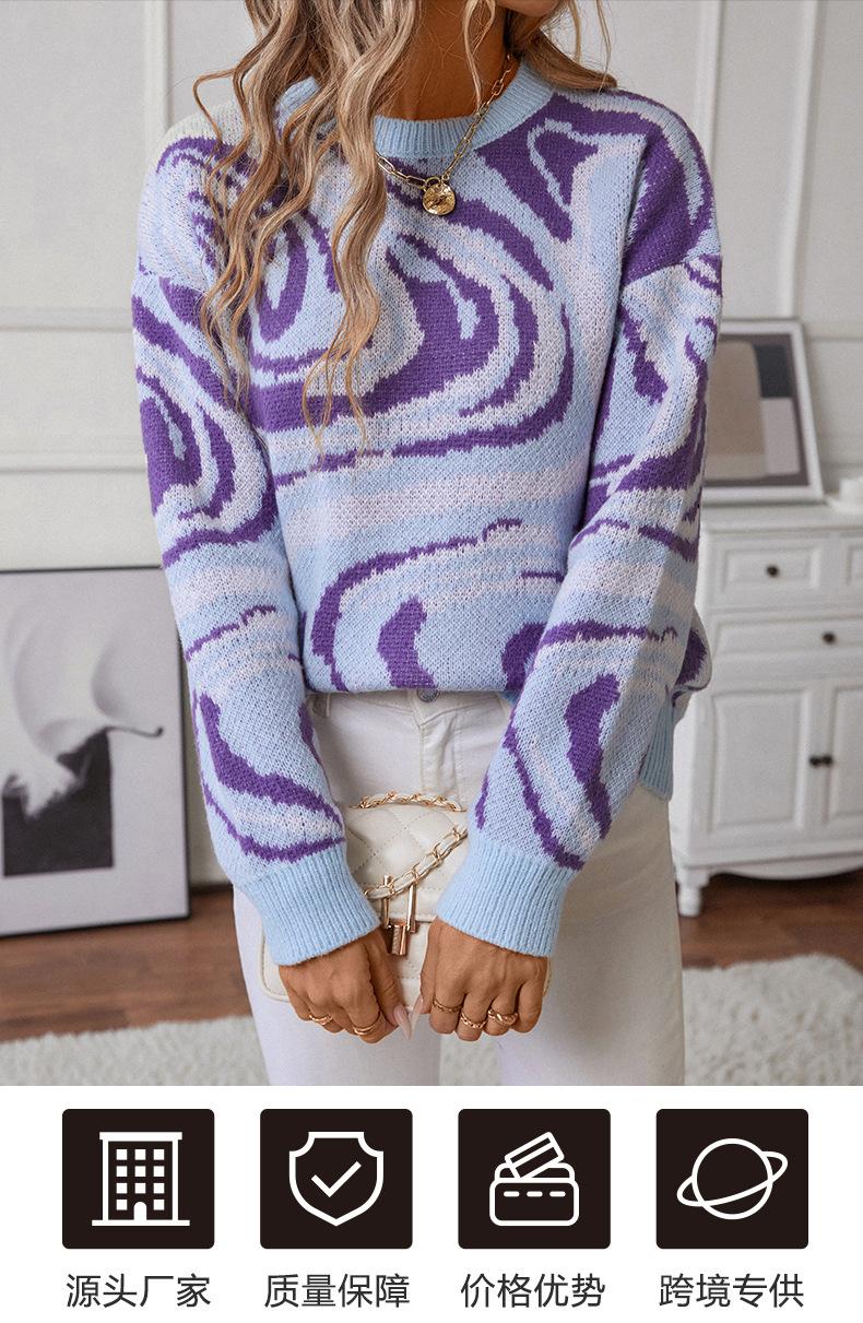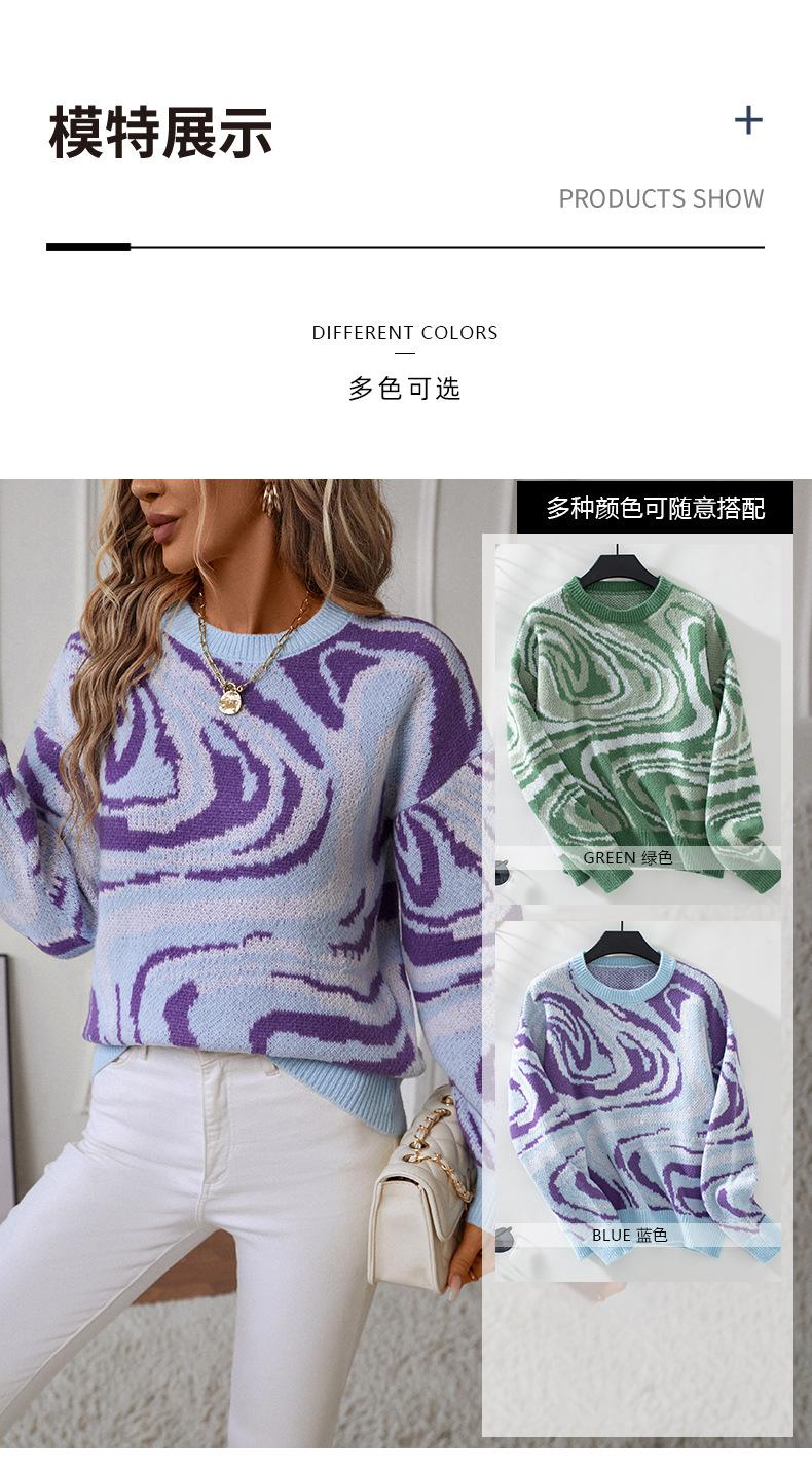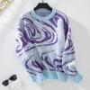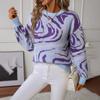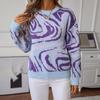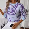 Exportación Transfronteriza Otoño e Invierno 2025 Nuevos Tejidos de Punto de Punto Europeos y Americanos para Mujer Cuello Redondo Suelto Patrón Colorido Jersey de Punto para Mujer