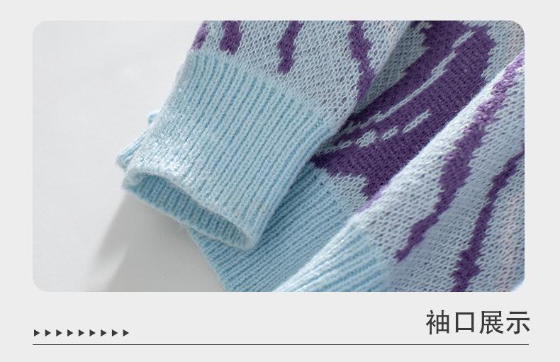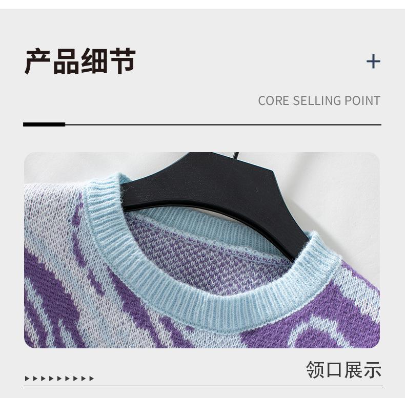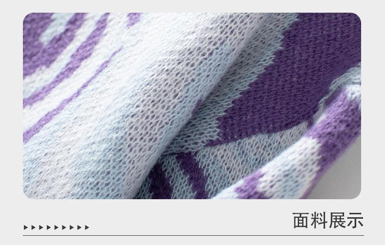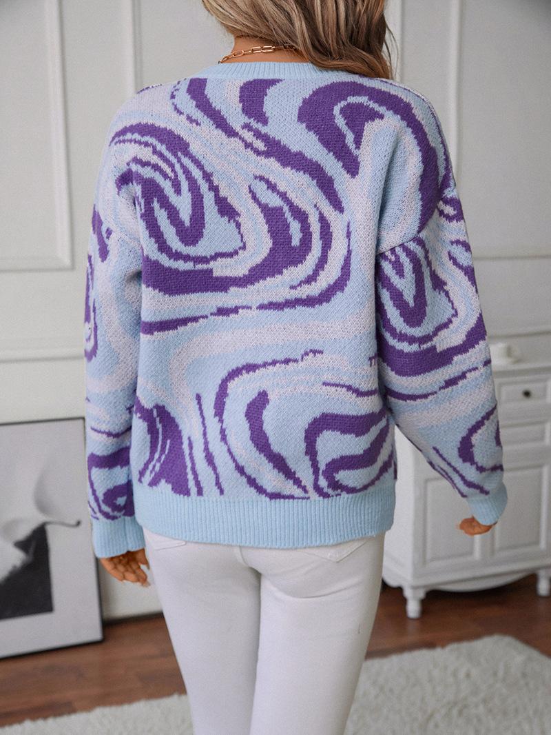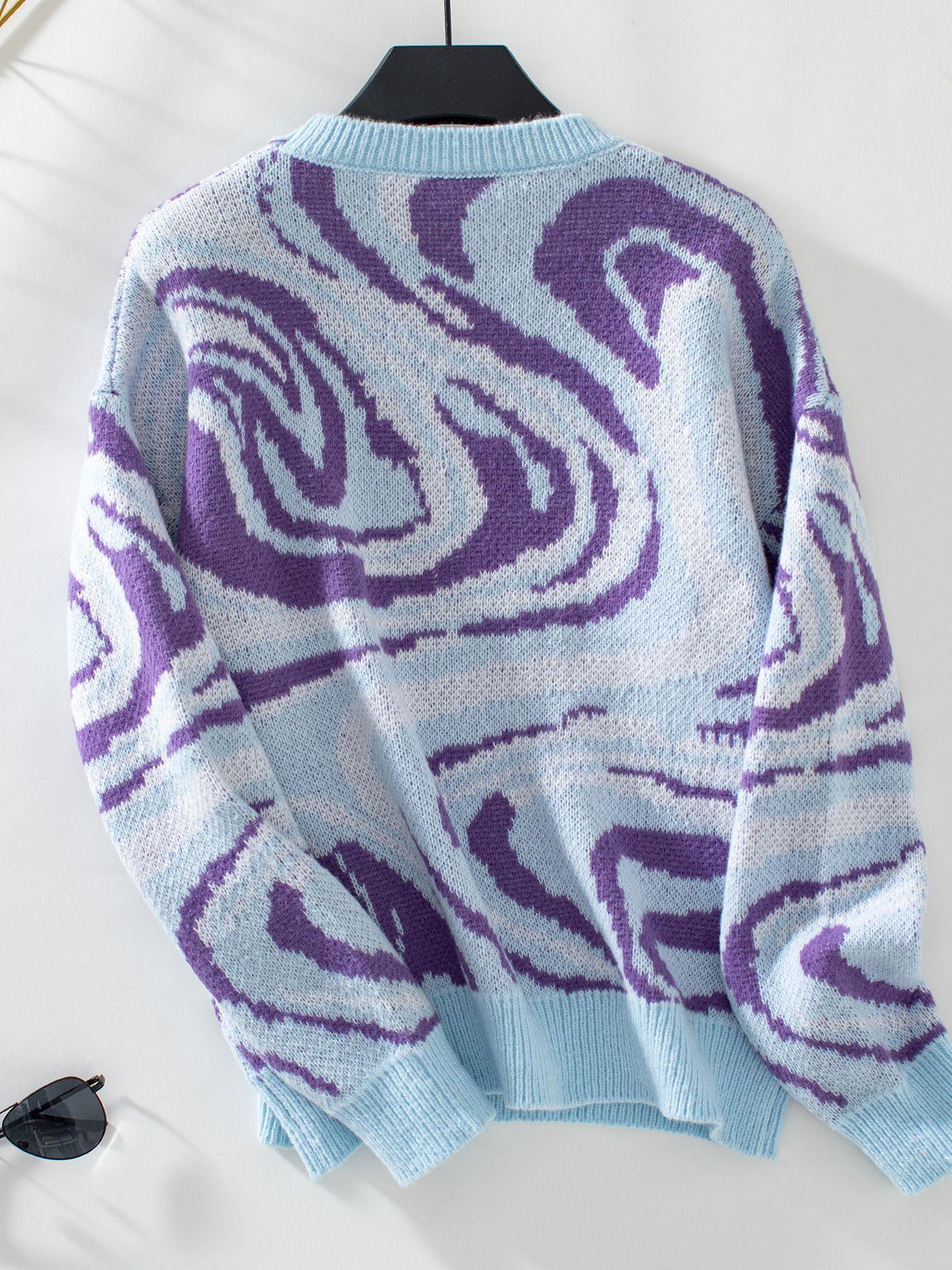Exportación Transfronteriza Otoño e Invierno 2025 Nuevos Tejidos de Punto de Punto Europeos y Americanos para Mujer Cuello Redondo Suelto Patrón Colorido Jersey de Punto para Mujer