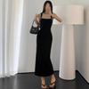 Vestido sexy de alta gama para mujer verano sin mangas cuello en V escote bajo temperamento plisado ceñido al cuerpo abertura vestido largo