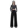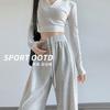 Pantalones deportivos americanos grises para mujer 2025 Nuevo Primavera y Otoño Rectos Sueltos Pantalones de chándal Acanalados Casual Petite Pierna ancha