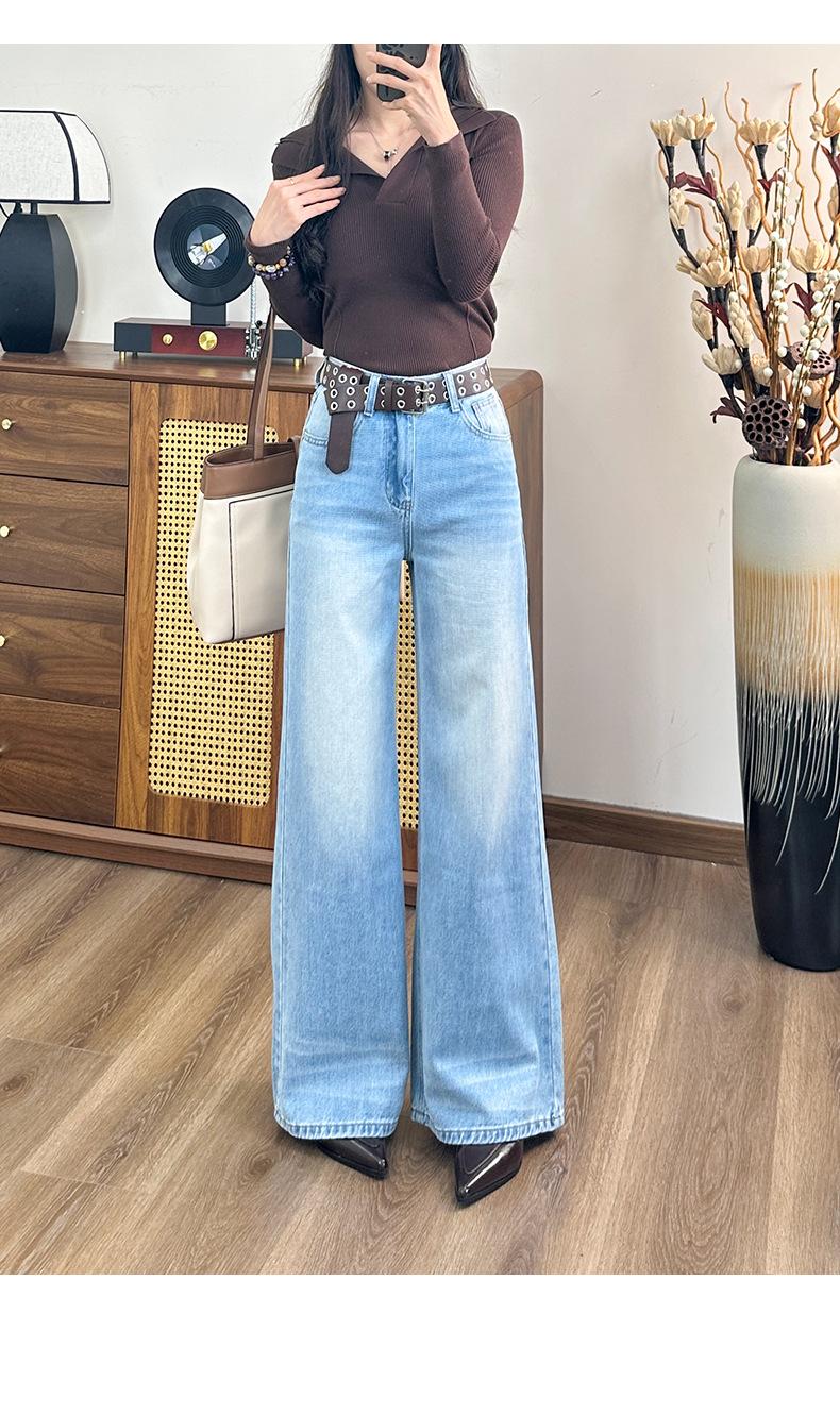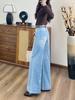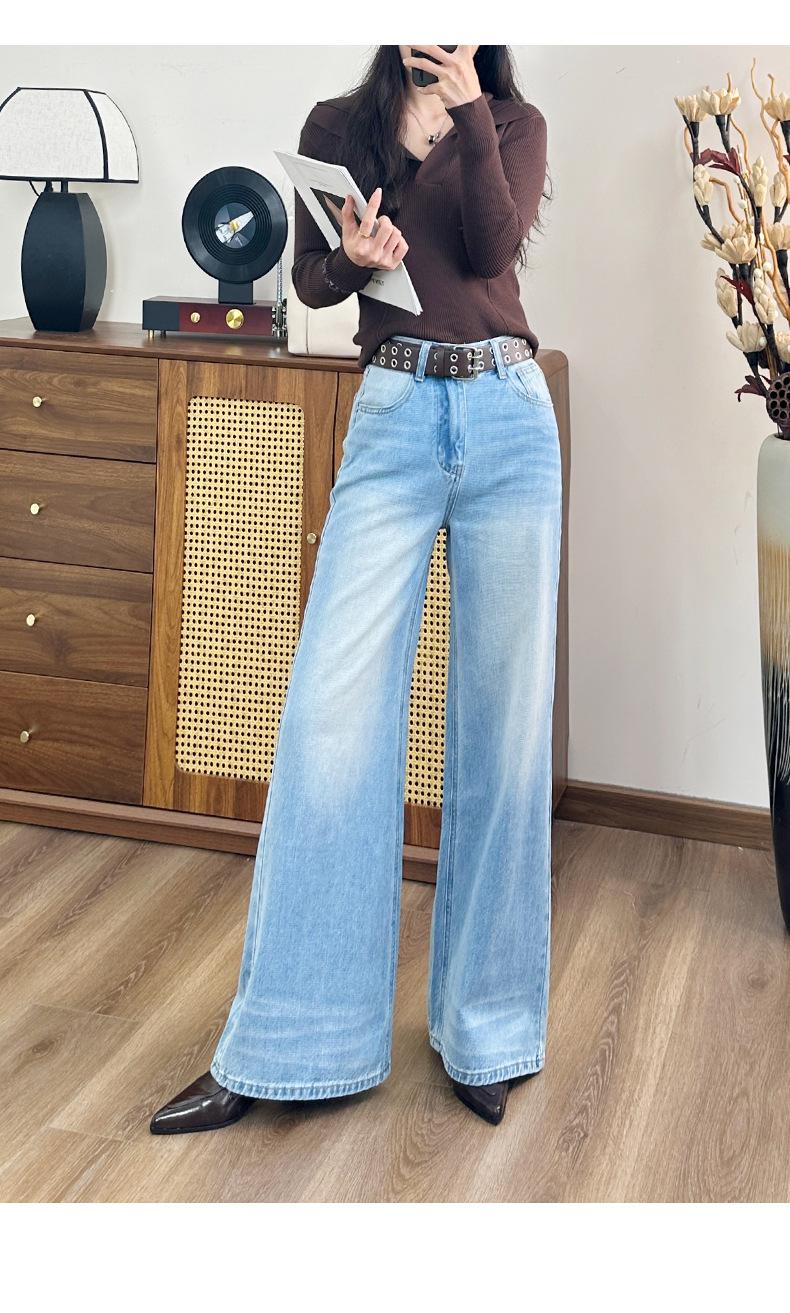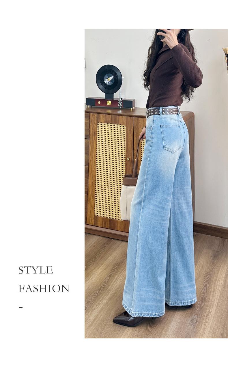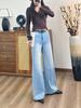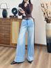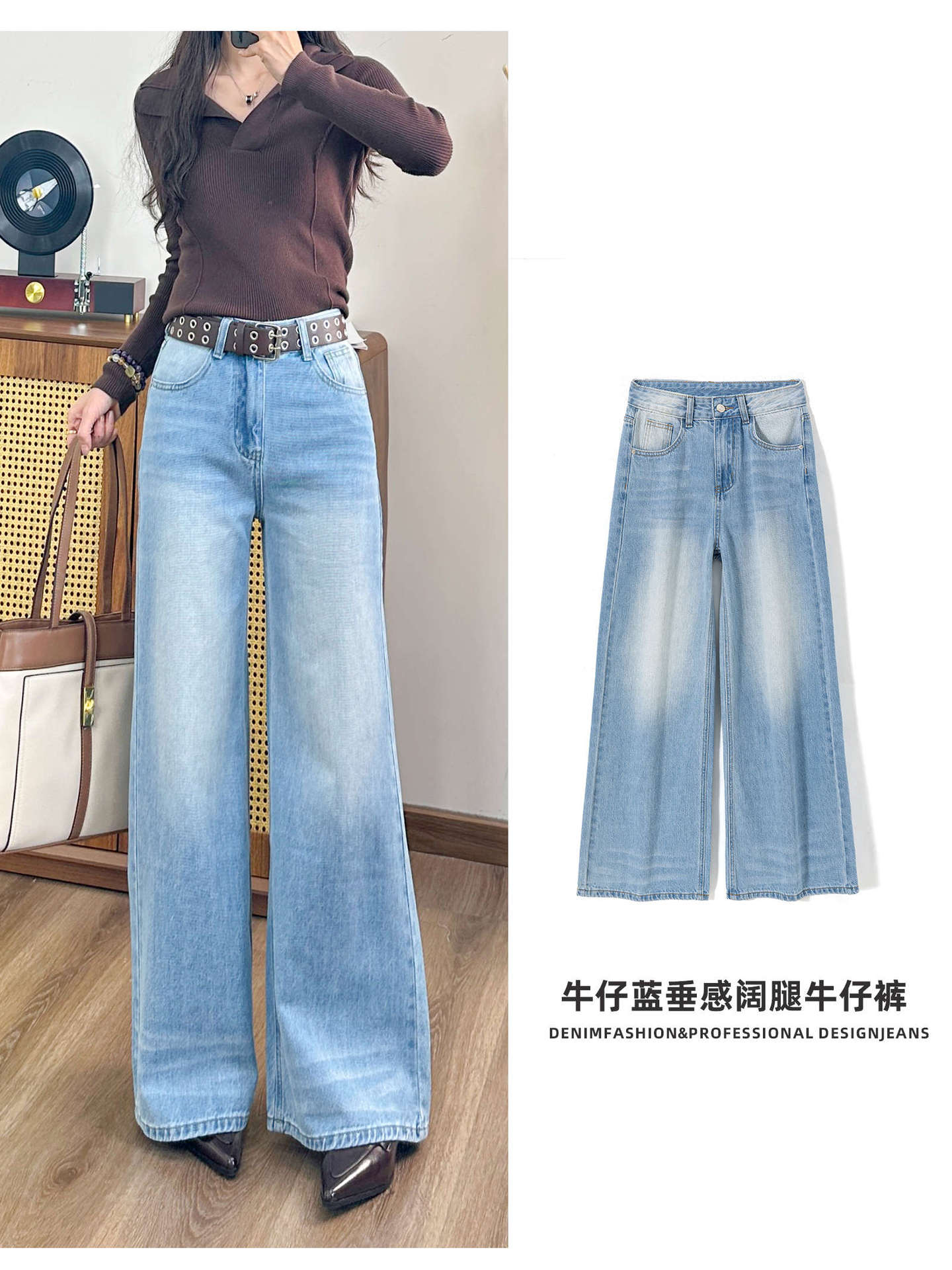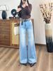 Jiawei 2025 Jeans de Otoño Temprano para Mujer Azul Claro Cintura Alta Pierna Ancha Jeans de Mezclilla Sin Elasticidad Jeans de Mezclilla Adelgazantes Casual