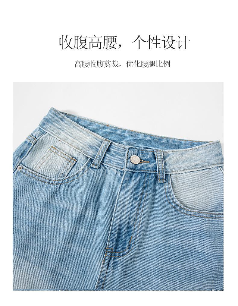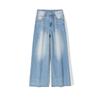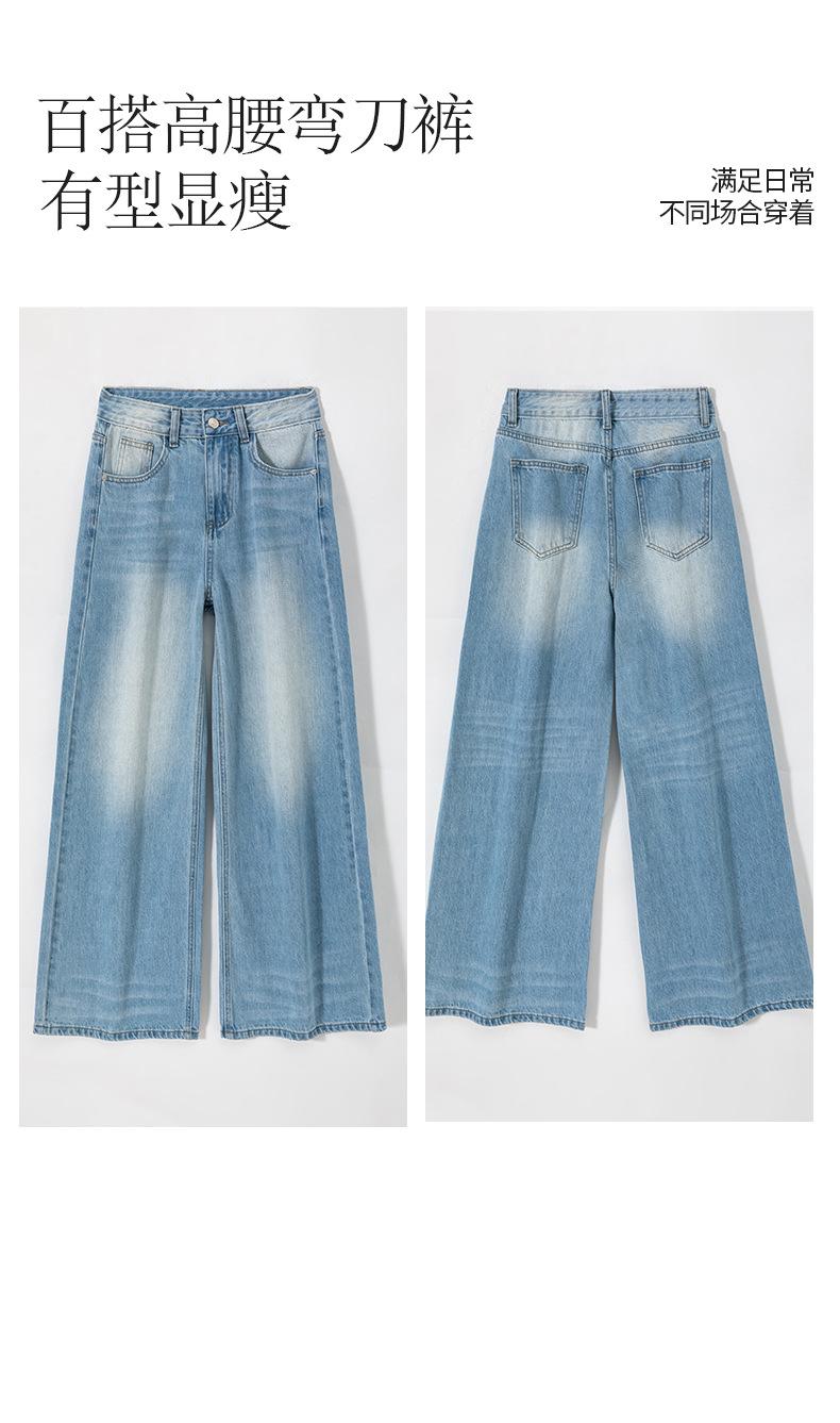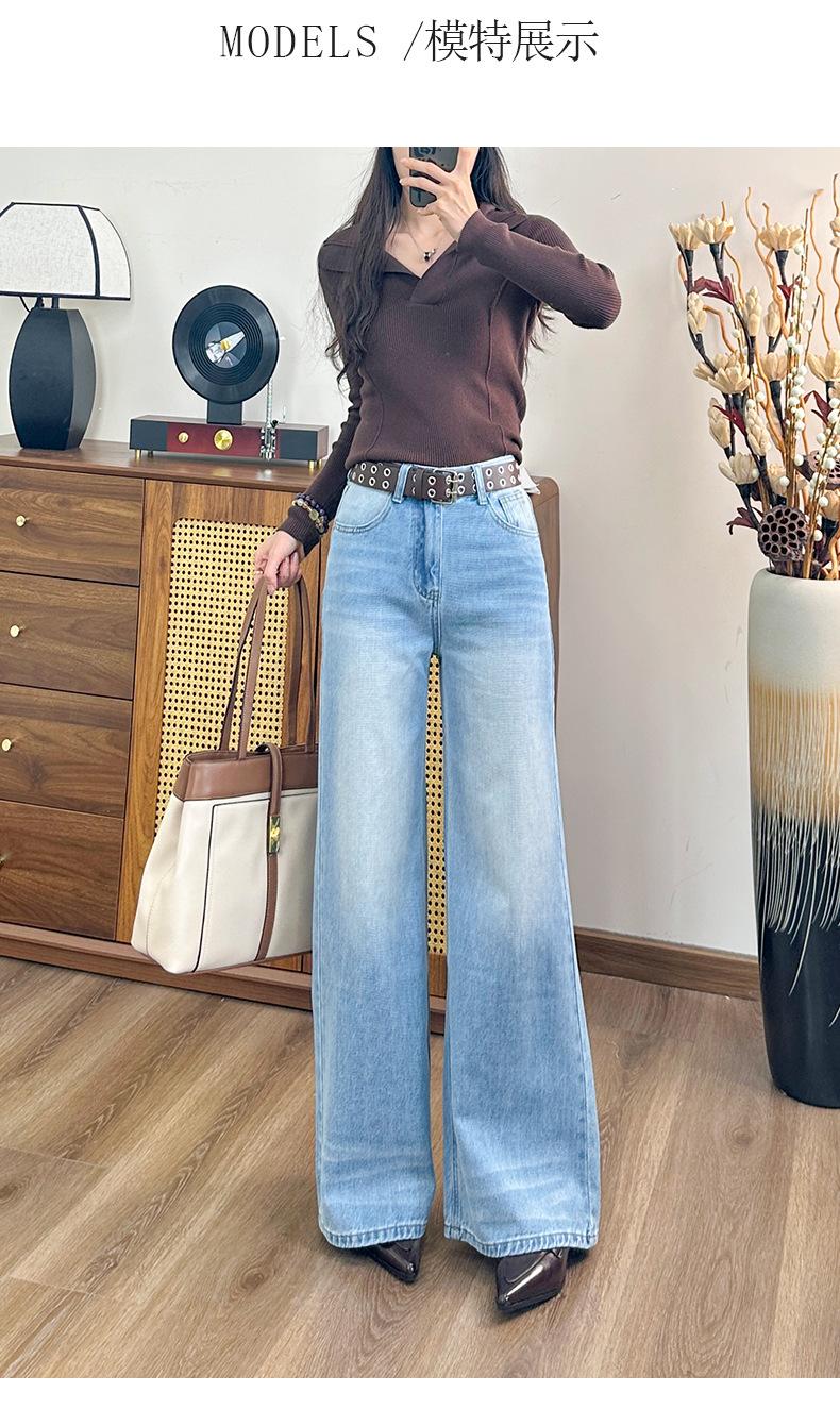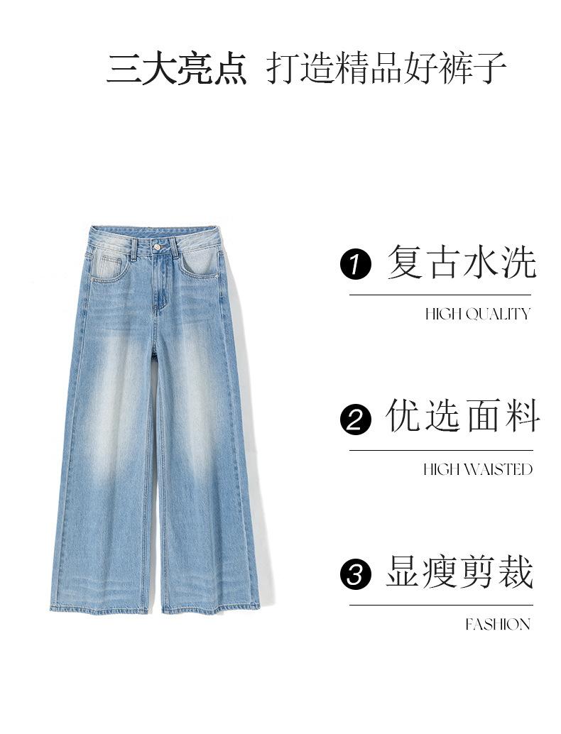 Jiawei 2025 Jeans de Otoño Temprano para Mujer Azul Claro Cintura Alta Pierna Ancha Jeans de Mezclilla Sin Elasticidad Jeans de Mezclilla Adelgazantes Casual