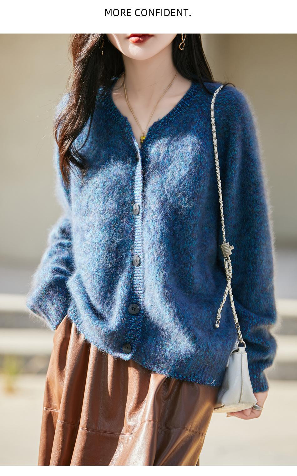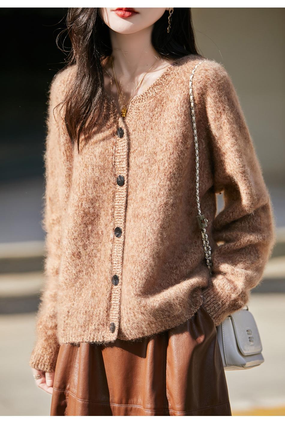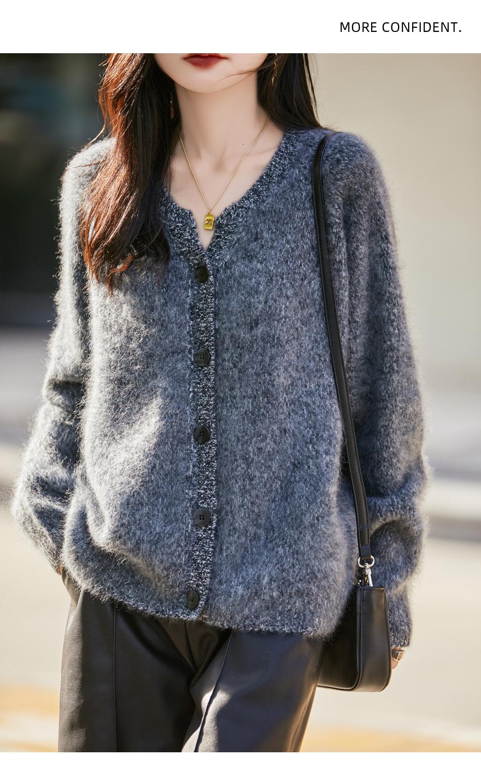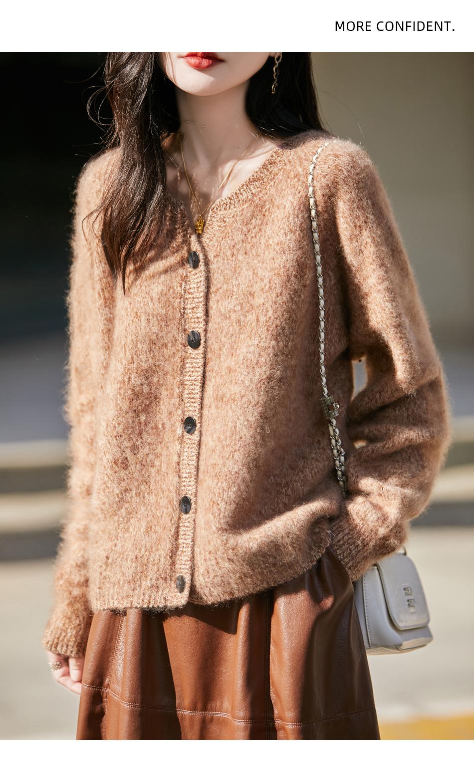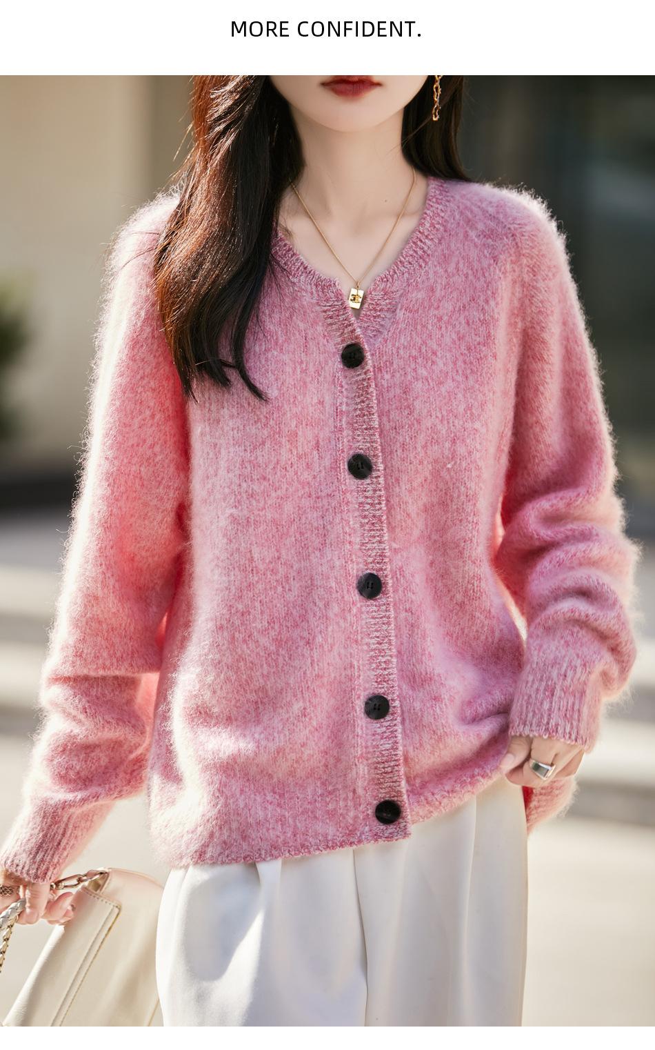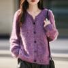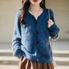 Cárdigan de Punto para Mujer con Cuello en V Mezcla de Lana Cachemira Cepillado Estilo Holgado Lazy Abrigo Jaspeado Suéter Cómodo y Cálido