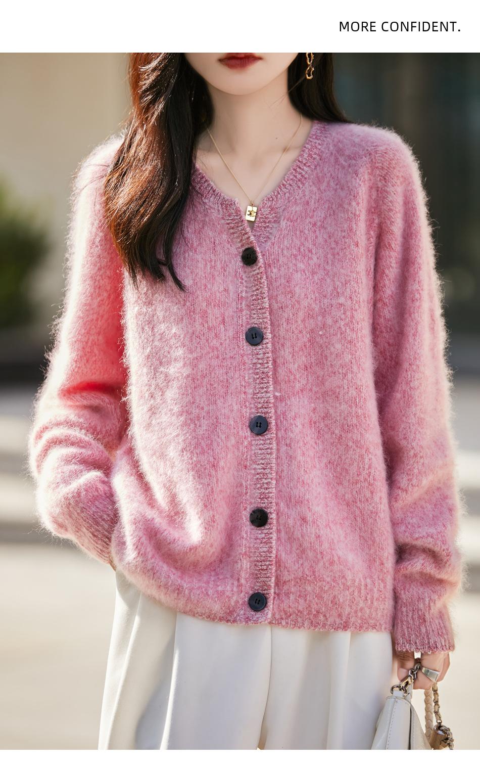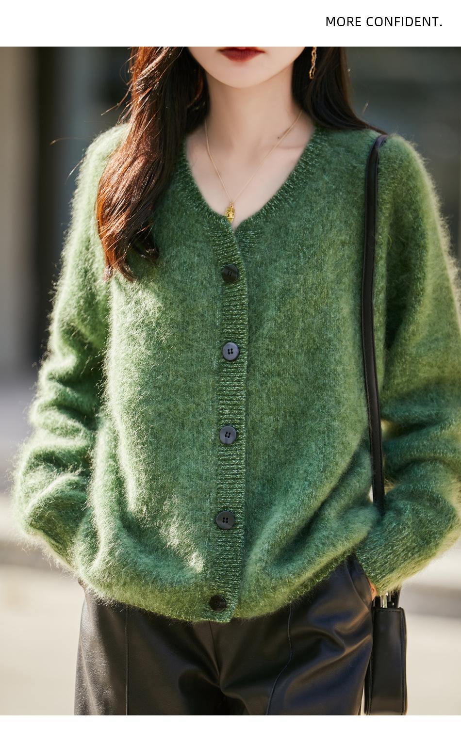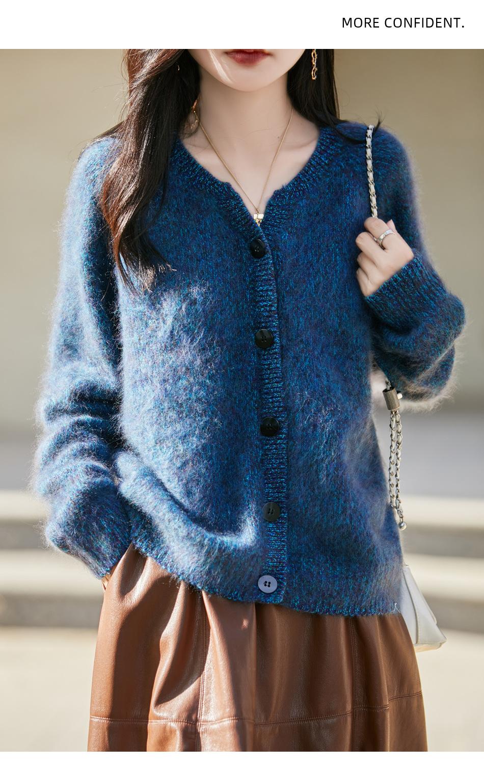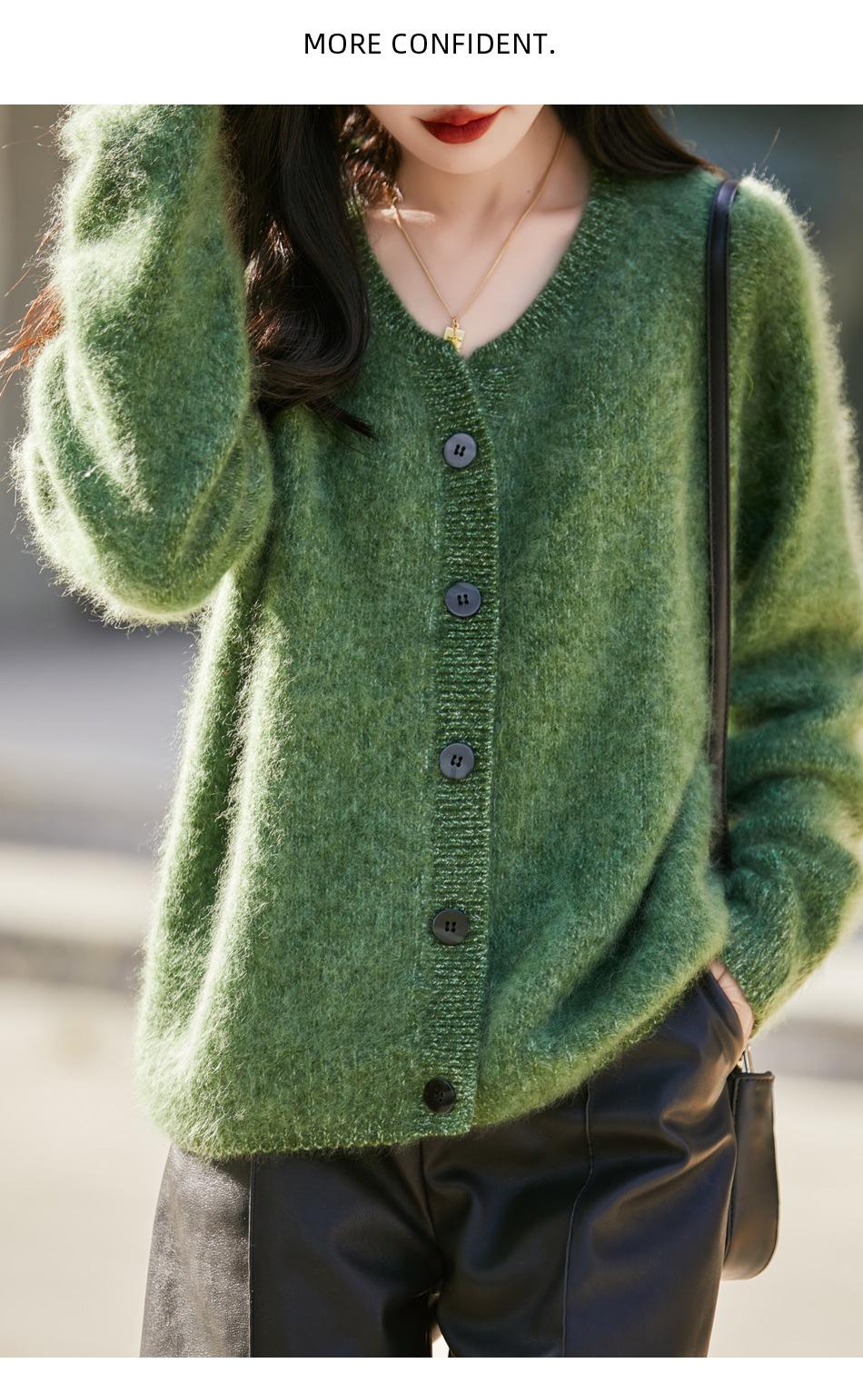 Cárdigan de Punto para Mujer con Cuello en V Mezcla de Lana Cachemira Cepillado Estilo Holgado Lazy Abrigo Jaspeado Suéter Cómodo y Cálido