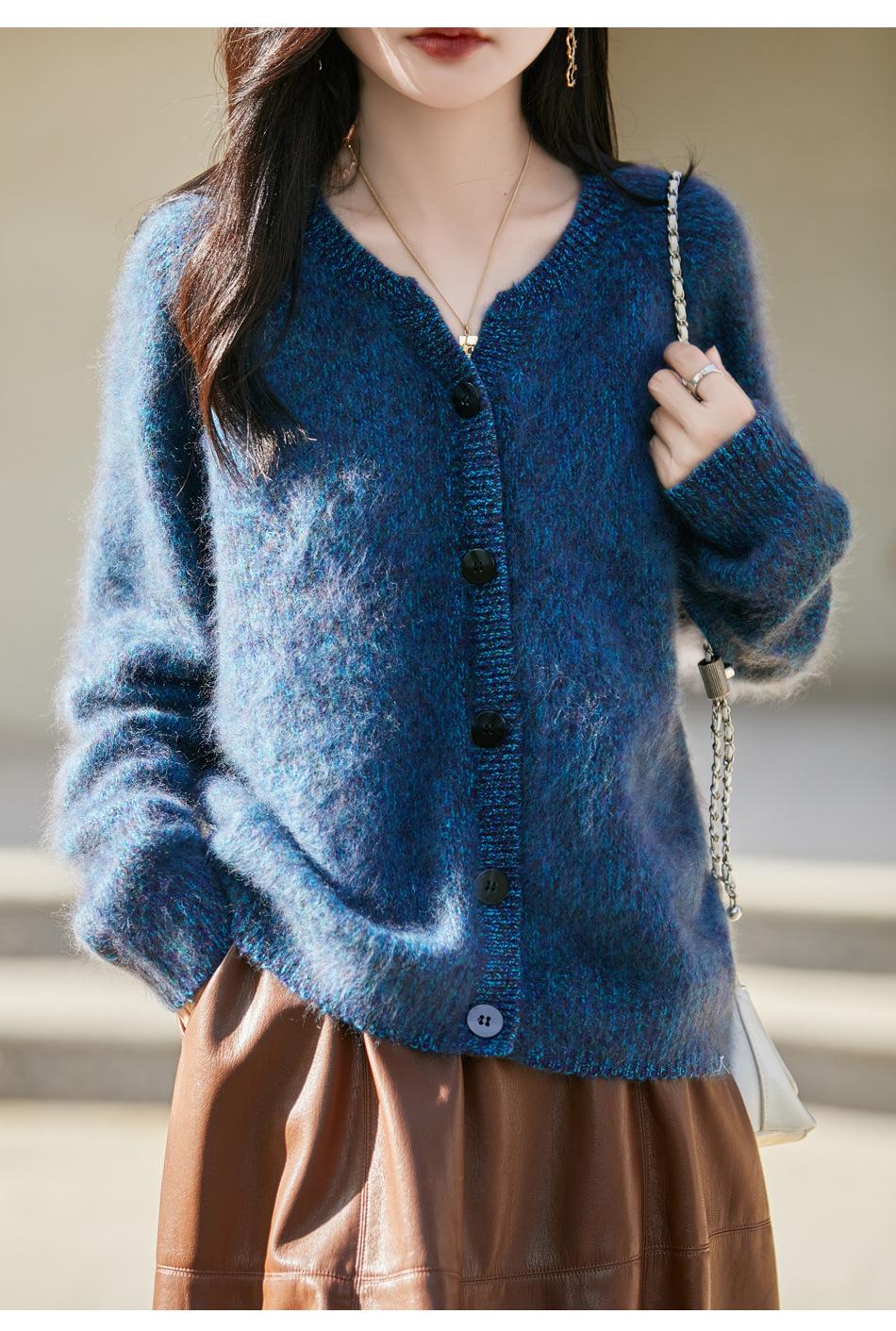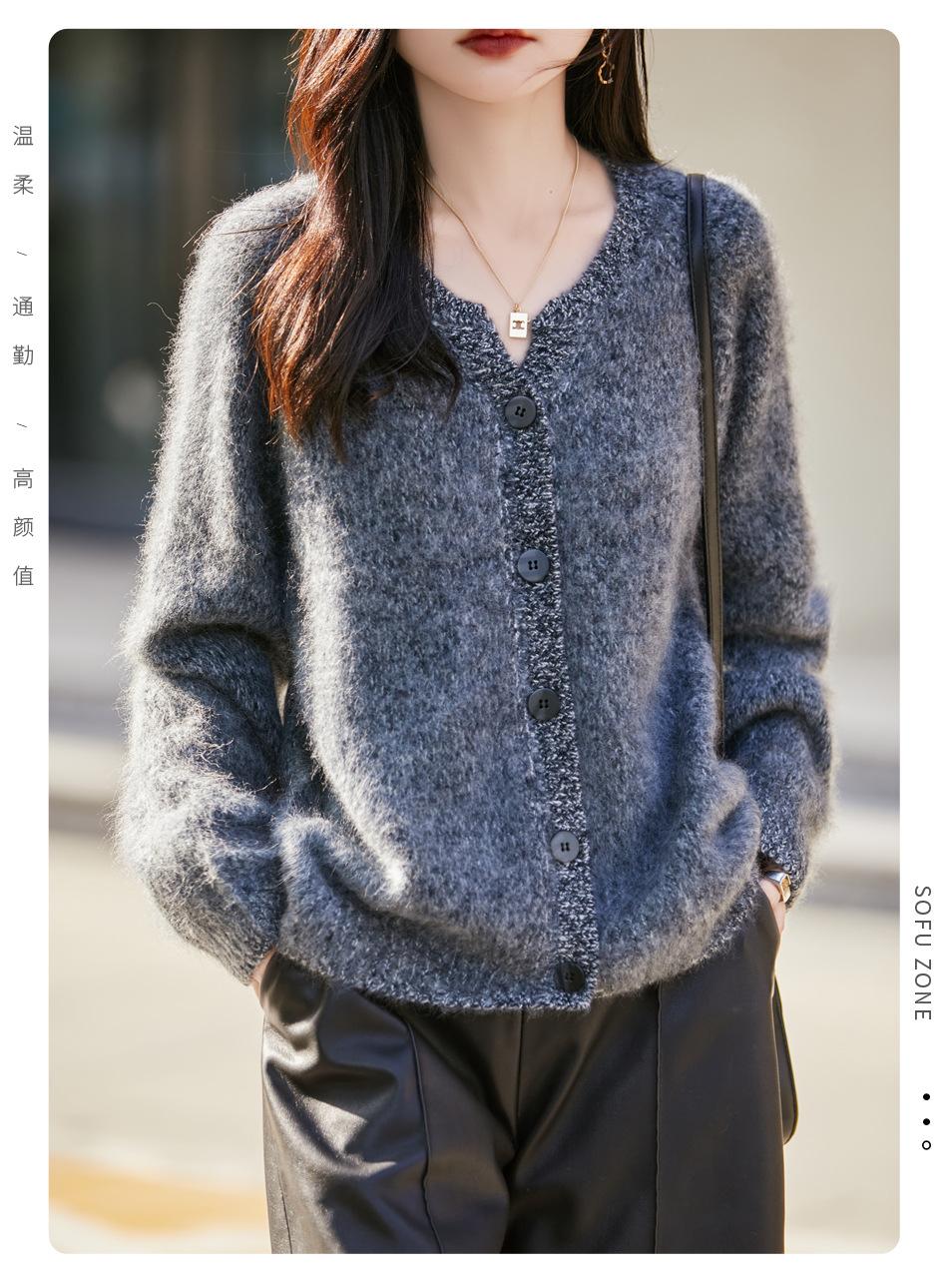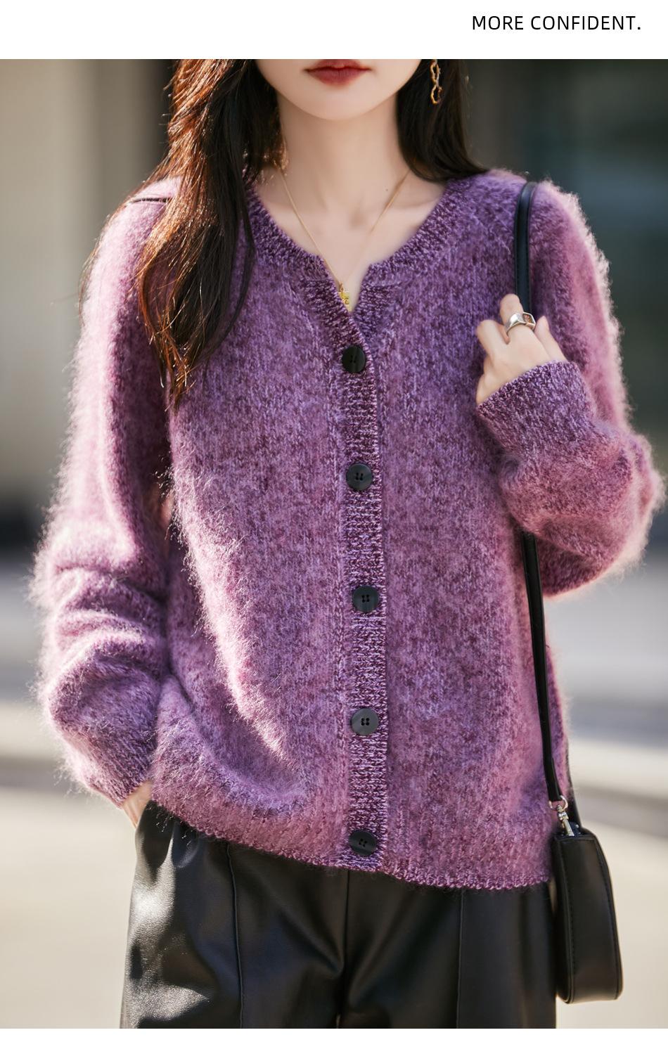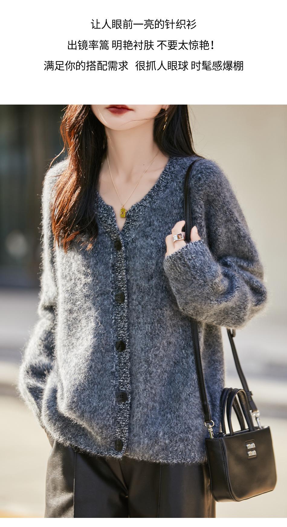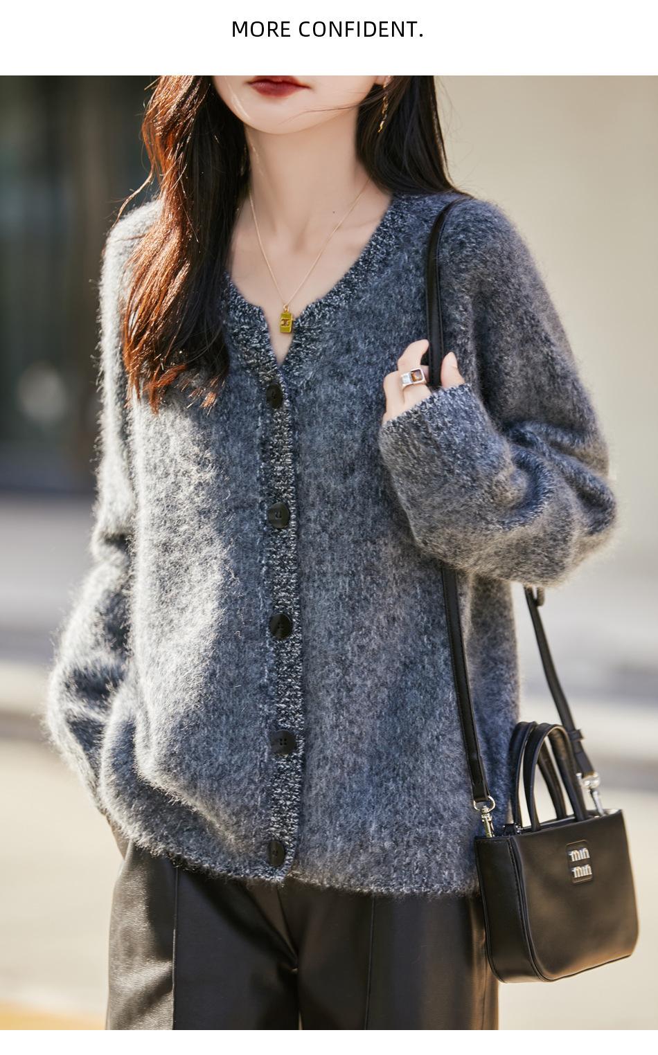 Cárdigan de Punto para Mujer con Cuello en V Mezcla de Lana Cachemira Cepillado Estilo Holgado Lazy Abrigo Jaspeado Suéter Cómodo y Cálido