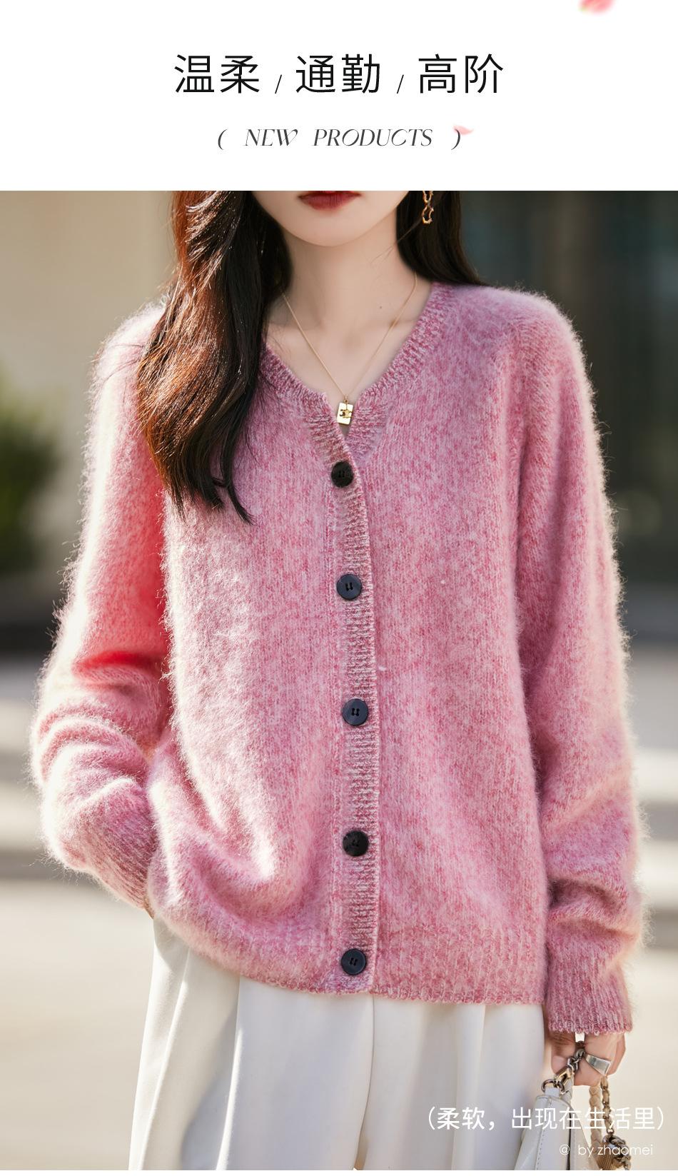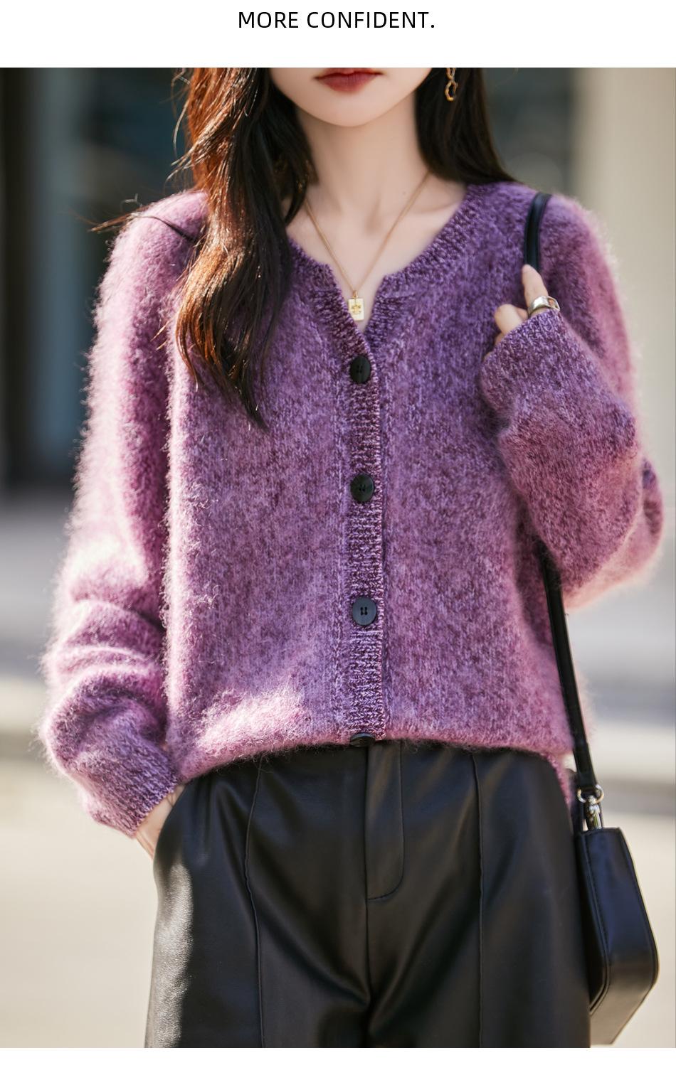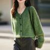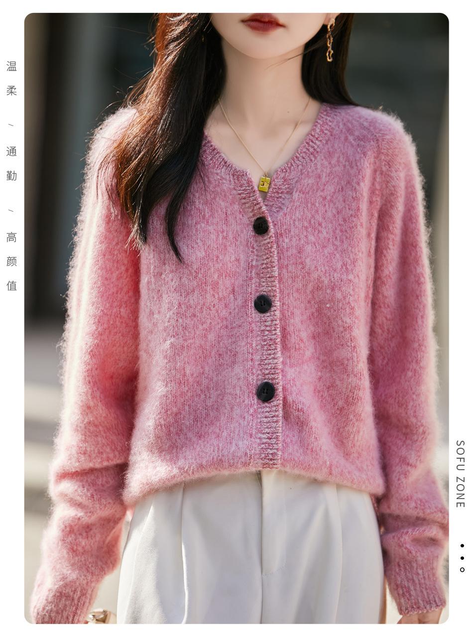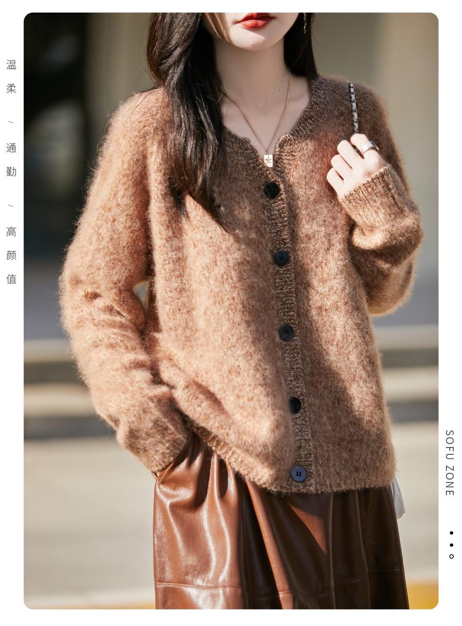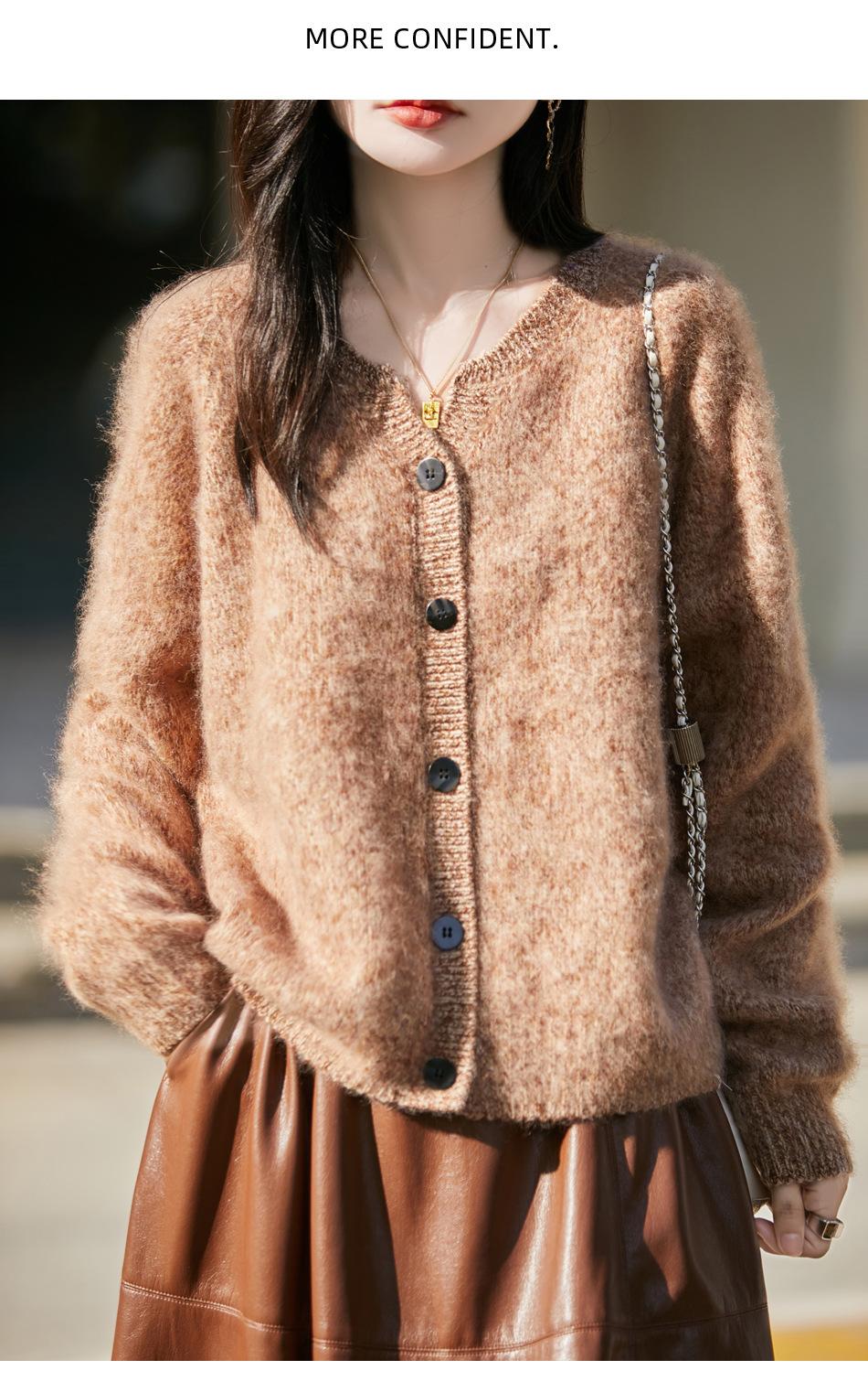 Cárdigan de Punto para Mujer con Cuello en V Mezcla de Lana Cachemira Cepillado Estilo Holgado Lazy Abrigo Jaspeado Suéter Cómodo y Cálido