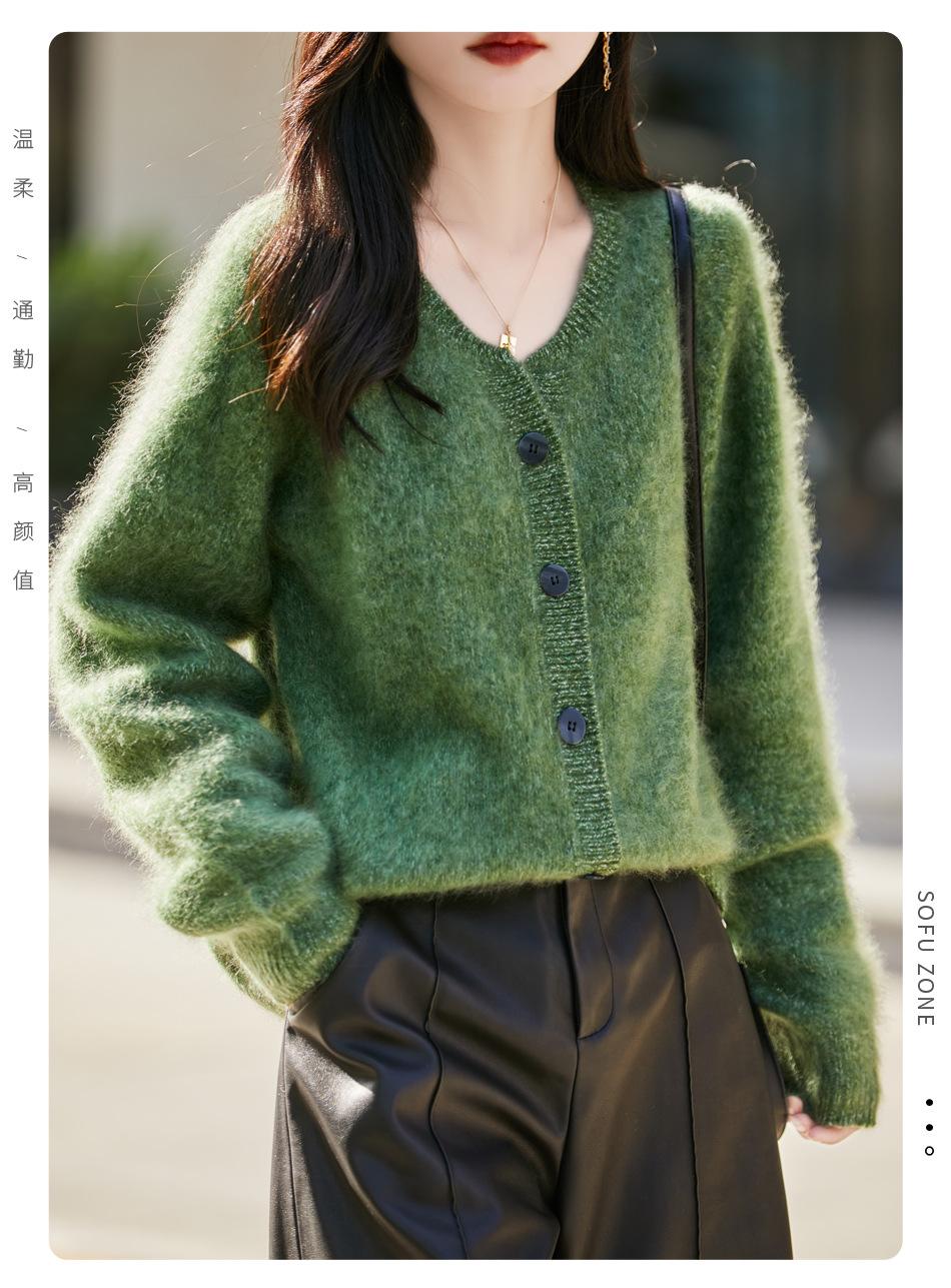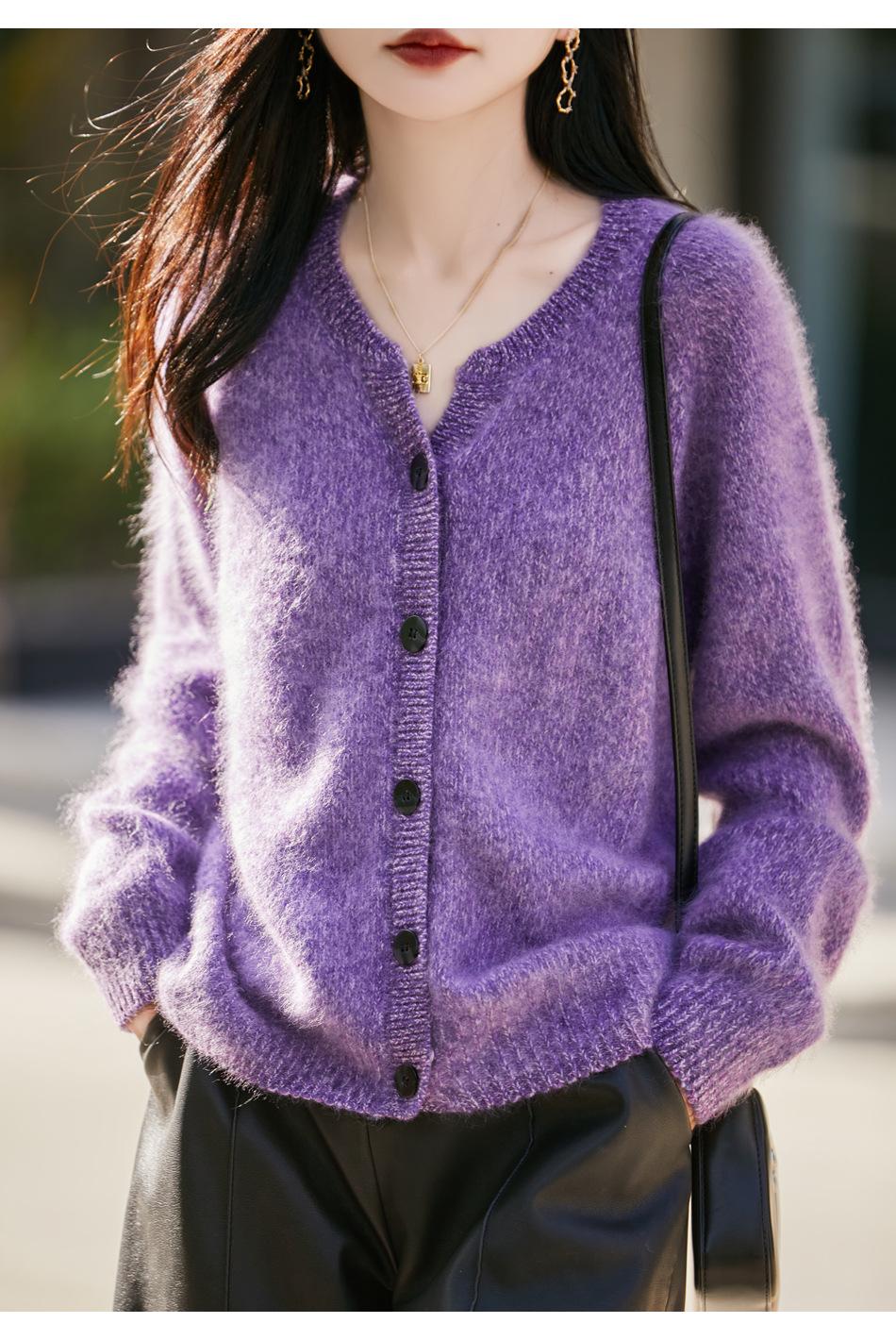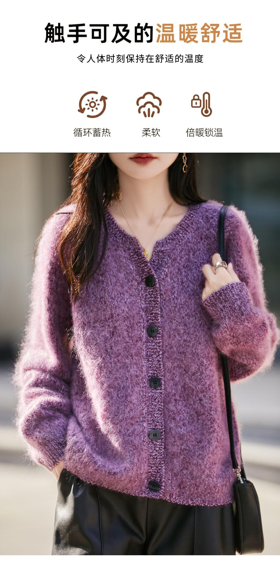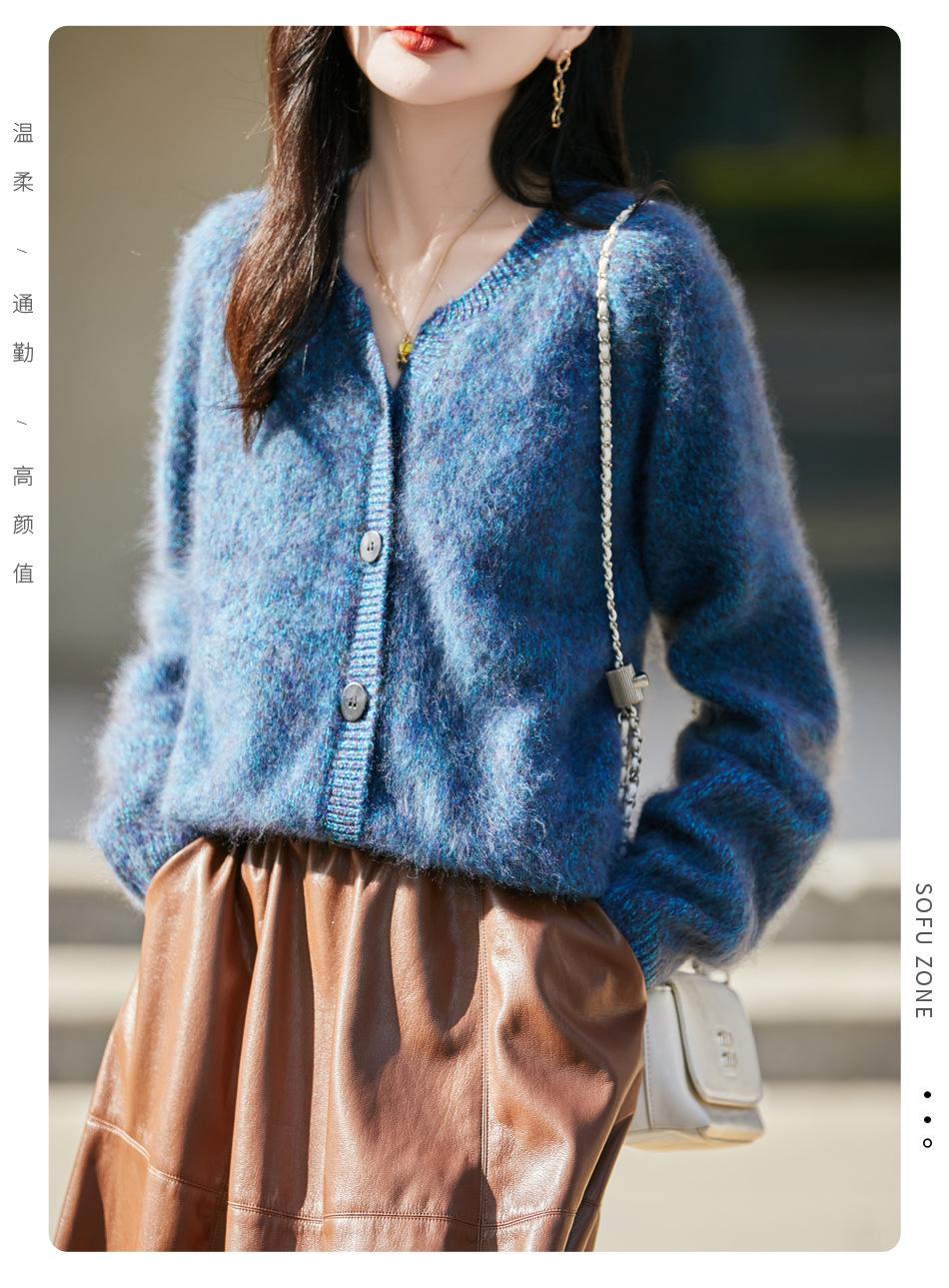 Cárdigan de Punto para Mujer con Cuello en V Mezcla de Lana Cachemira Cepillado Estilo Holgado Lazy Abrigo Jaspeado Suéter Cómodo y Cálido