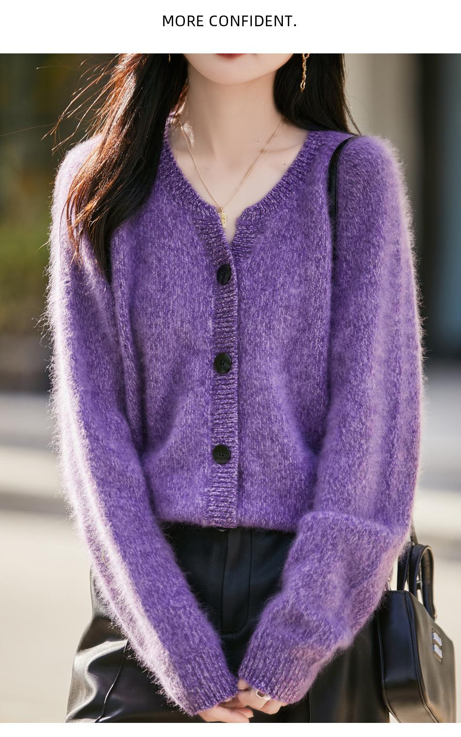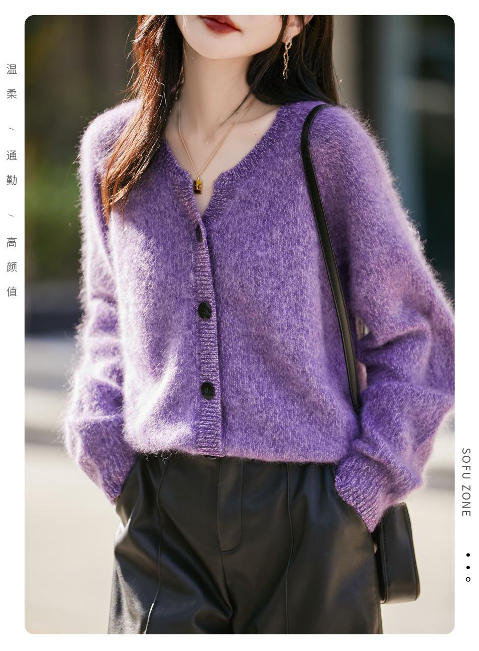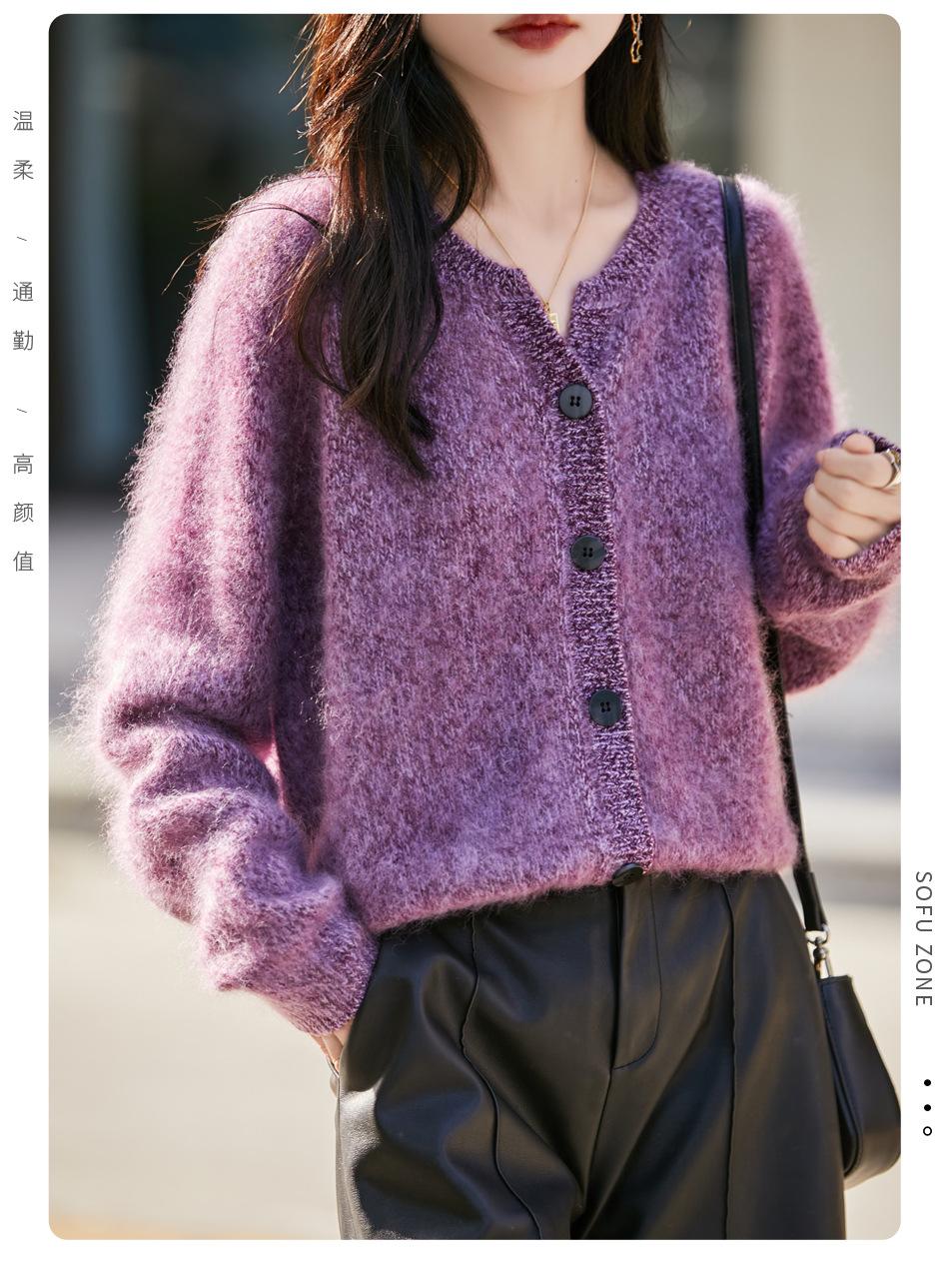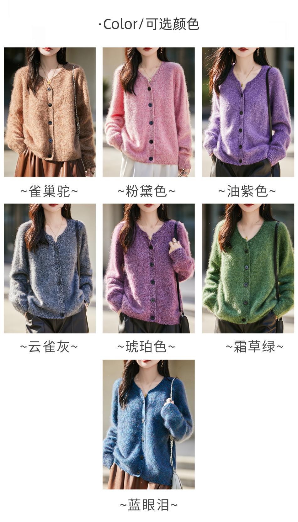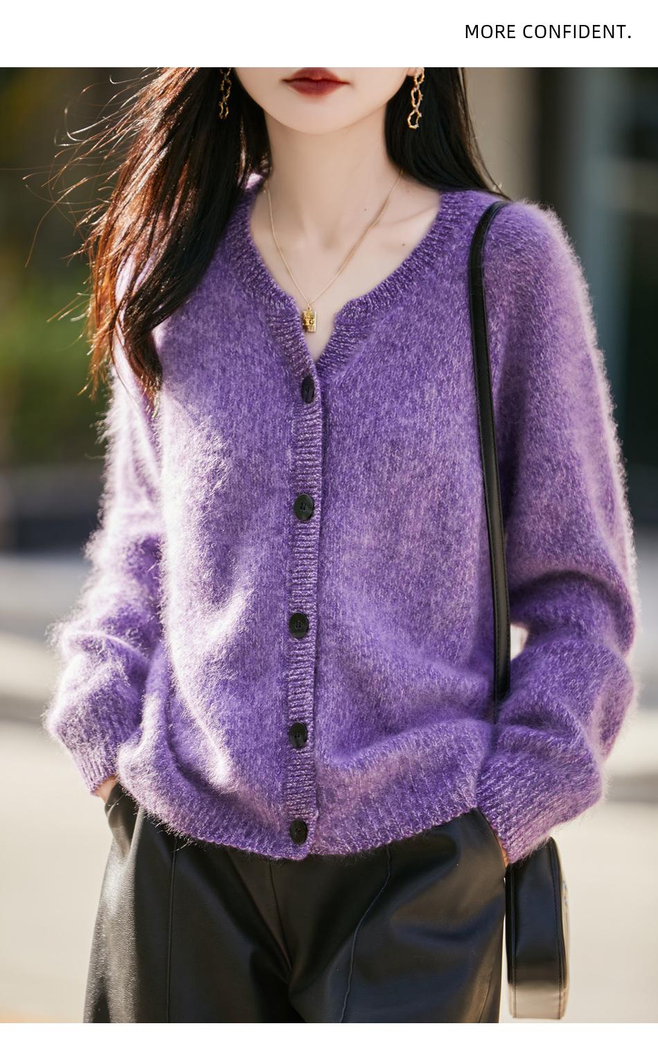 Cárdigan de Punto para Mujer con Cuello en V Mezcla de Lana Cachemira Cepillado Estilo Holgado Lazy Abrigo Jaspeado Suéter Cómodo y Cálido