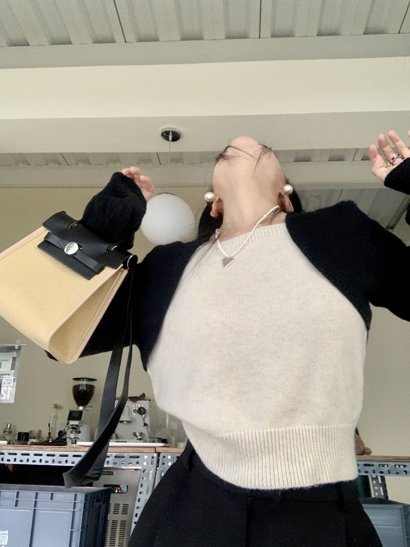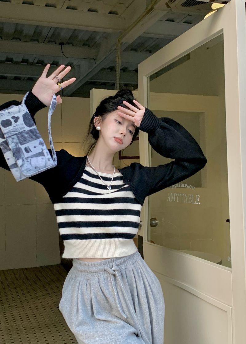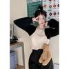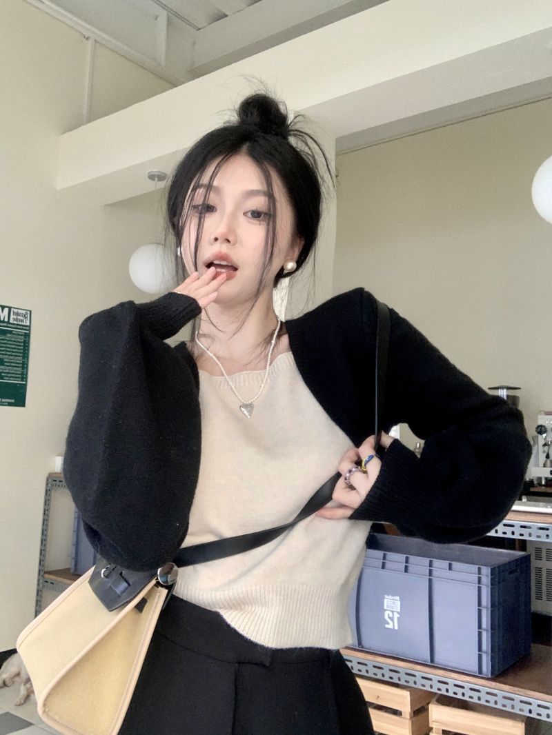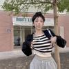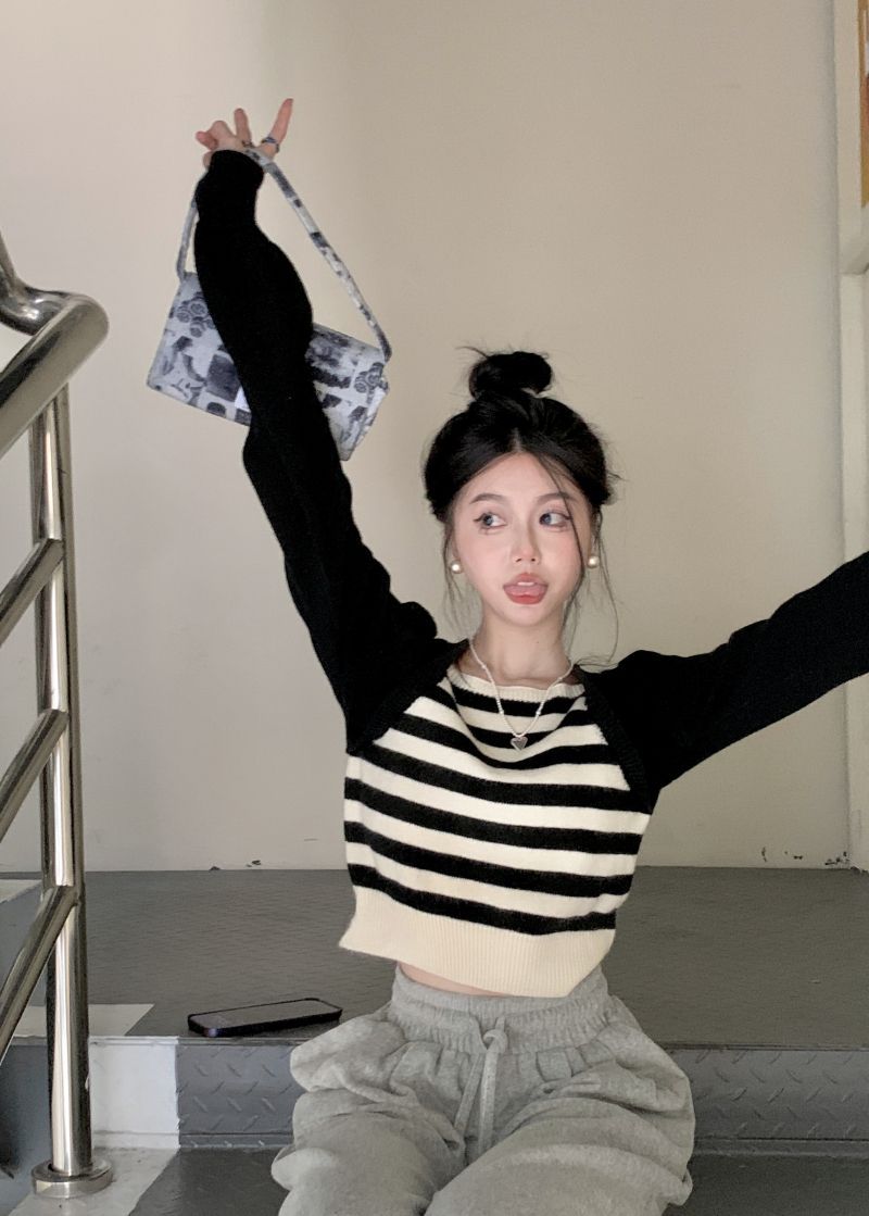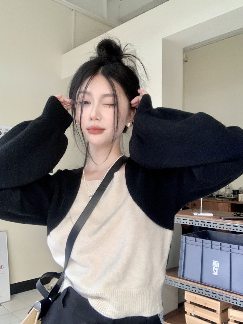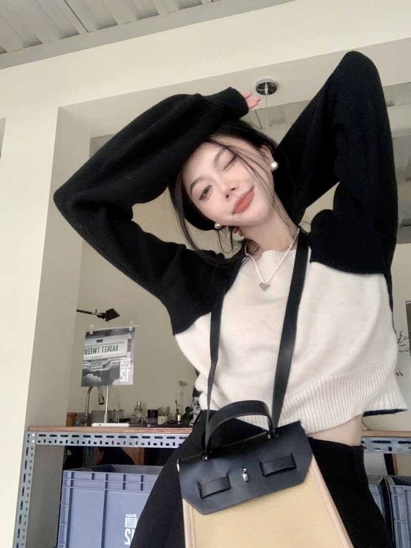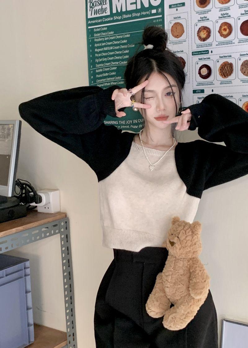 Suéter de punto corto suelto versátil dulce con temperamento de bloque de color, adelgazante, que reduce la edad, nicho con sentido del diseño, suéter casual para mujer