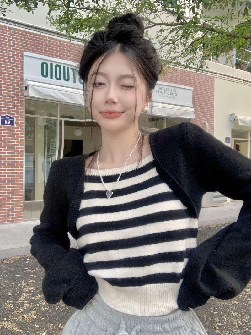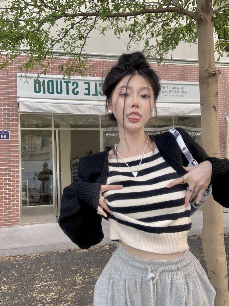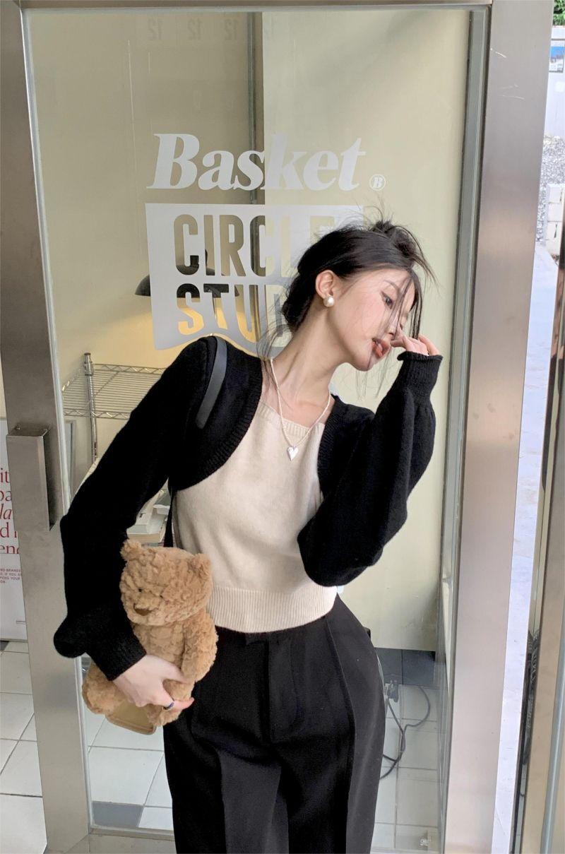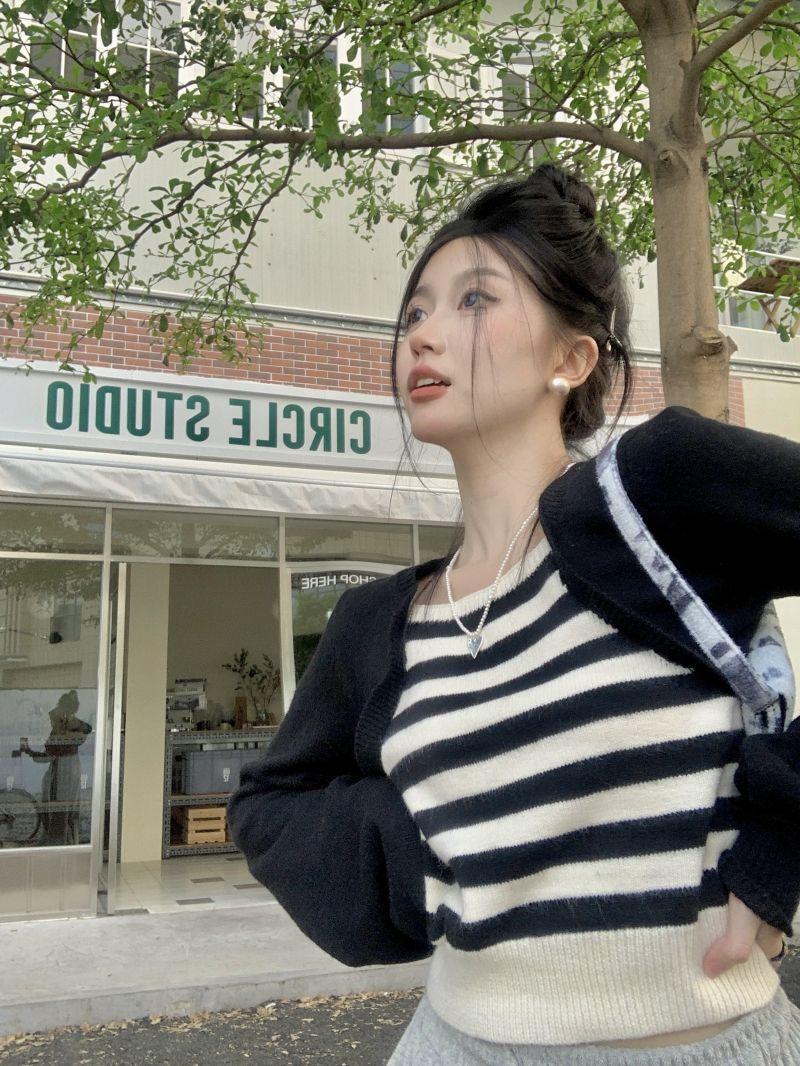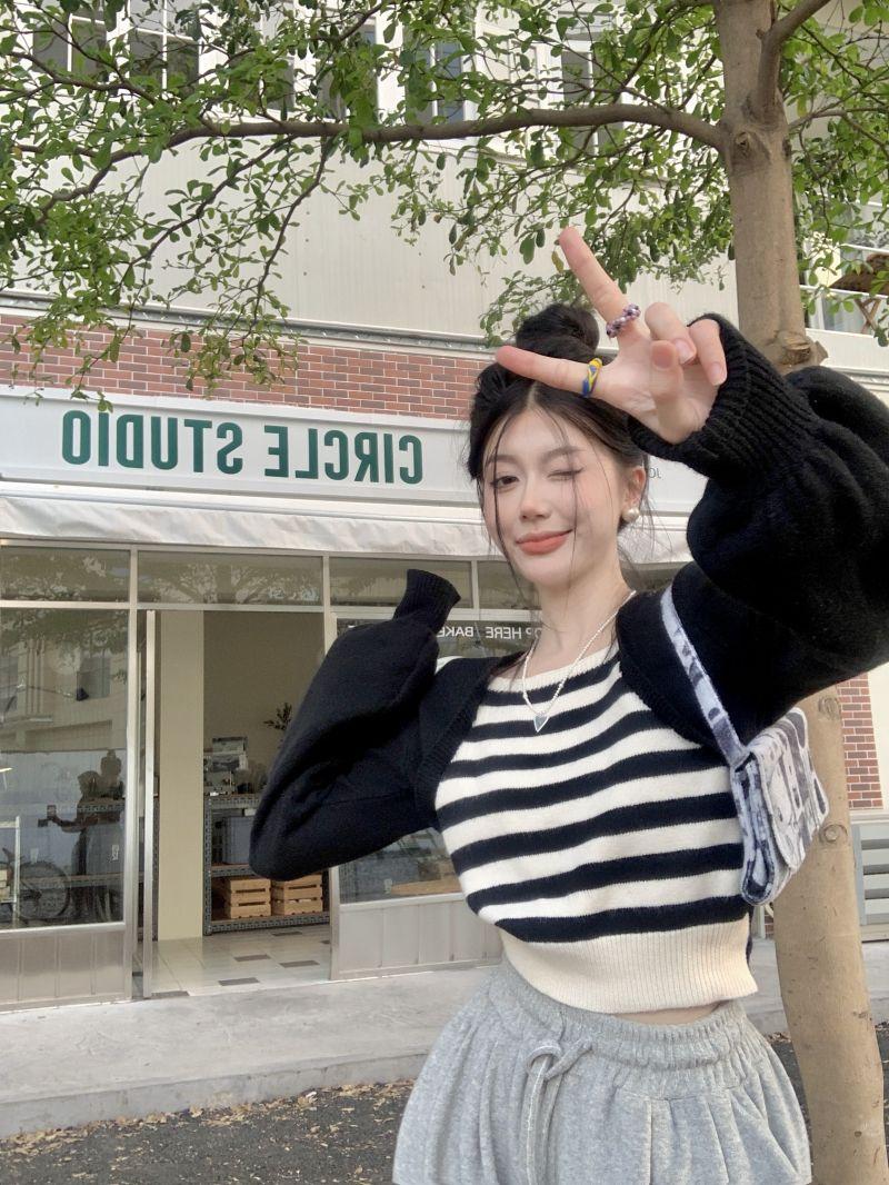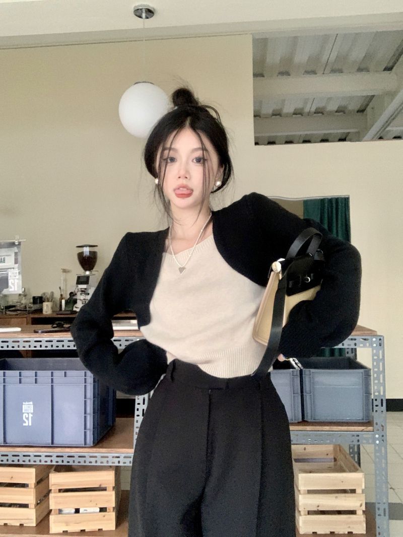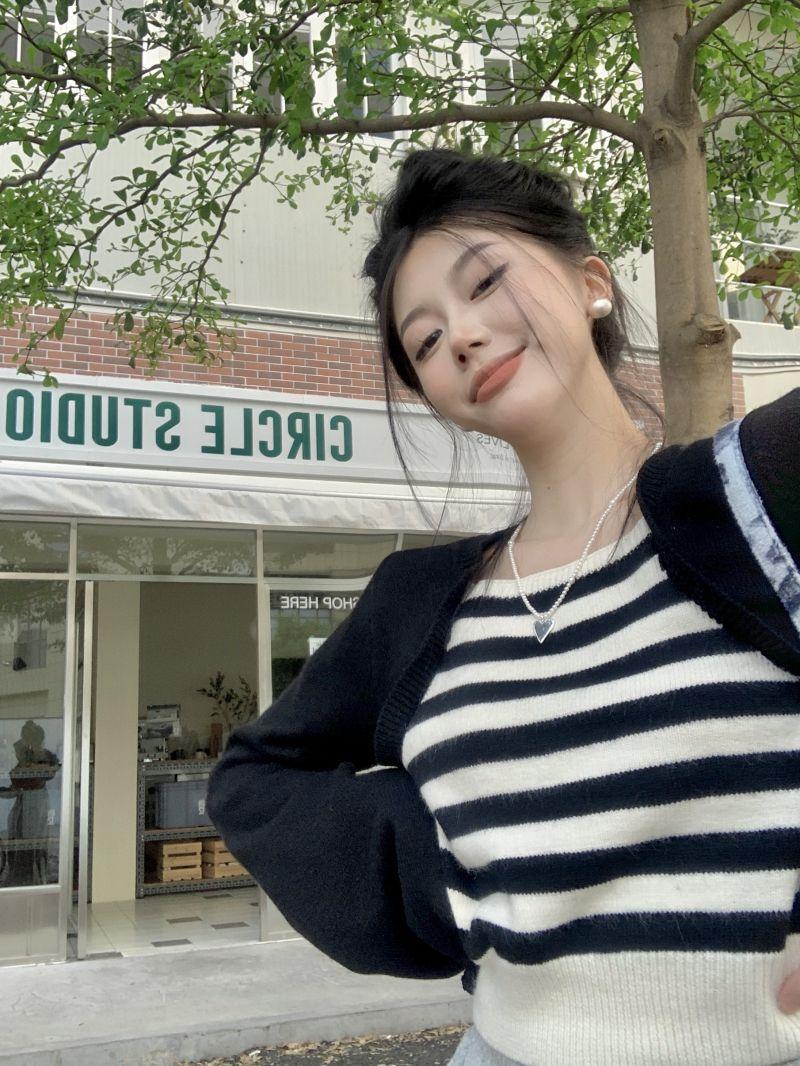 Suéter de punto corto suelto versátil dulce con temperamento de bloque de color, adelgazante, que reduce la edad, nicho con sentido del diseño, suéter casual para mujer