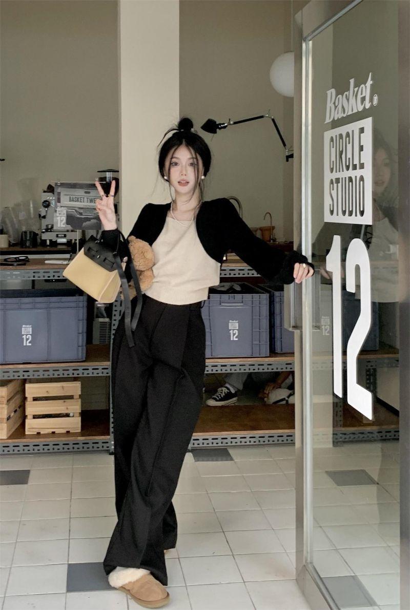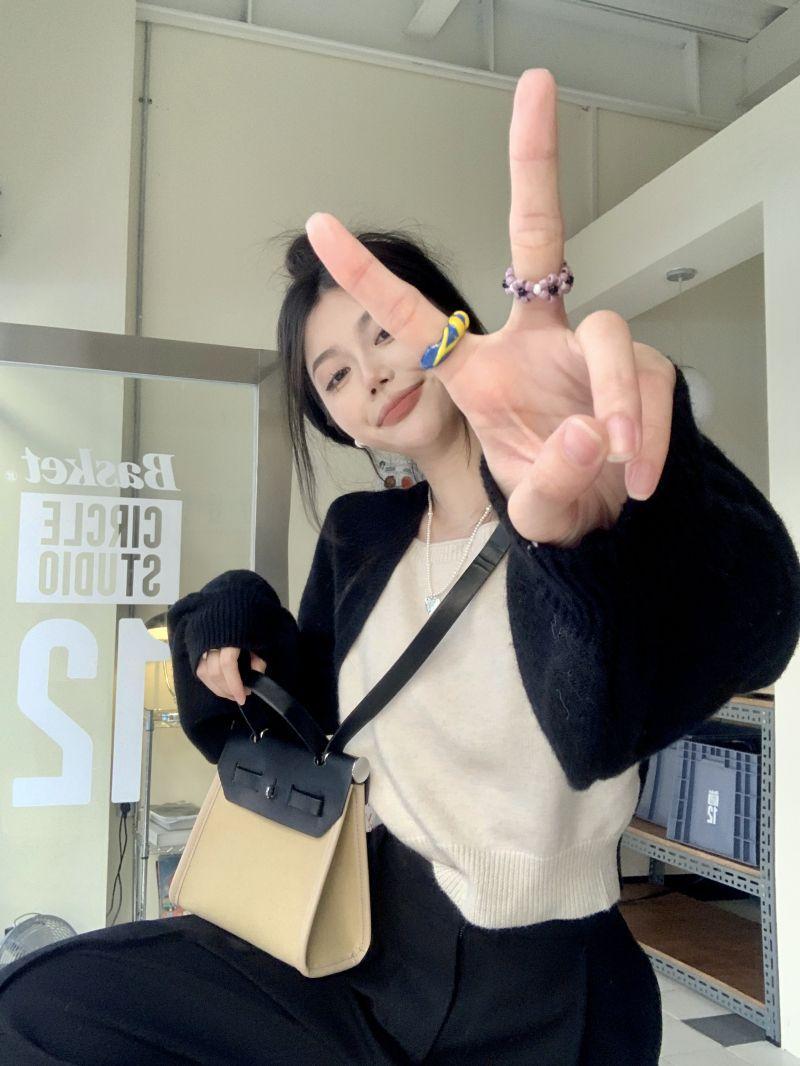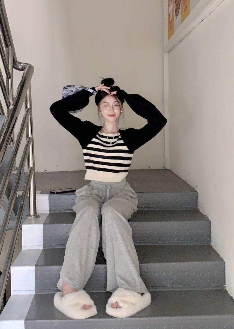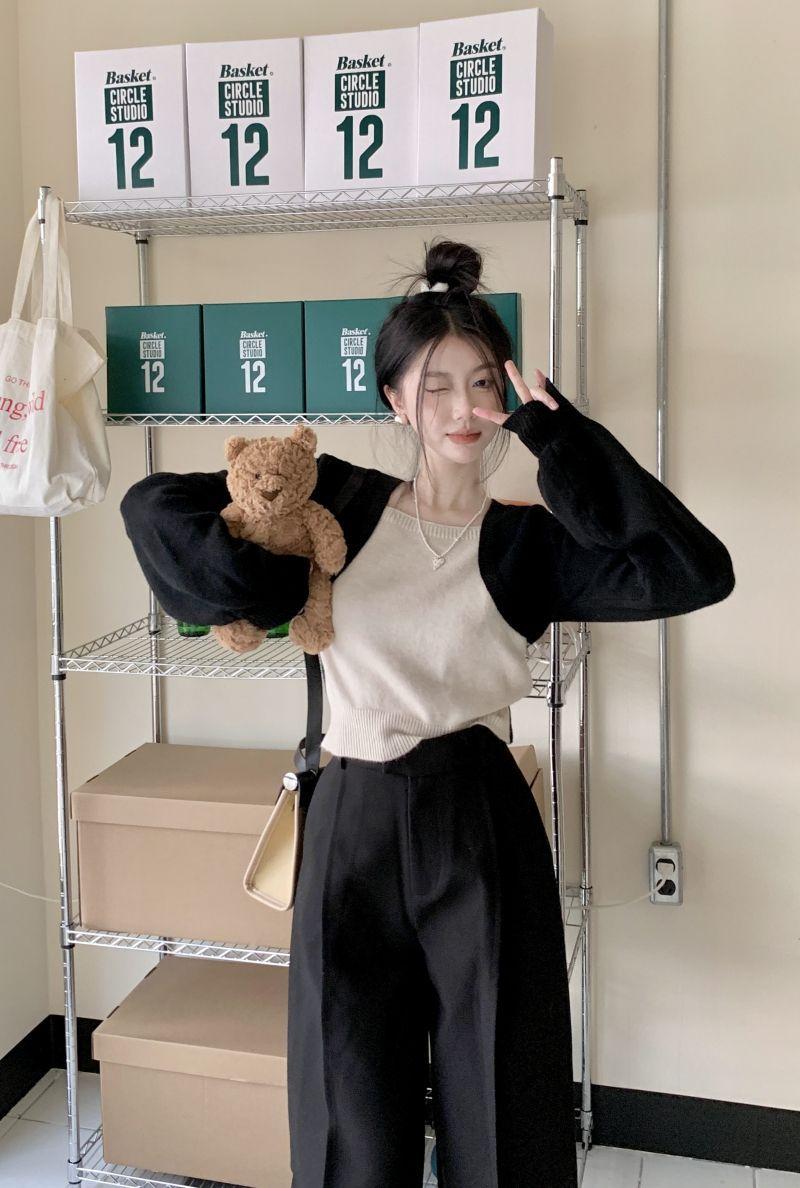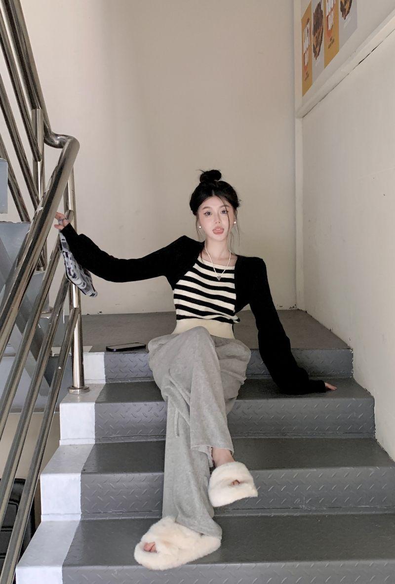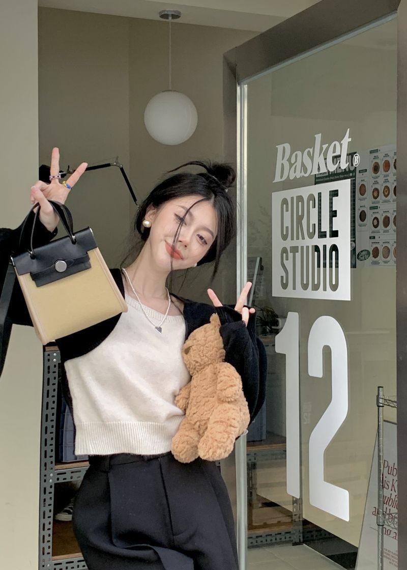 Suéter de punto corto suelto versátil dulce con temperamento de bloque de color, adelgazante, que reduce la edad, nicho con sentido del diseño, suéter casual para mujer