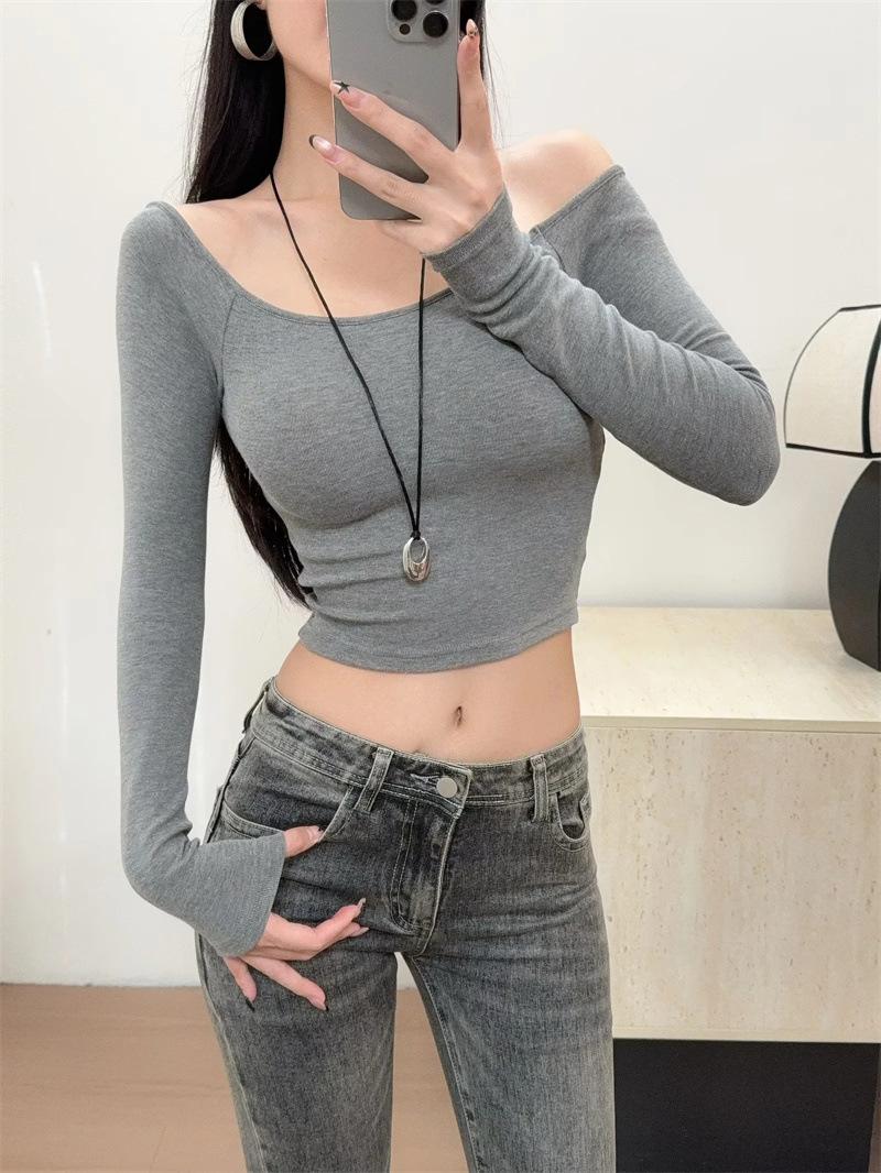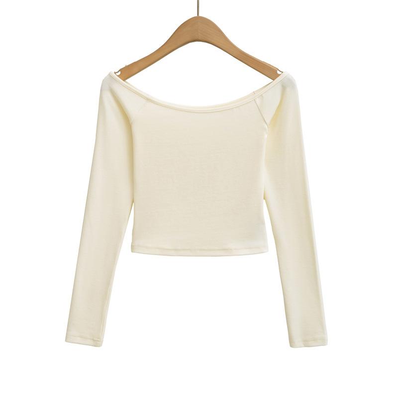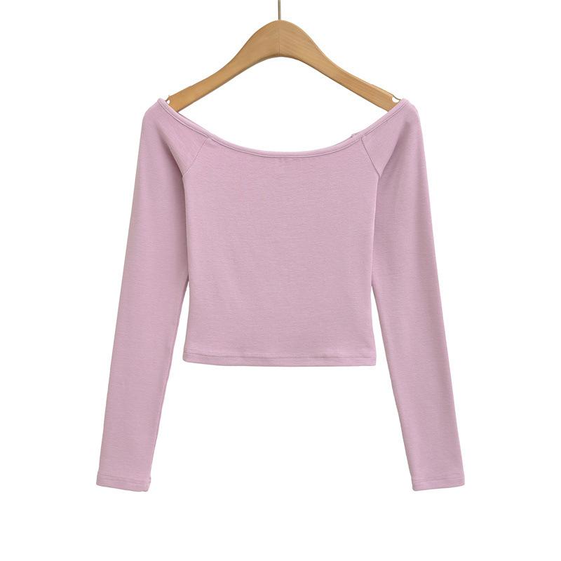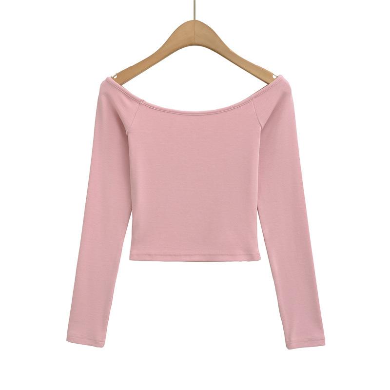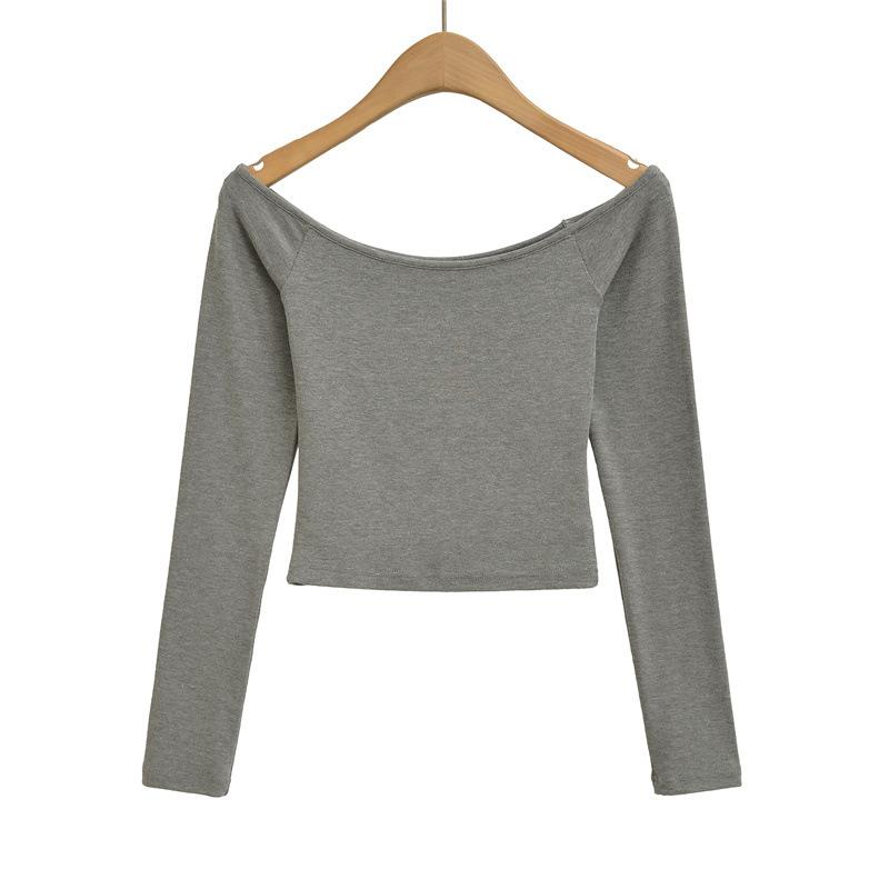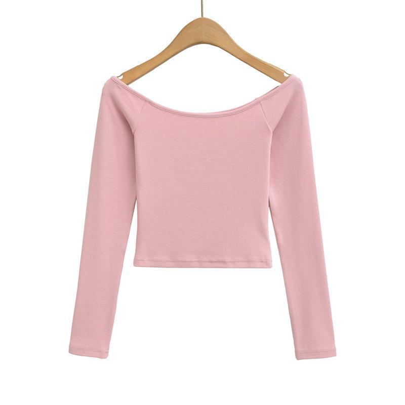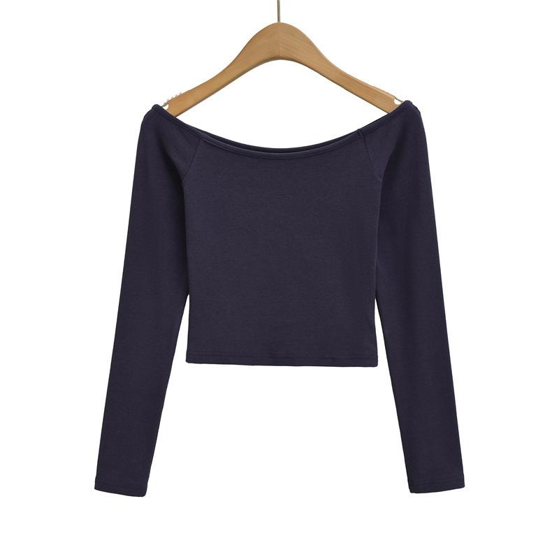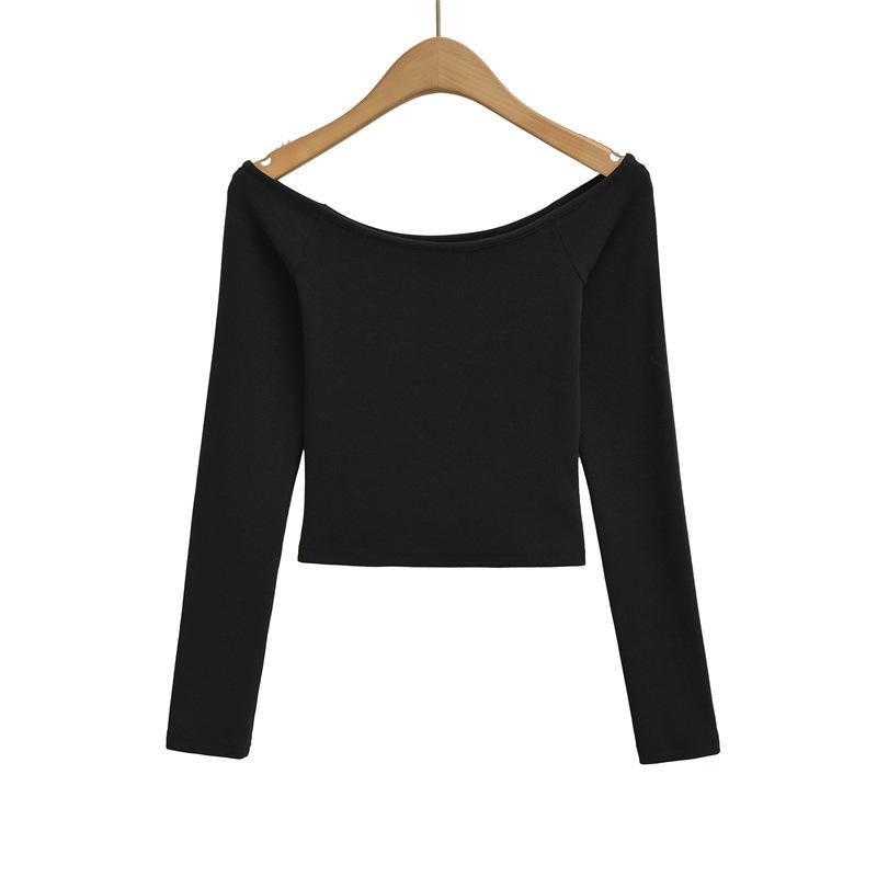 Camiseta pura y sexy de un hombro descubierto, de manga corta larga, otoño nueva, versátil, delgada, color sólido, básica