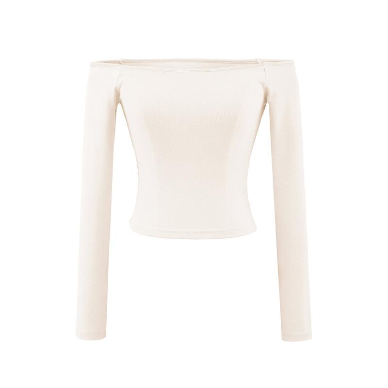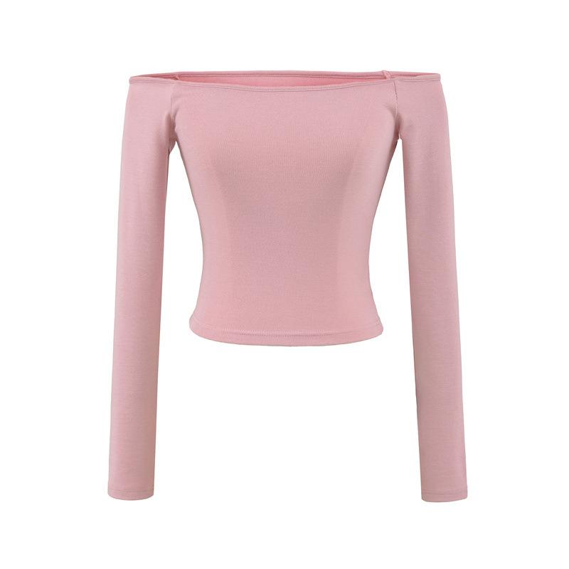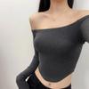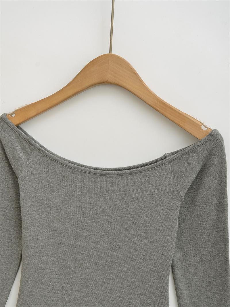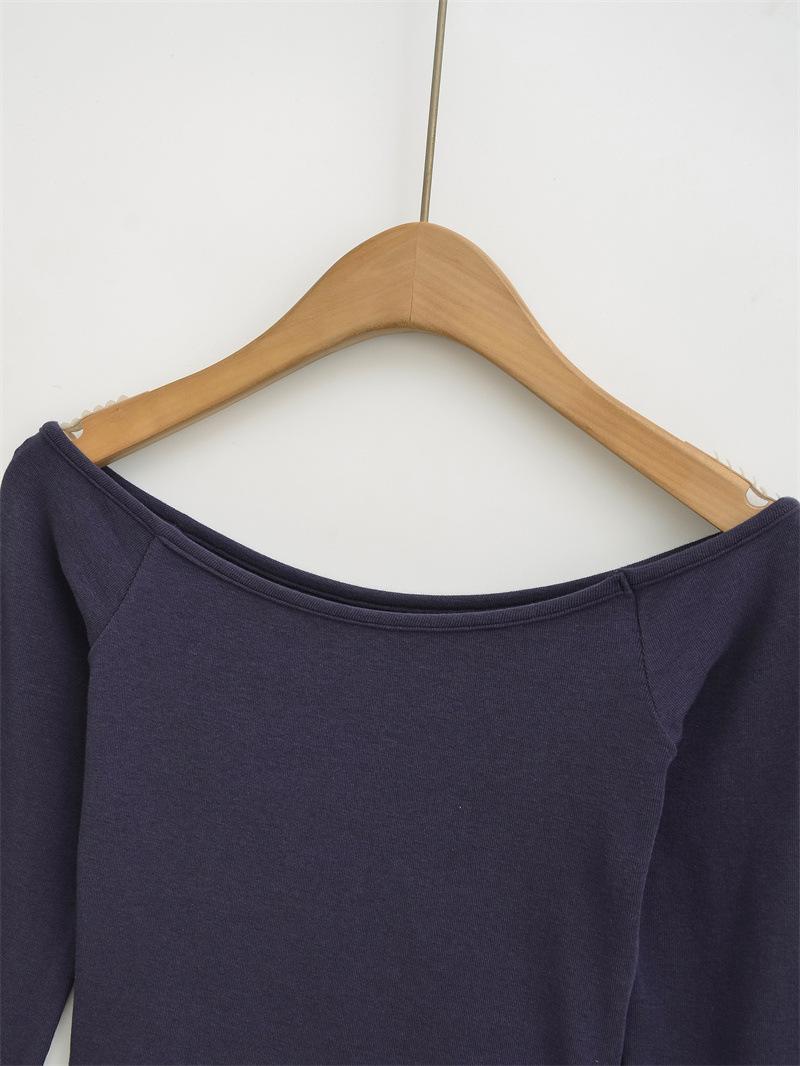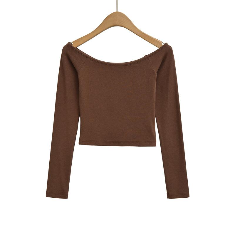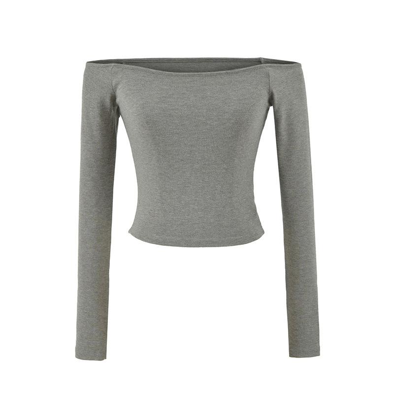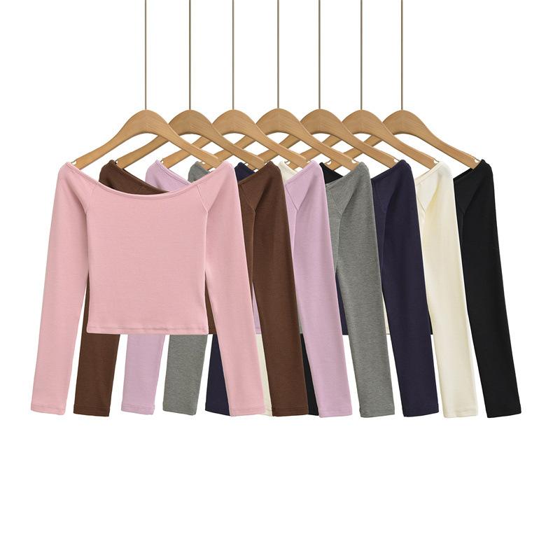 Camiseta pura y sexy de un hombro descubierto, de manga corta larga, otoño nueva, versátil, delgada, color sólido, básica