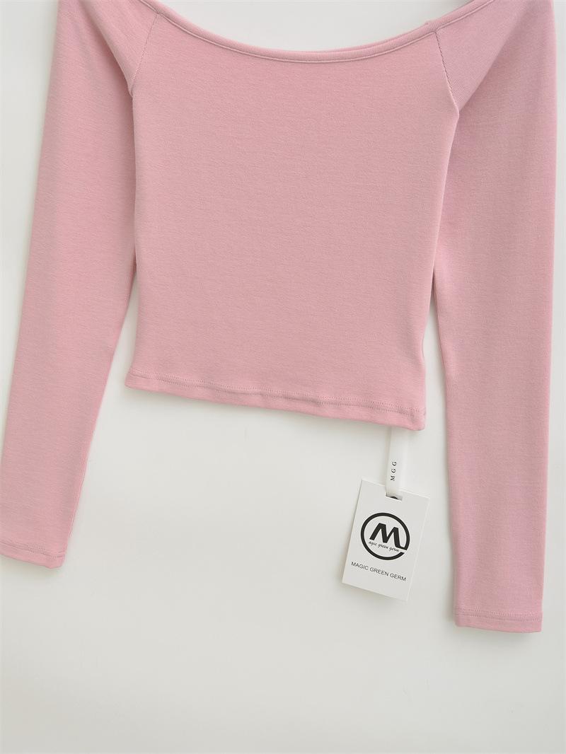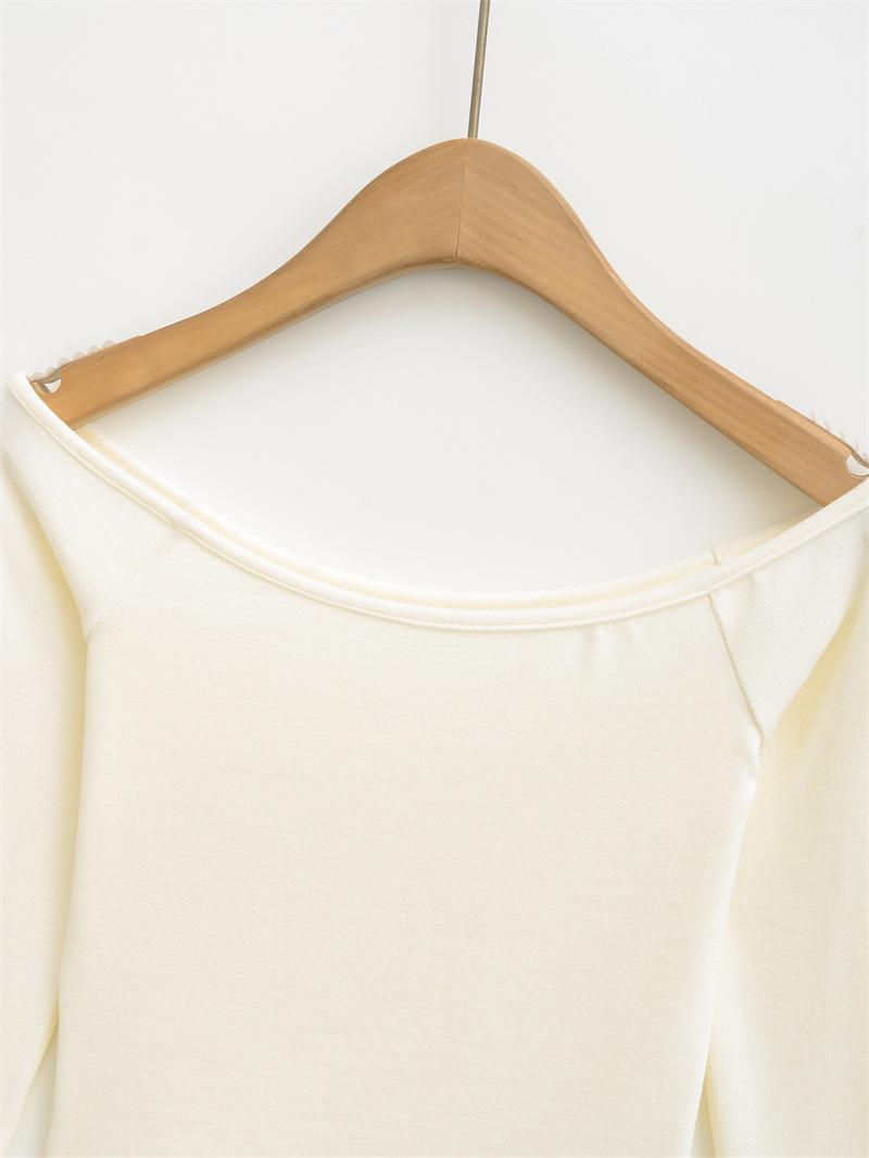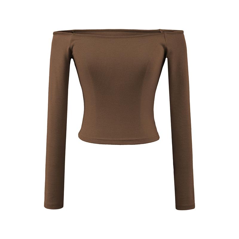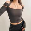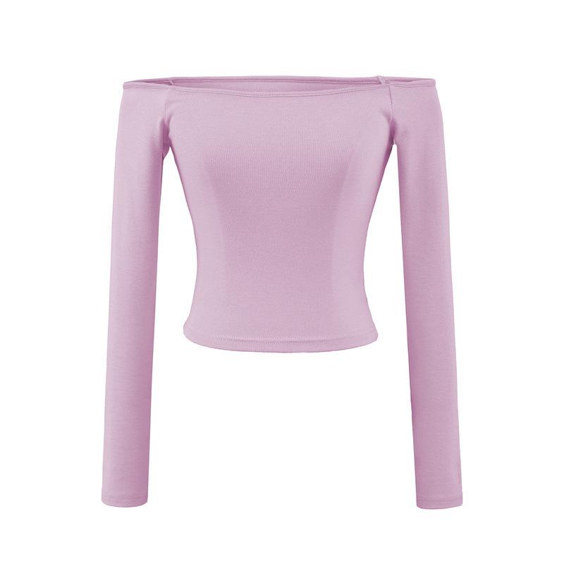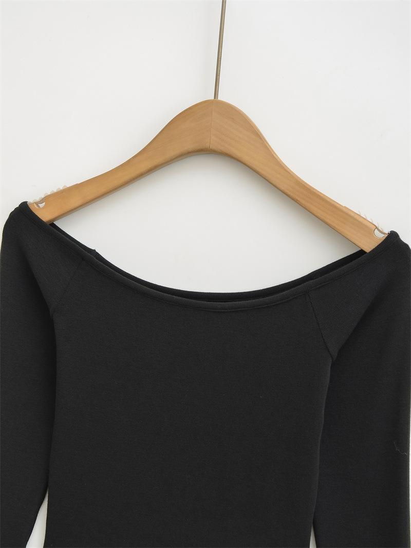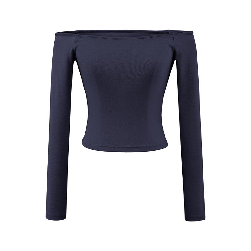 Camiseta pura y sexy de un hombro descubierto, de manga corta larga, otoño nueva, versátil, delgada, color sólido, básica