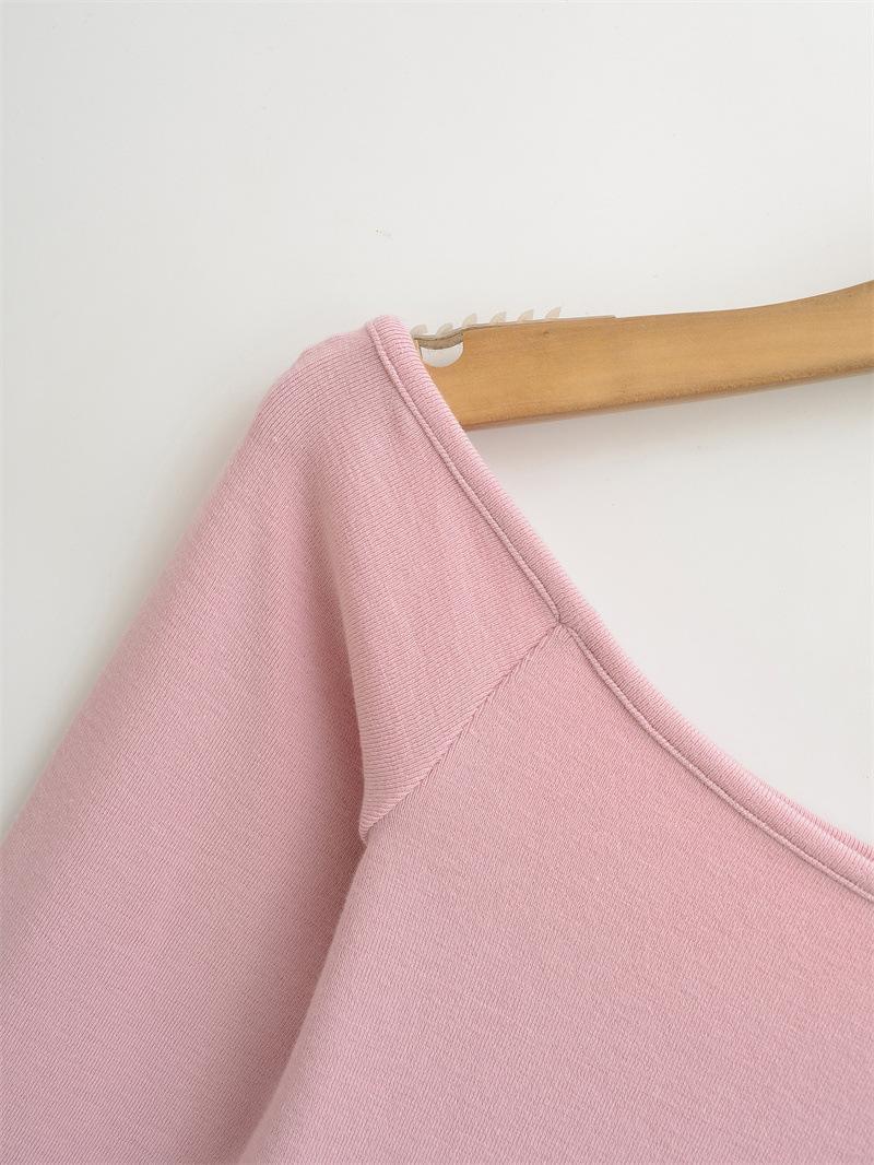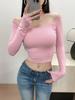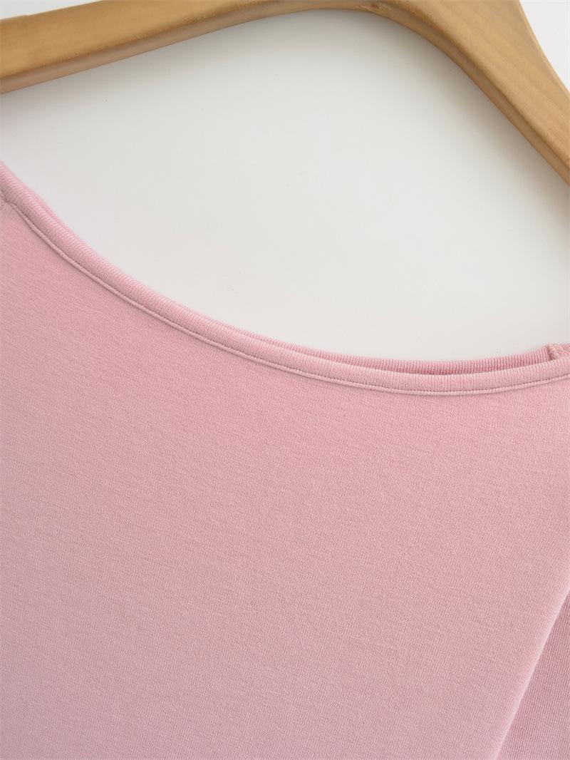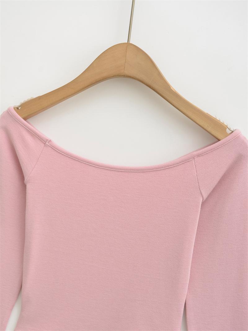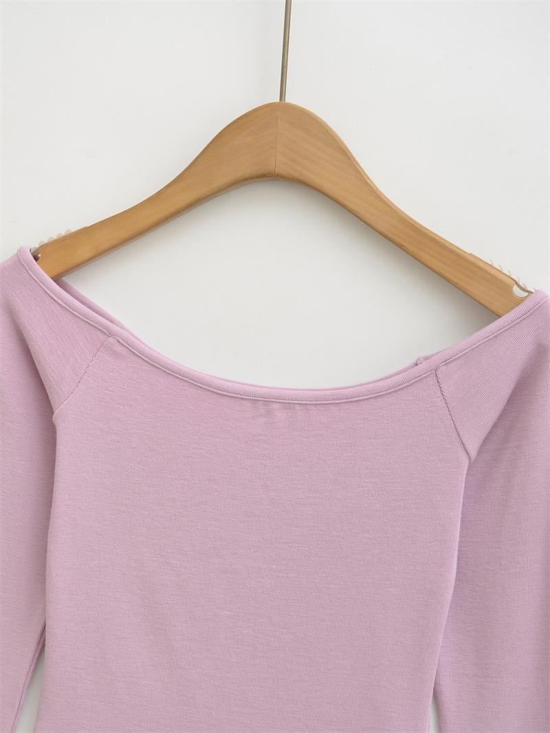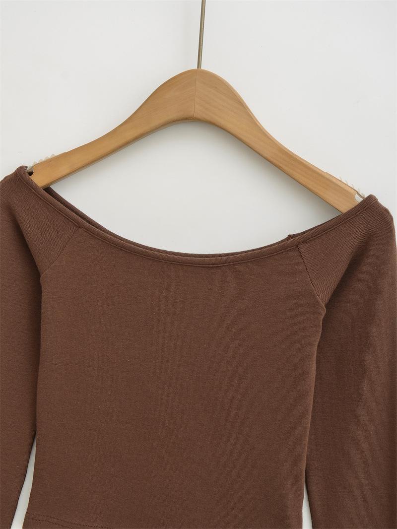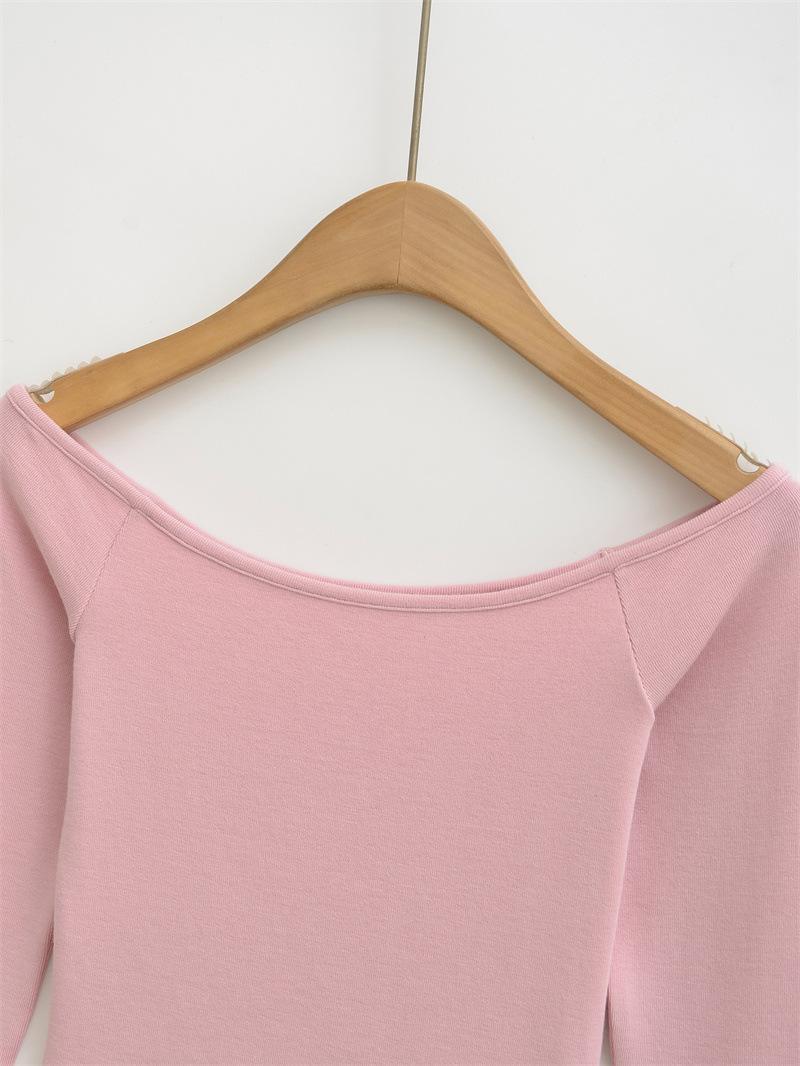 Camiseta pura y sexy de un hombro descubierto, de manga corta larga, otoño nueva, versátil, delgada, color sólido, básica