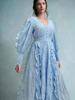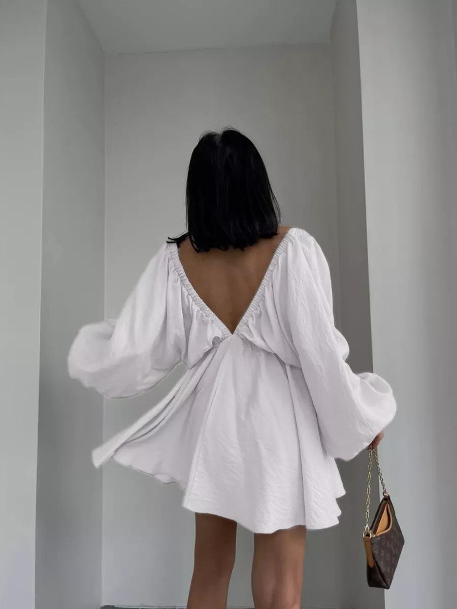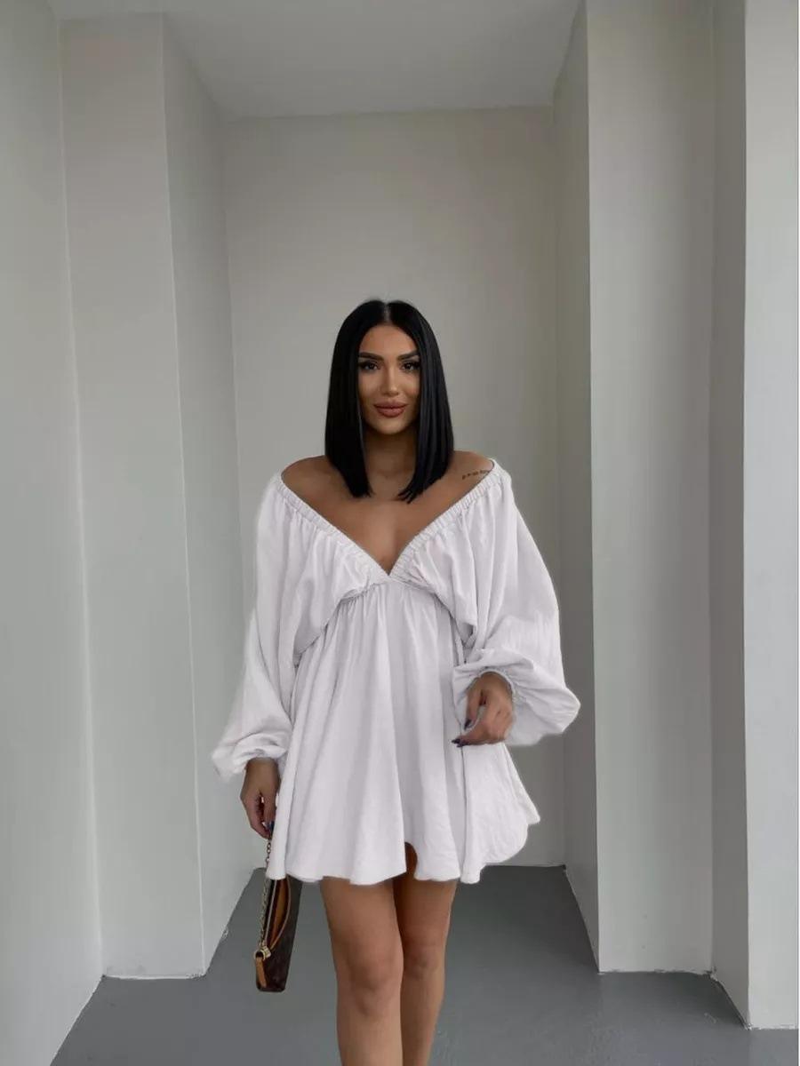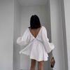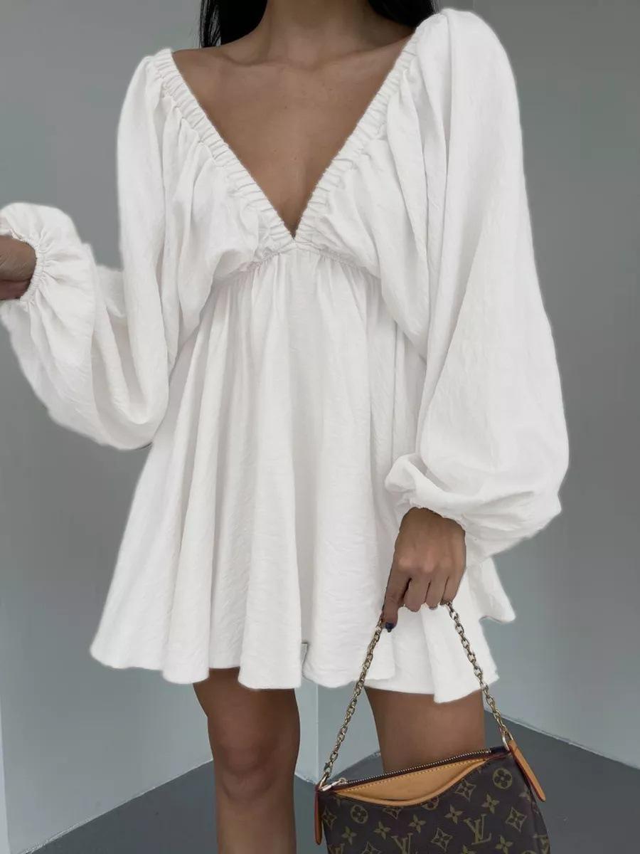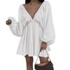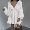 Europeo y Americano Transfronterizo Verano Nuevo Sexy Moda Blanco Puro Temperamento Cuello en V Manga Linterna Manga Larga Fruncido Vestido de Mujer
