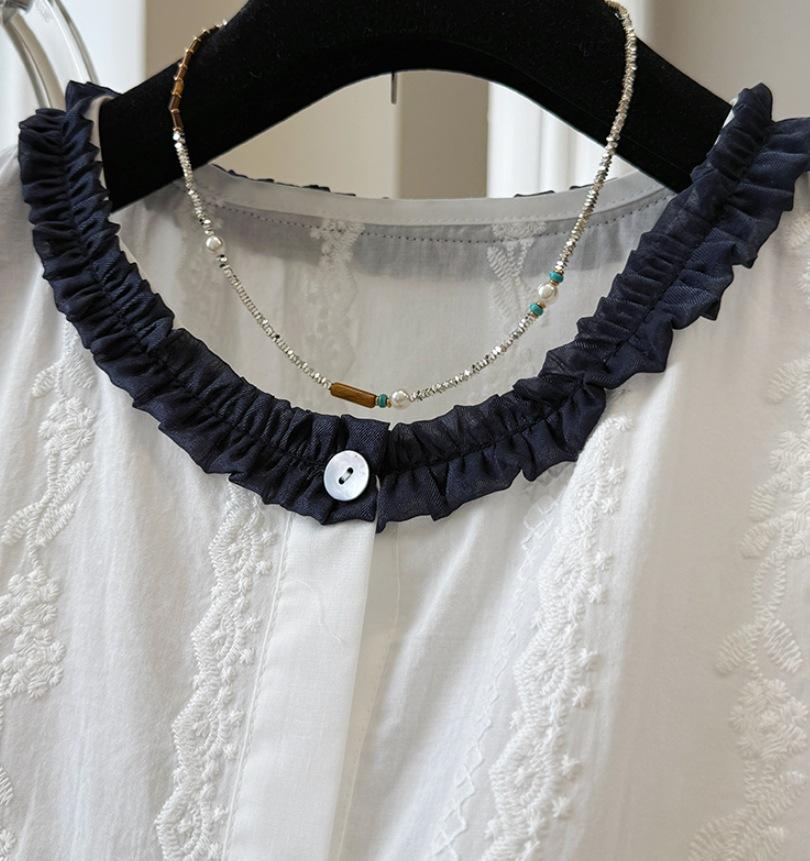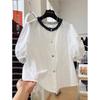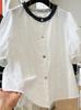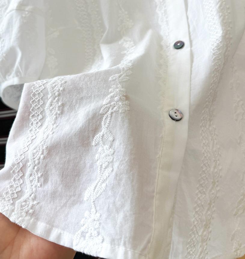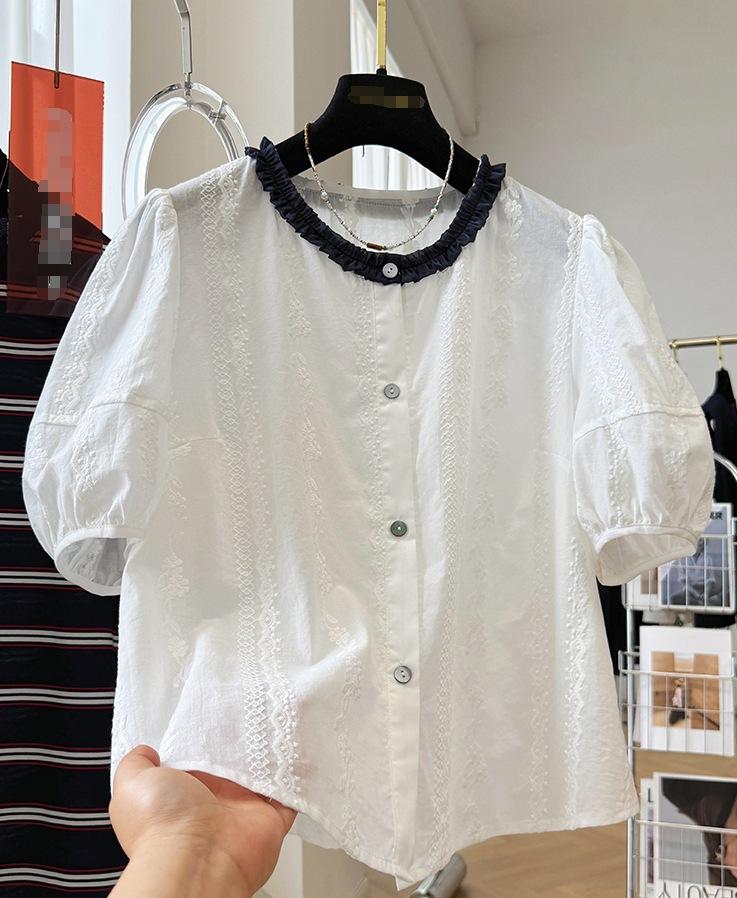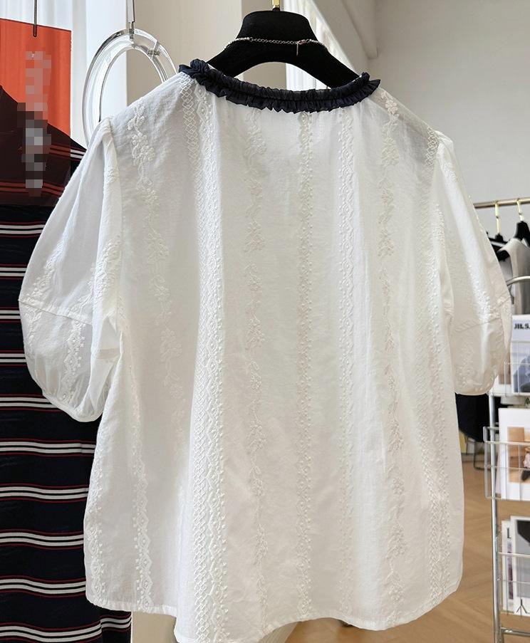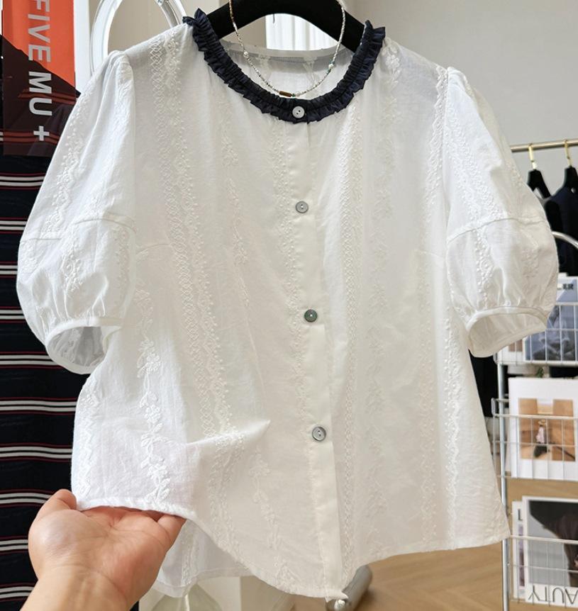 Camisa Elegante Bordada de Manga Corta Abullonada con Cuello Redondo que Reduce la Edad para Mujer, Camisa Francesa de Verano, Top Delgado Super Bonito