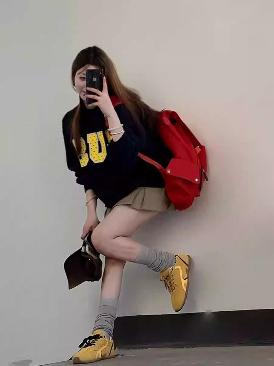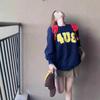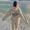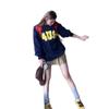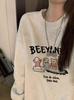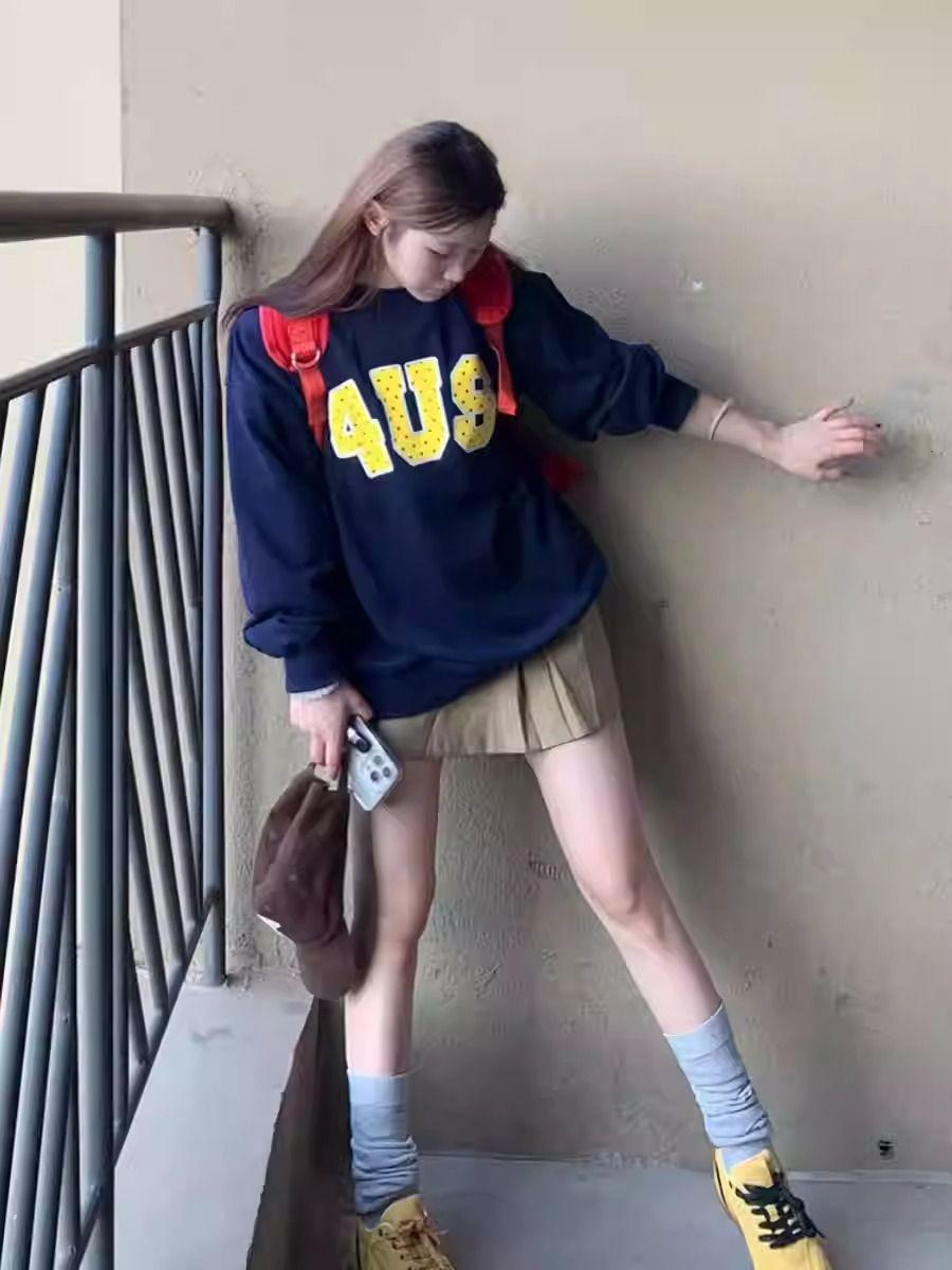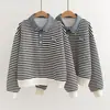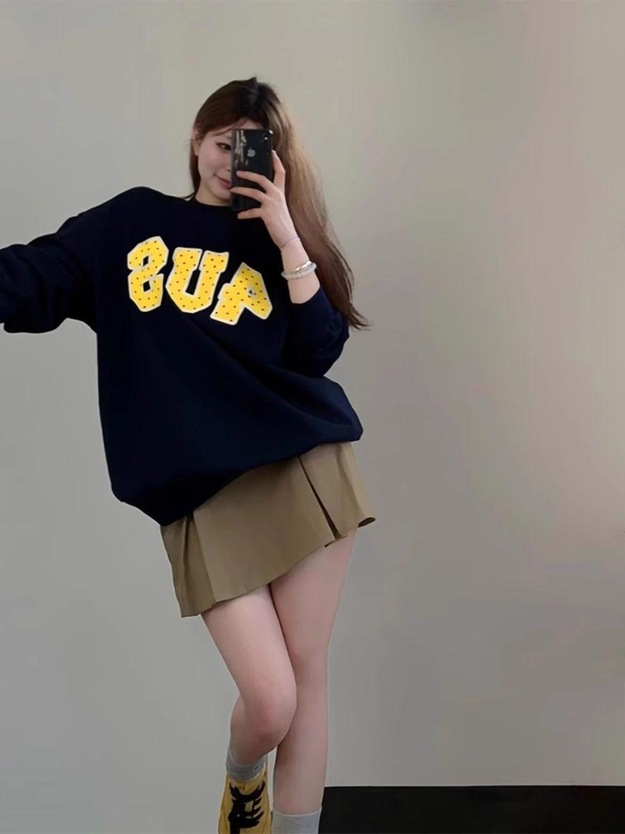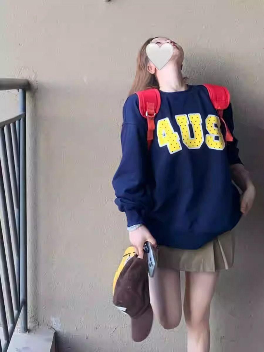 Otoño Nuevo Estilo Retro Japonés Sudadera de Manga Larga con Estampado de Letras y Lunares Blanco-Gris para Mujer Top Japonés Versátil Tendencia