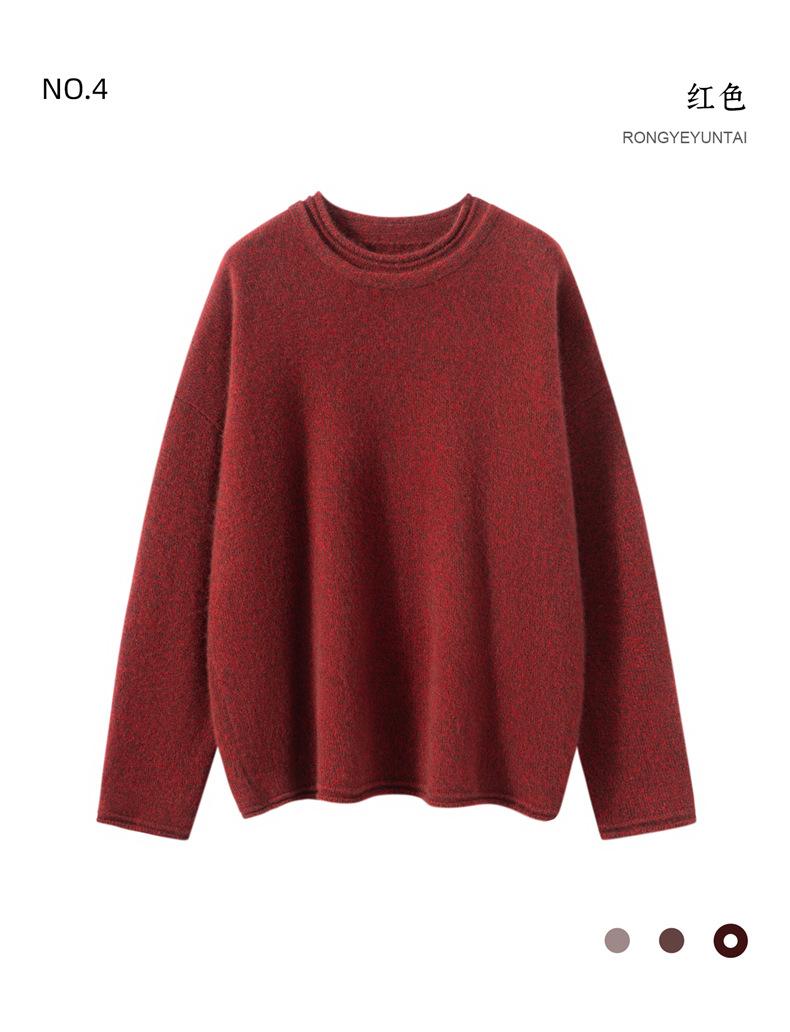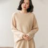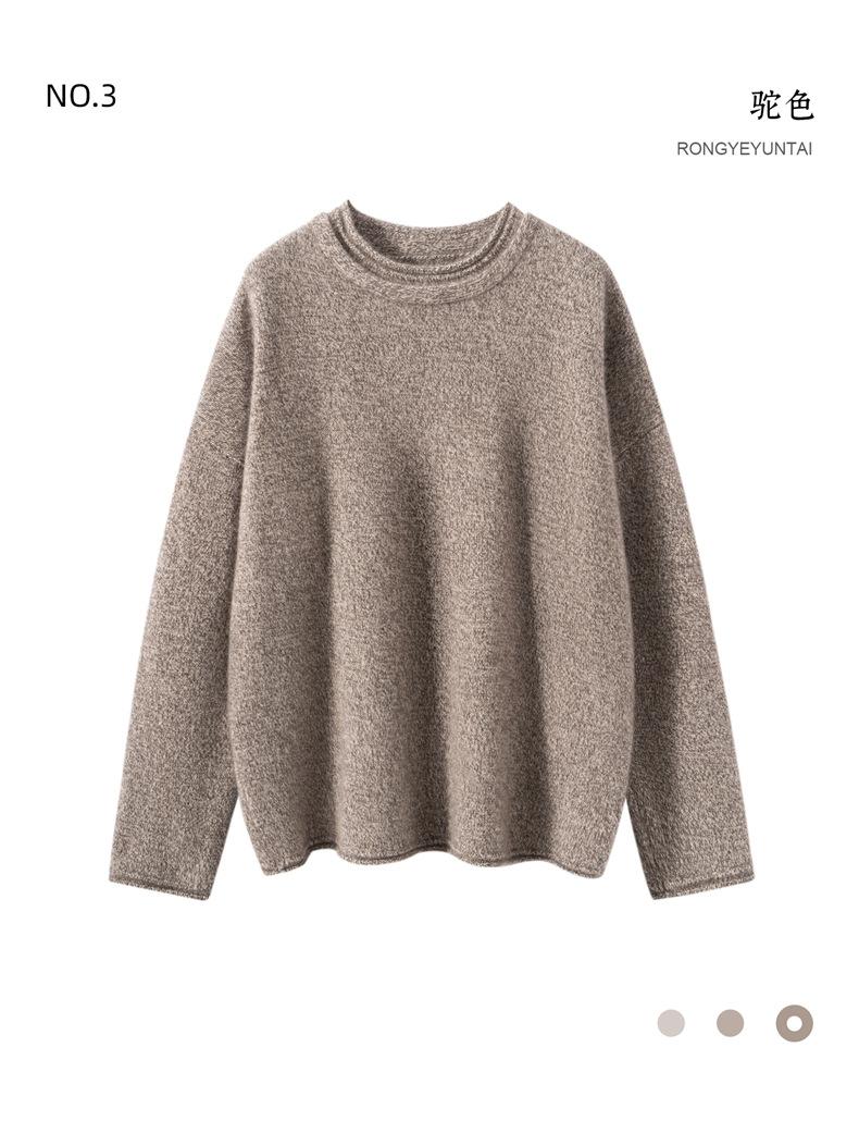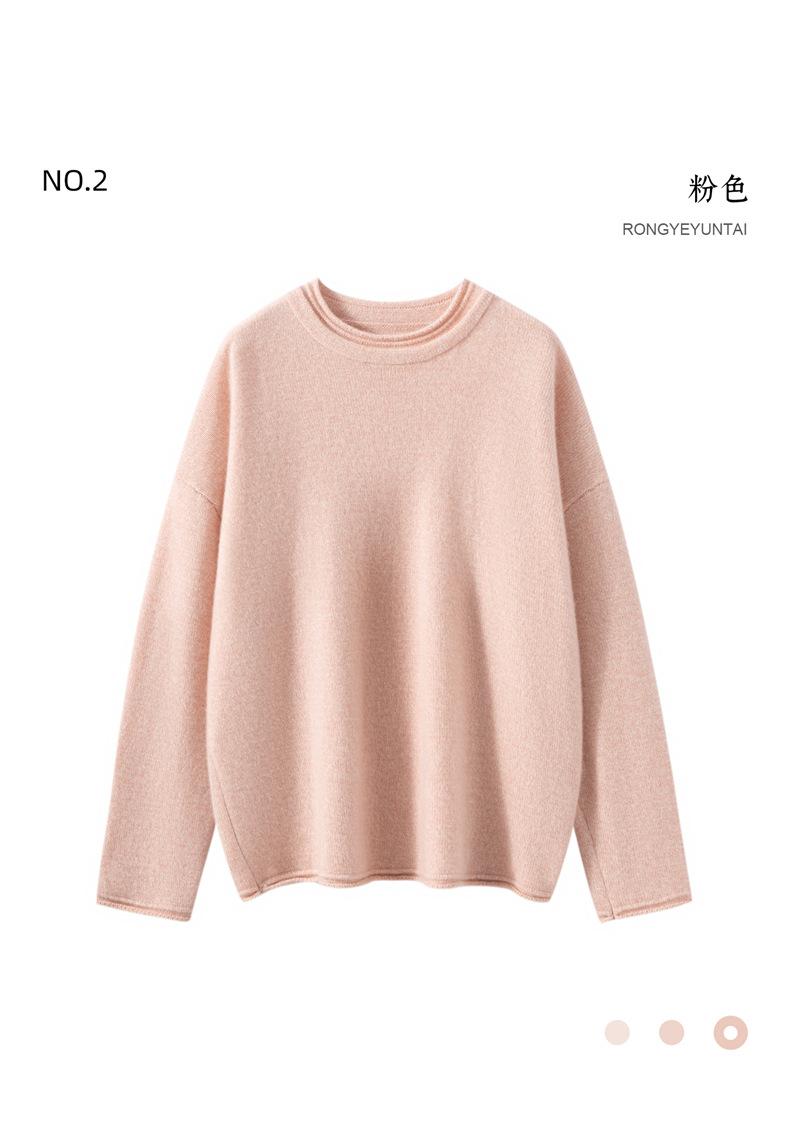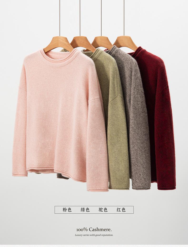 Nuevo Otoño/Invierno 100% Cachemira Pura Jersey de Cuello Redondo para Mujer Temperamento Versátil Tejido Color Sólido Suéter Camiseta Base