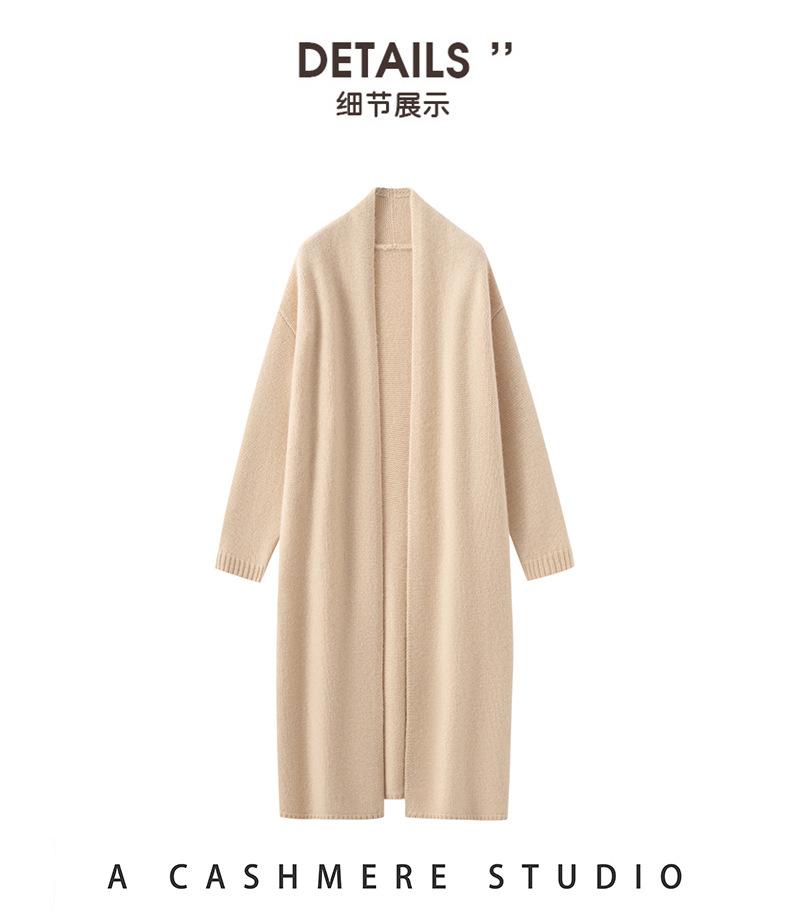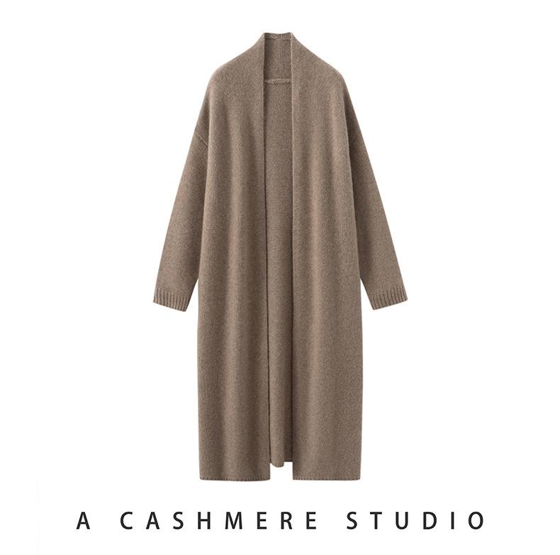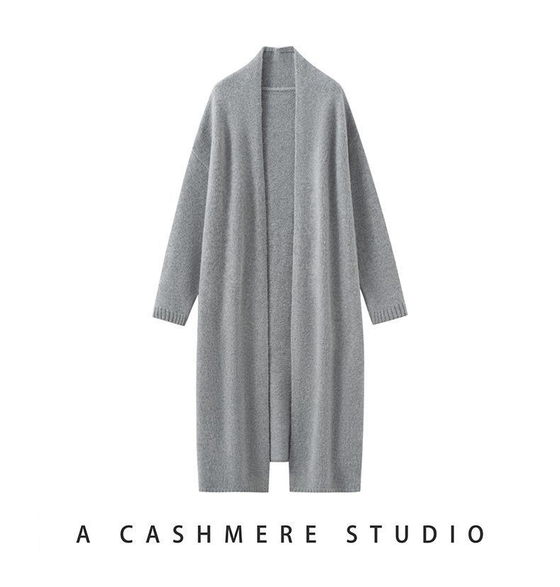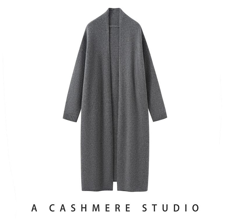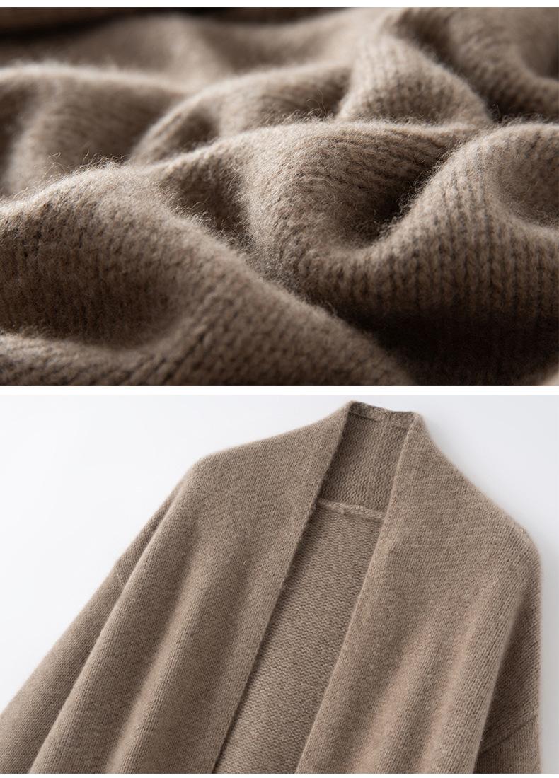 Cárdigan de Punto de Cachemira para Mujer, Holgado, Casual, Versátil, Estilo Perezoso, Largo Medio, Otoño e Invierno, Abrigo Exterior Nuevo