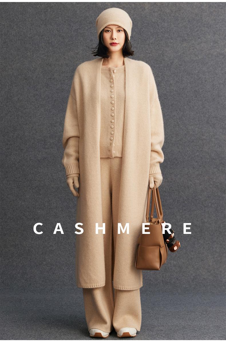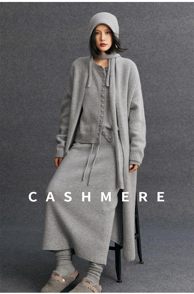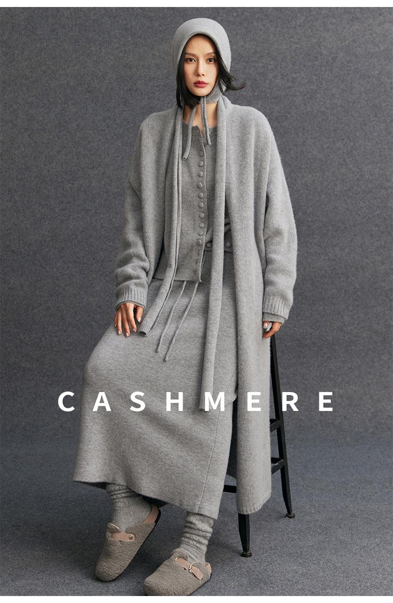 Cárdigan de Punto de Cachemira para Mujer, Holgado, Casual, Versátil, Estilo Perezoso, Largo Medio, Otoño e Invierno, Abrigo Exterior Nuevo
