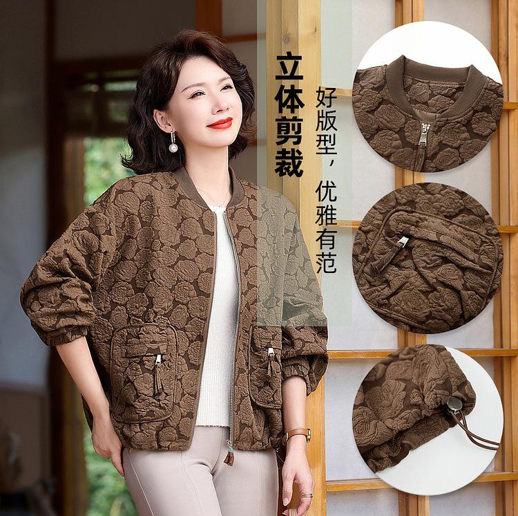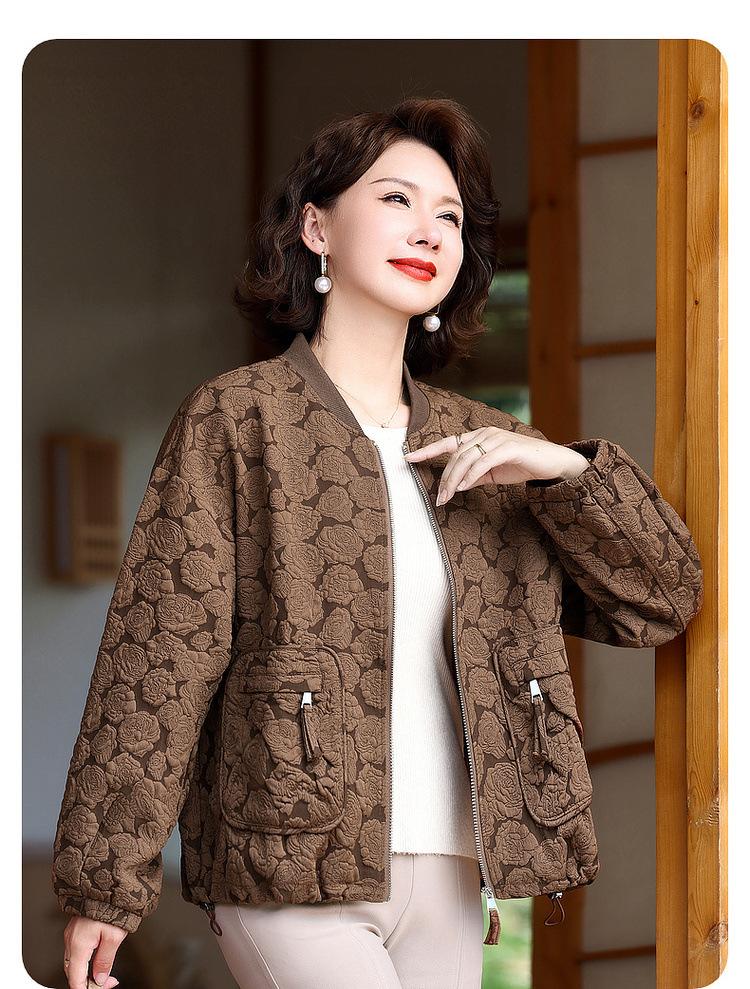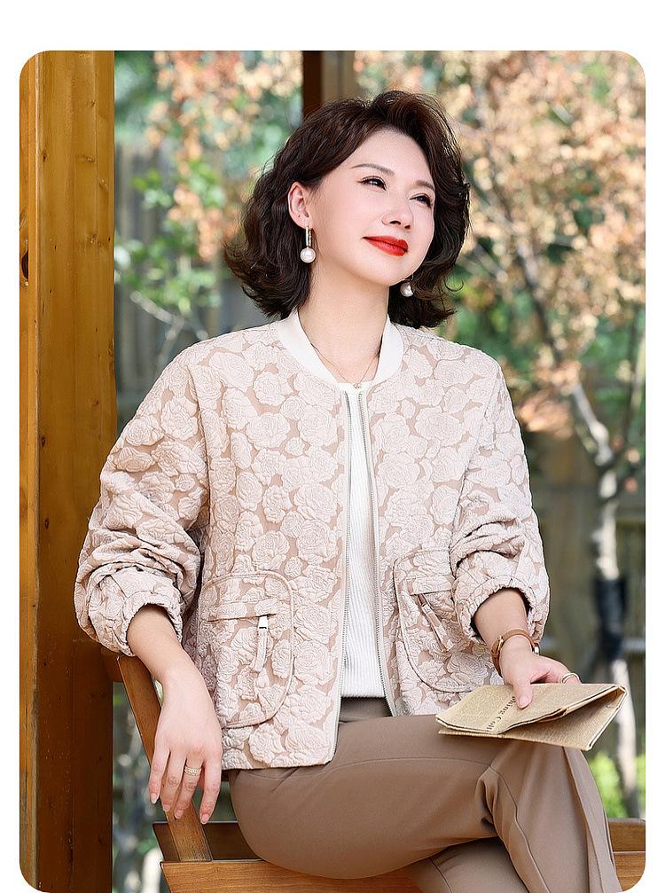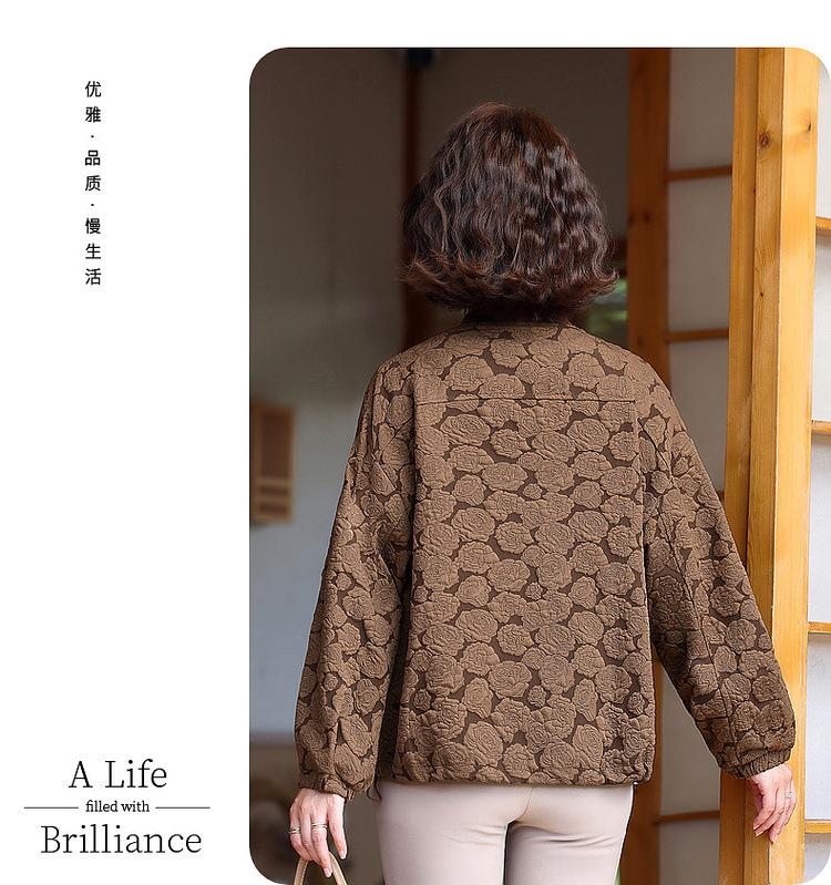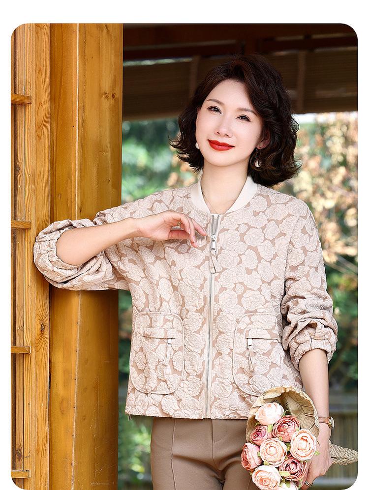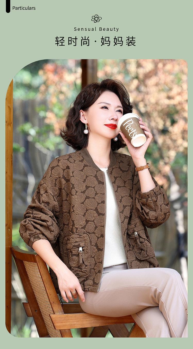 Otoño 2025 nueva ropa para mujeres de mediana edad y mayores ropa de madre moda floral holgada chaqueta corta top estilo básico para ir al trabajo