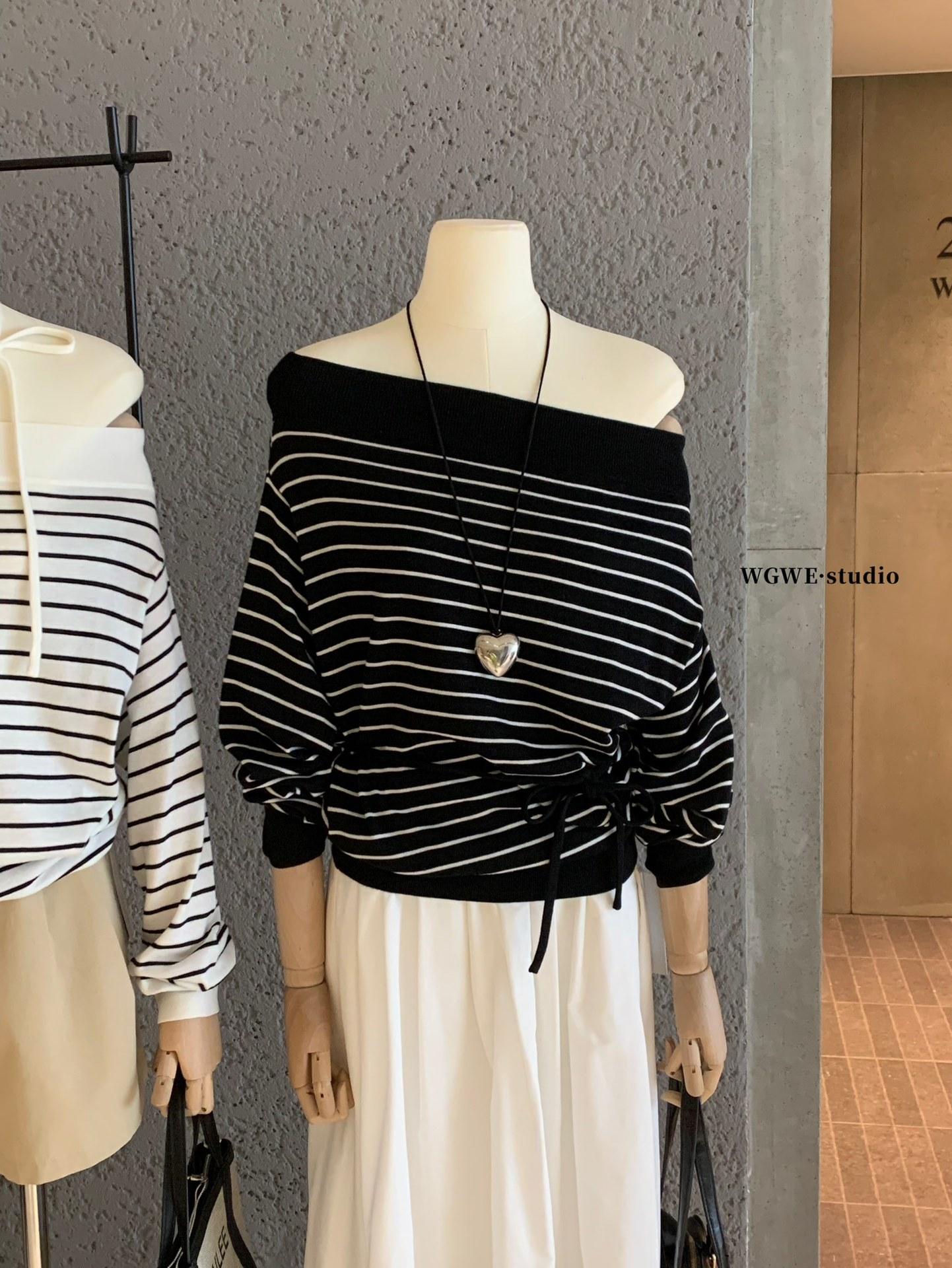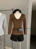 WGWE7004#Ropa de Mujer Guangzhou Shisanhang Otoño 2025 Nuevo Temperamento Top Tejido de Manga Larga con Un Hombro