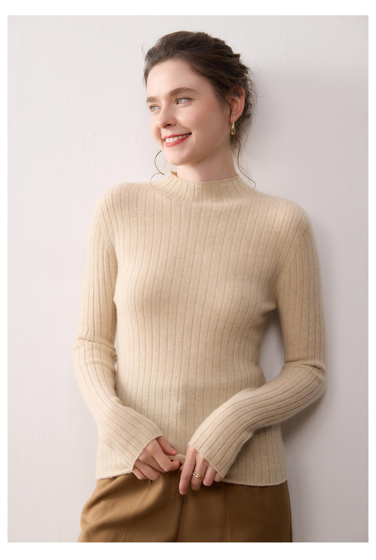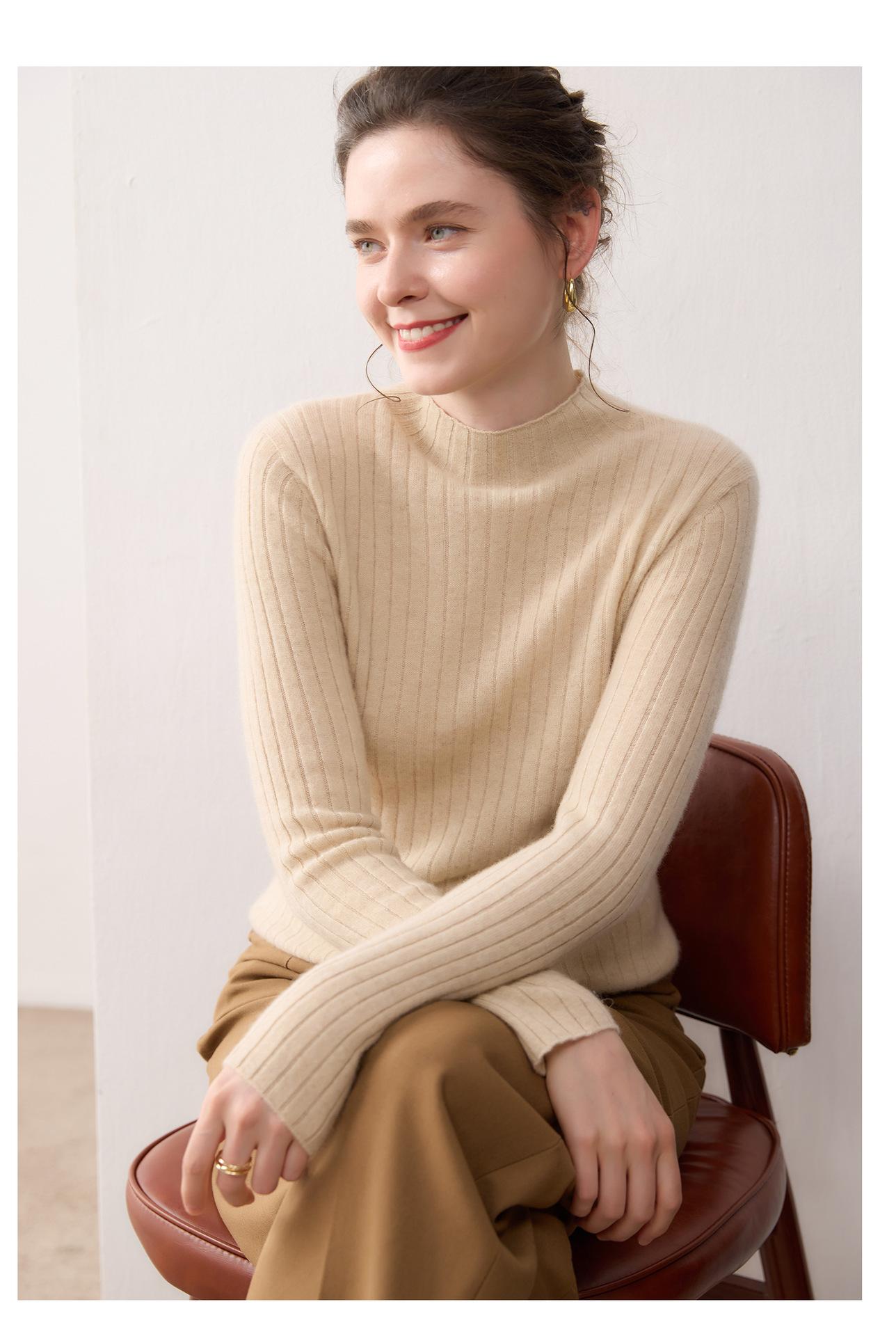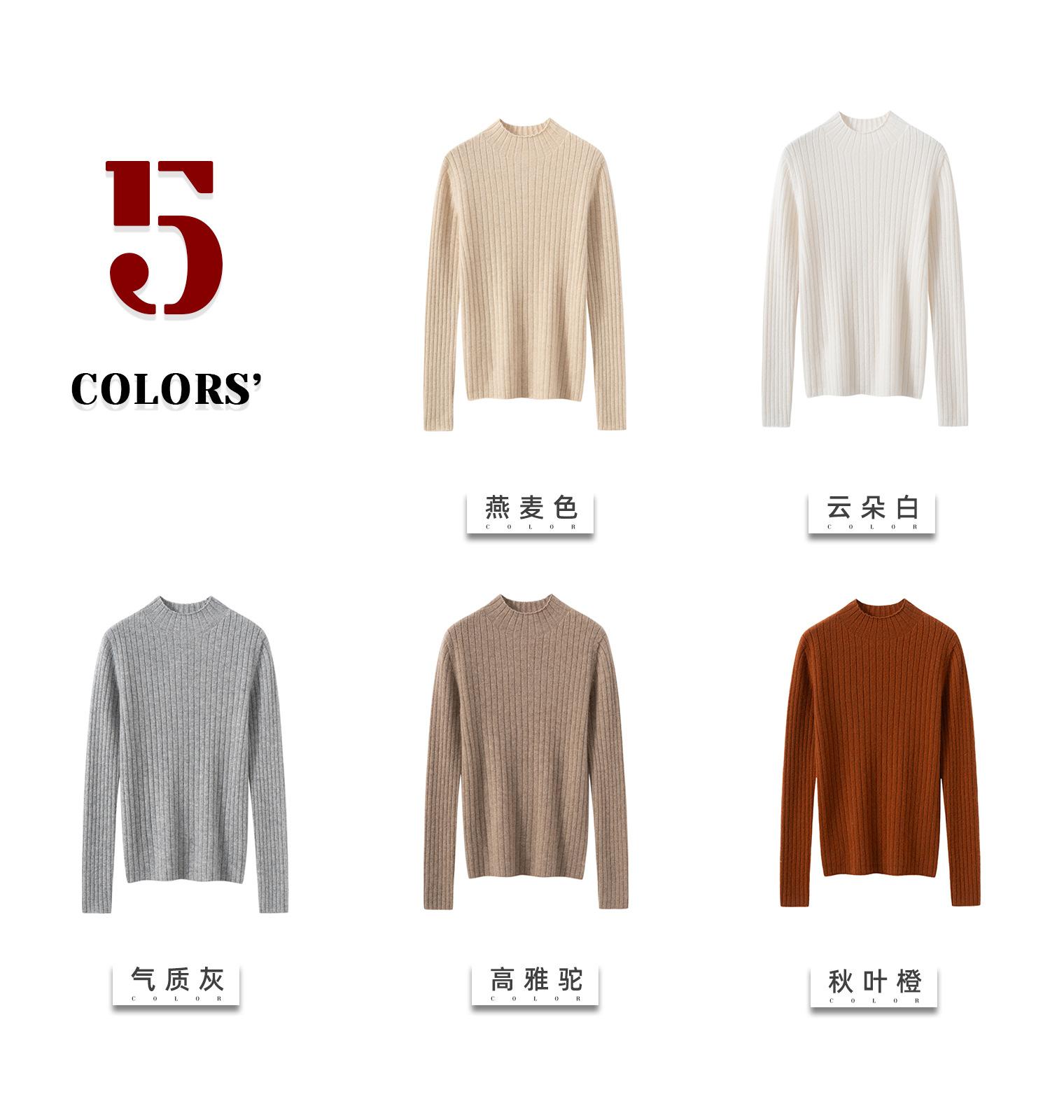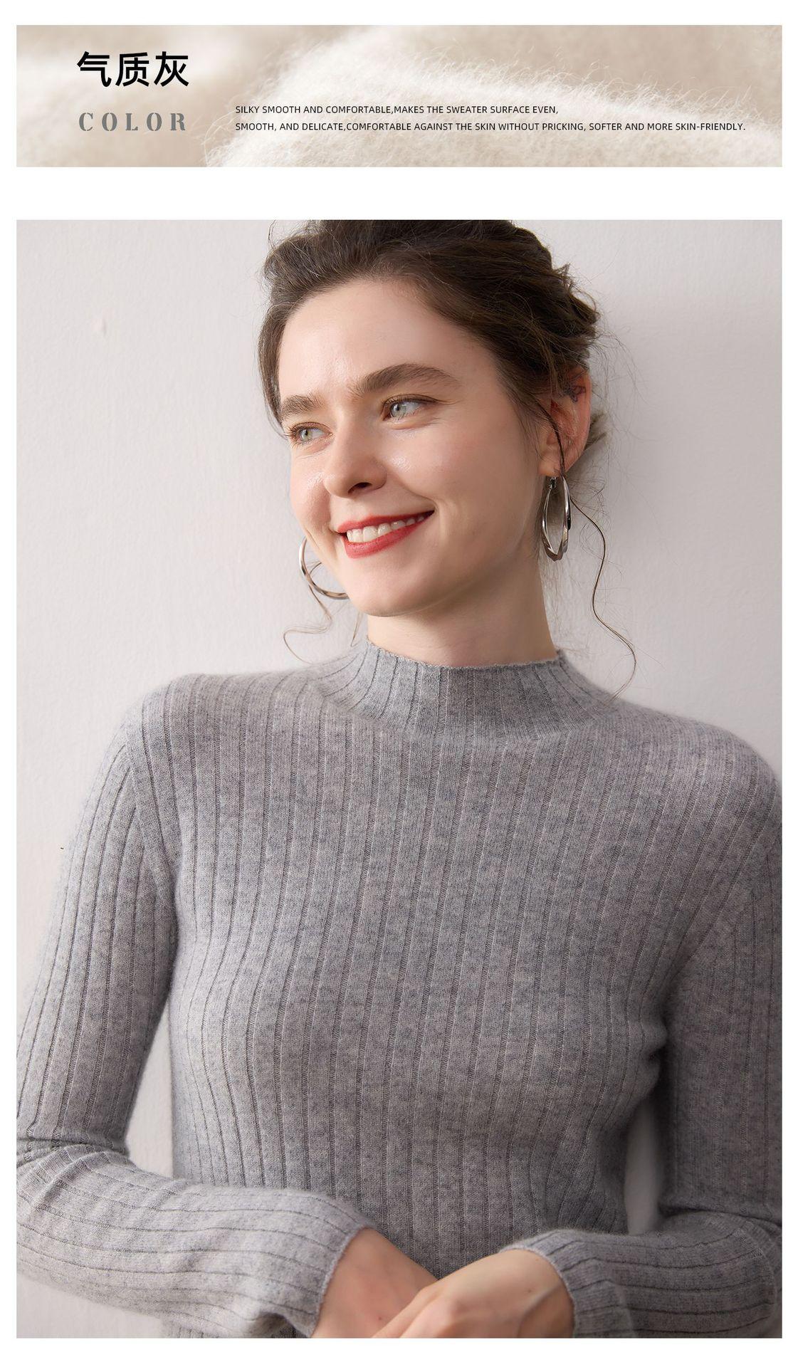 Suéter Versátil de Corte Slim 100% Cachemira Pura Temperamental Tejido de Cuello Semi-Alto 2025 Otoño/Invierno Nuevo Tejido Base para Mujer