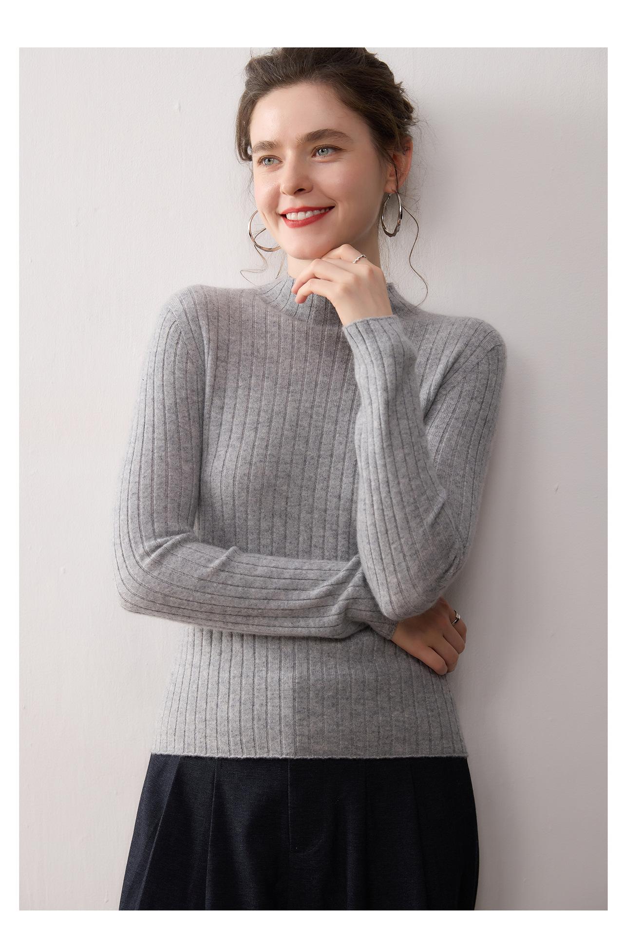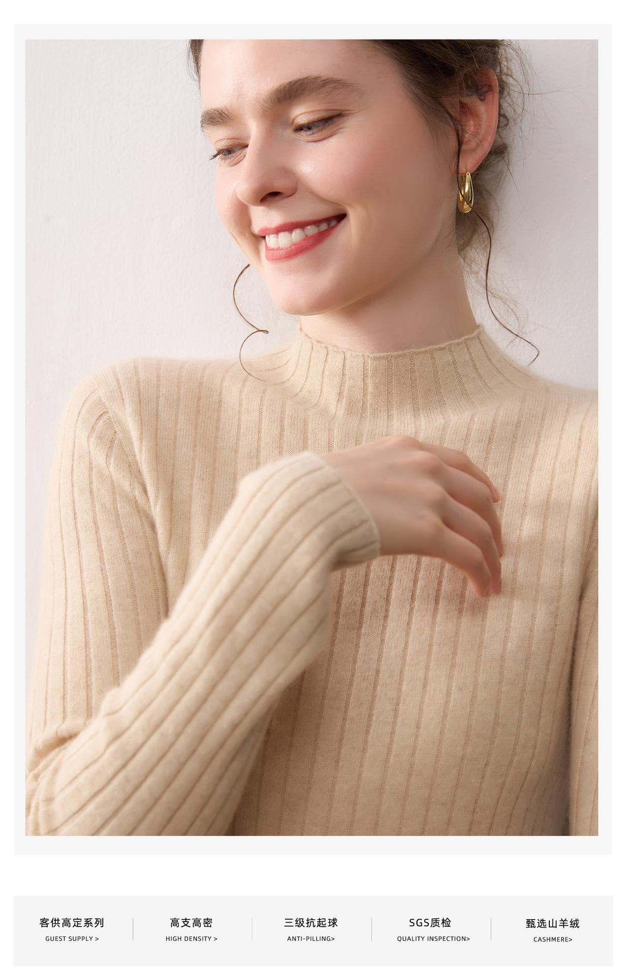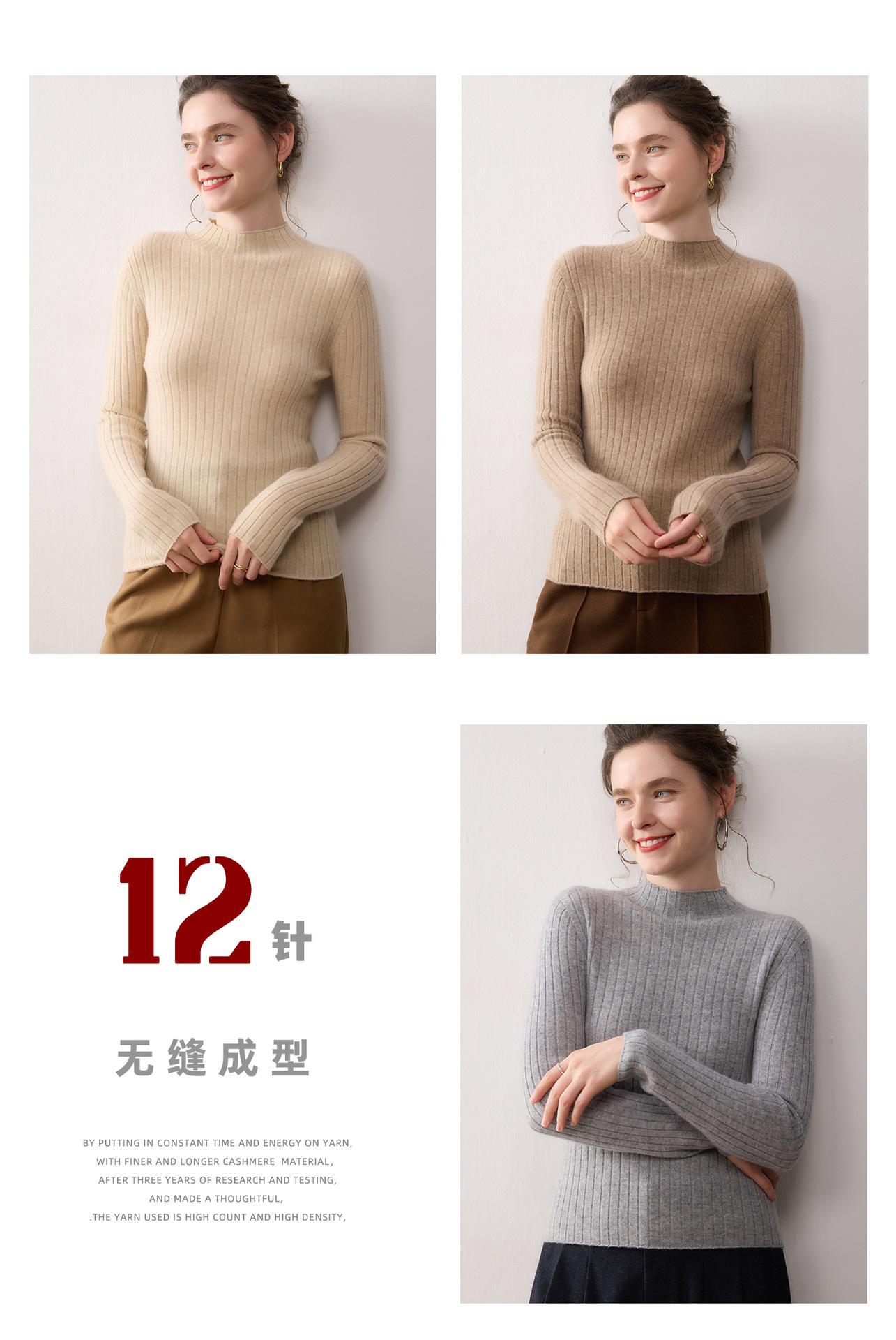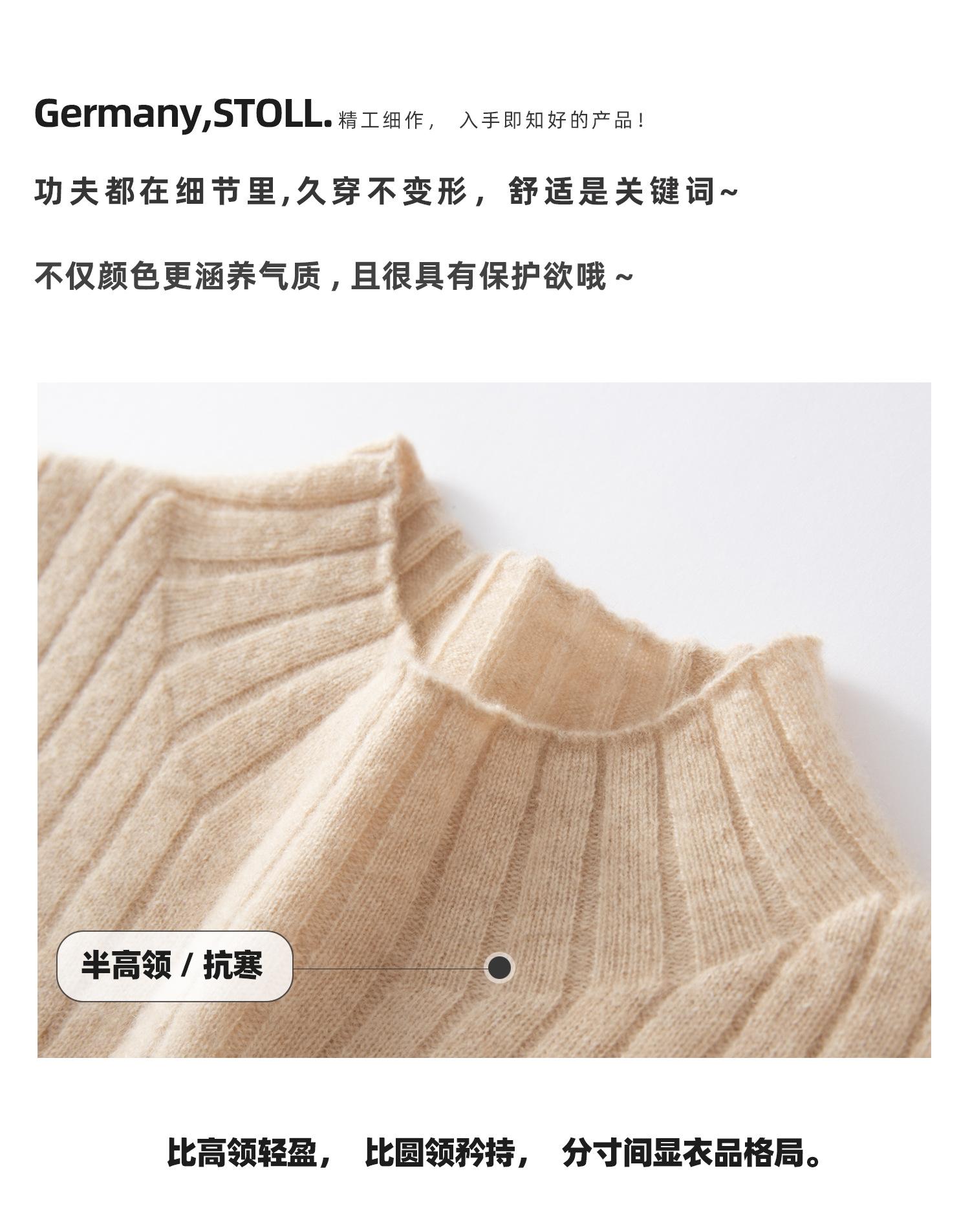 Suéter Versátil de Corte Slim 100% Cachemira Pura Temperamental Tejido de Cuello Semi-Alto 2025 Otoño/Invierno Nuevo Tejido Base para Mujer