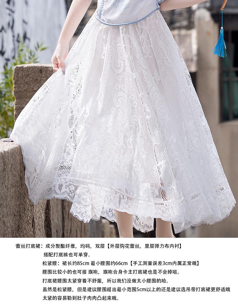 Moon white and wind clear, White [one size fits all, default size is m], Off-white lace bottom skirt double la...