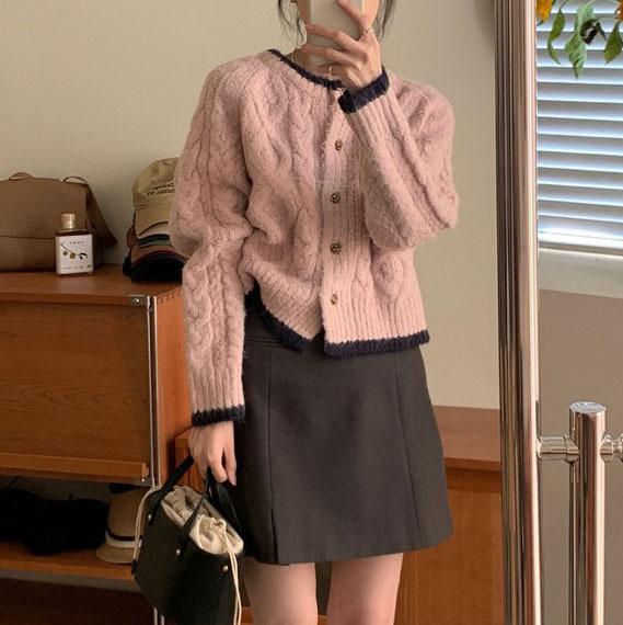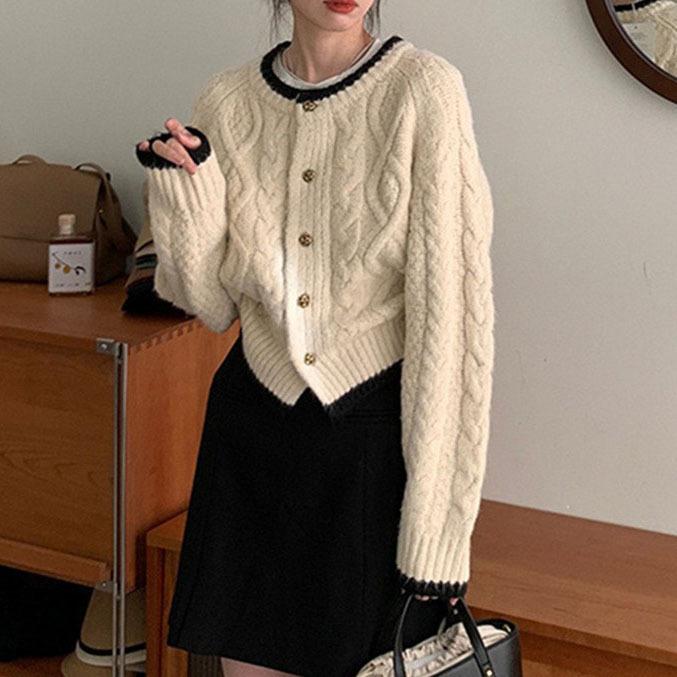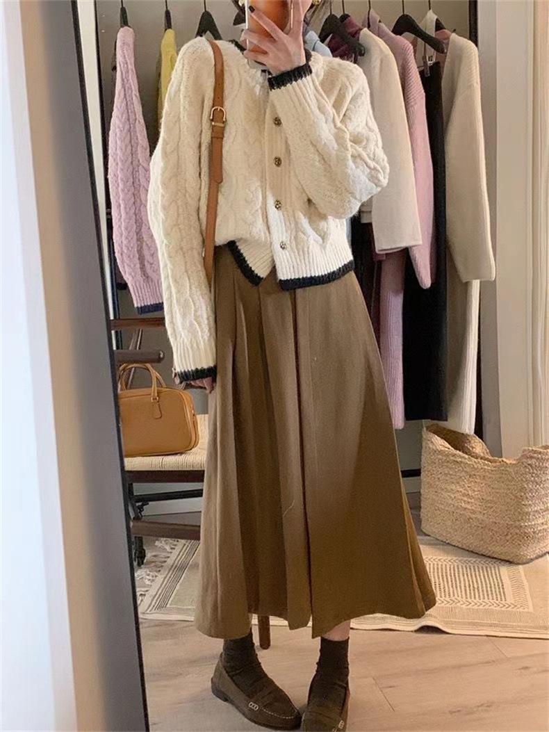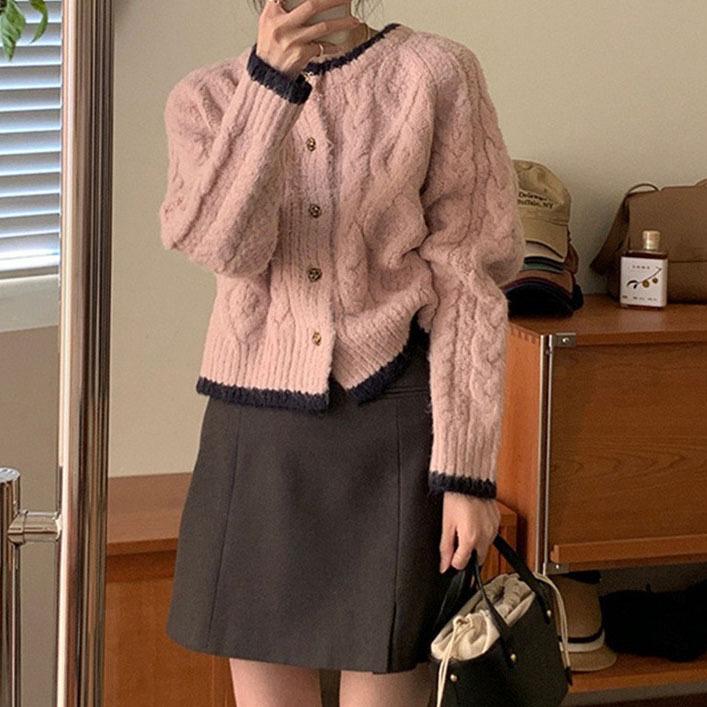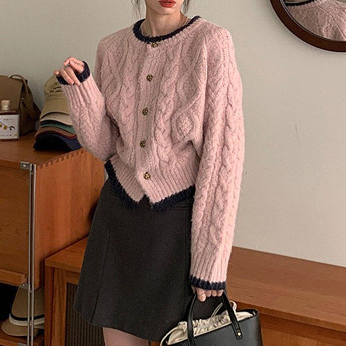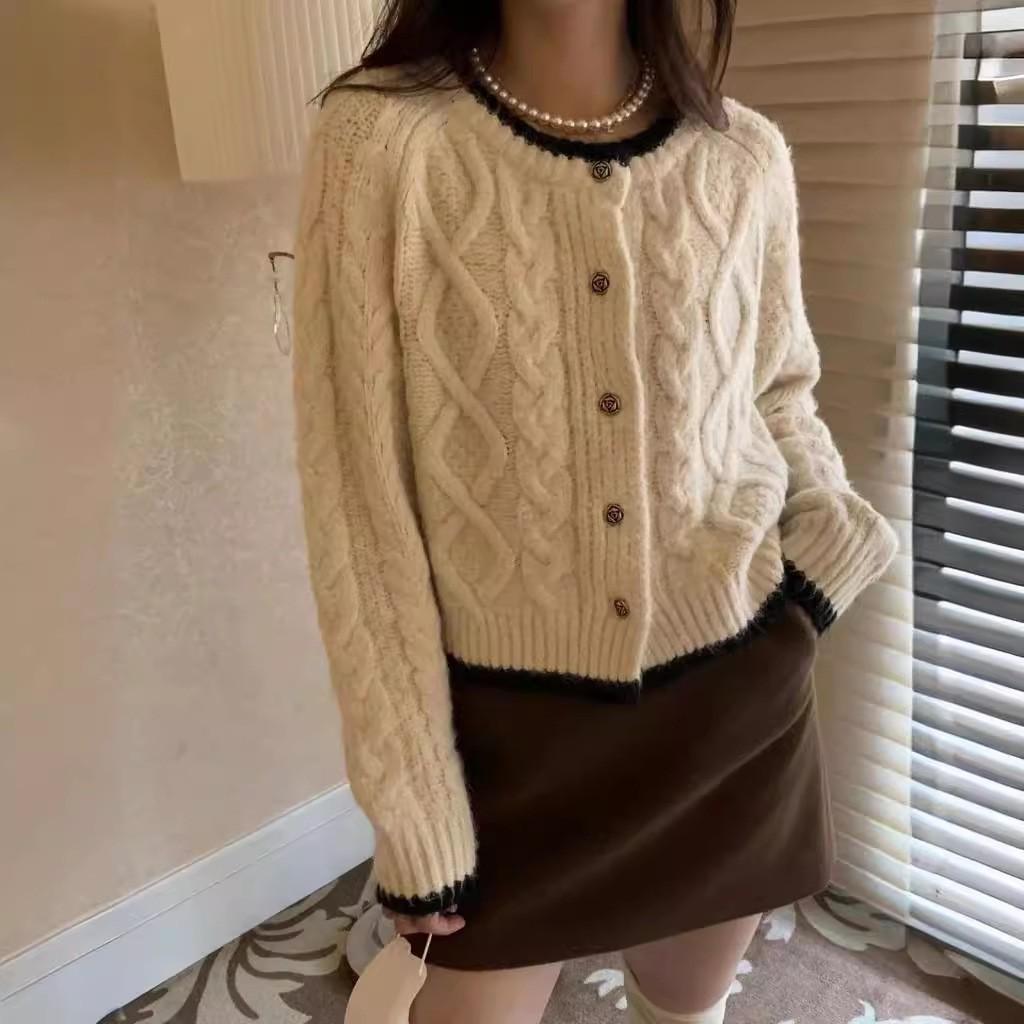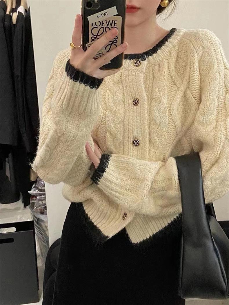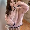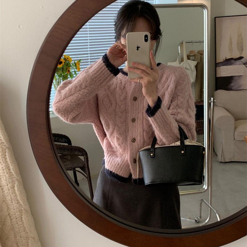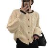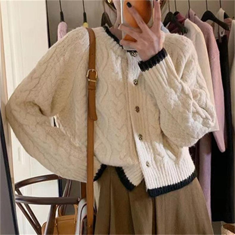 Suéter de Punto Estilo Coreano 2025 con Bloques de Color de Cuello Redondo para Mujer Otoño Invierno Ropa Exterior Estilo Holgazán Abrigo Cárdigan de Punto para Mujer Engrosado