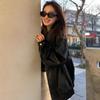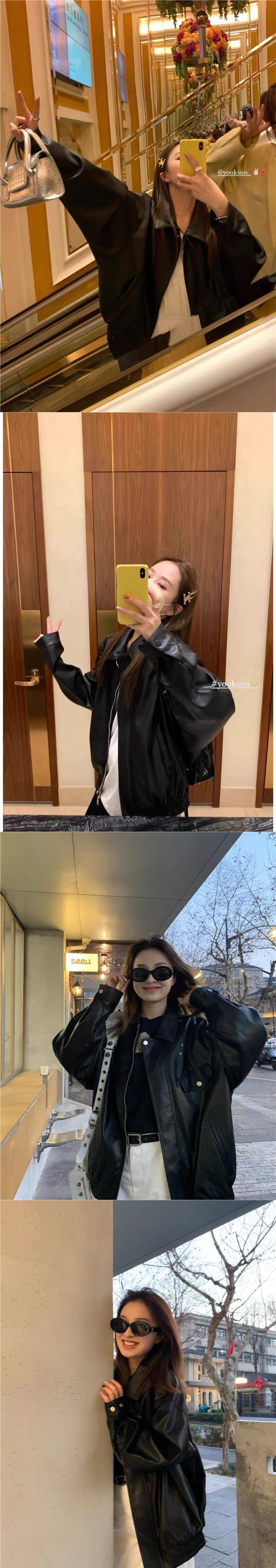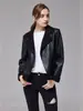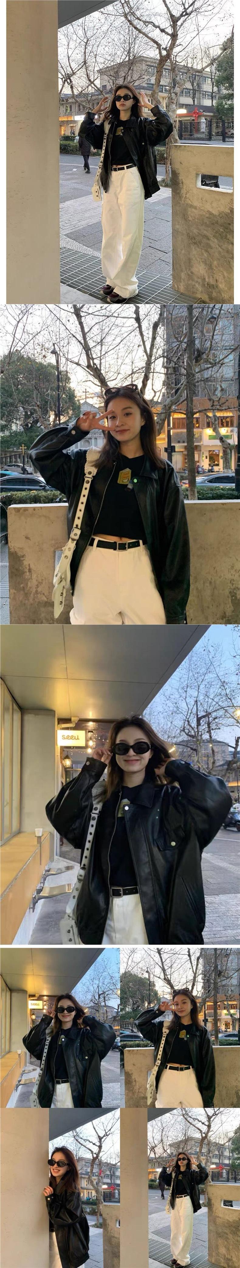 Nueva Chaqueta Abrigo de Cuero PU con Solapa y Cremallera para Otoño y Primavera para Mujer, Corta, Holgada, Adelgazante, Estilo Americano Retro, Chaqueta de Motociclista