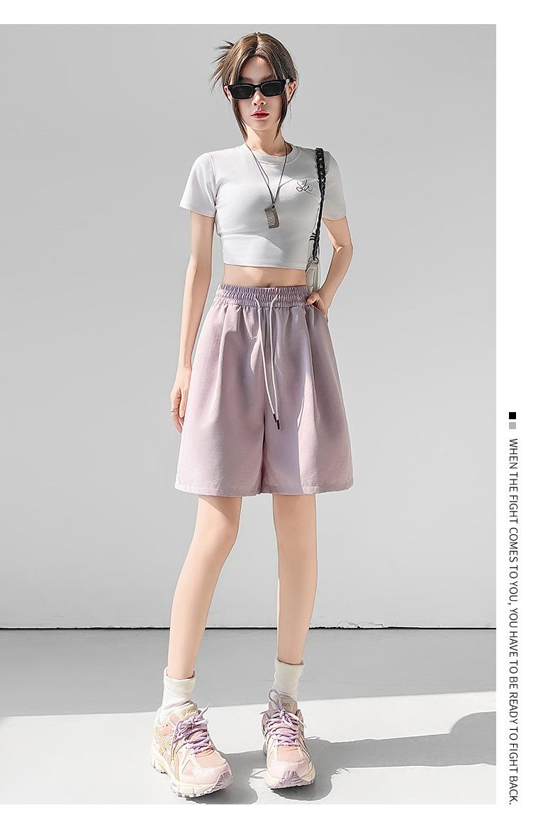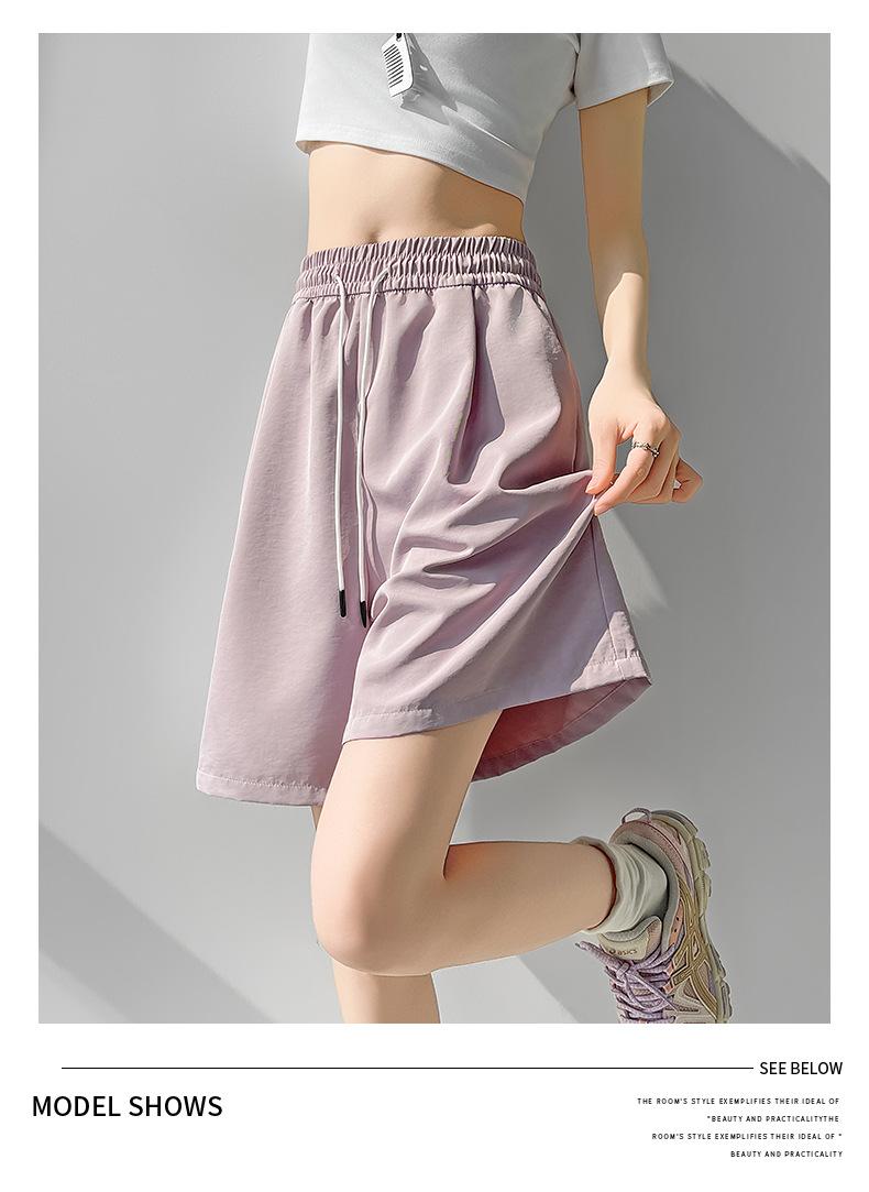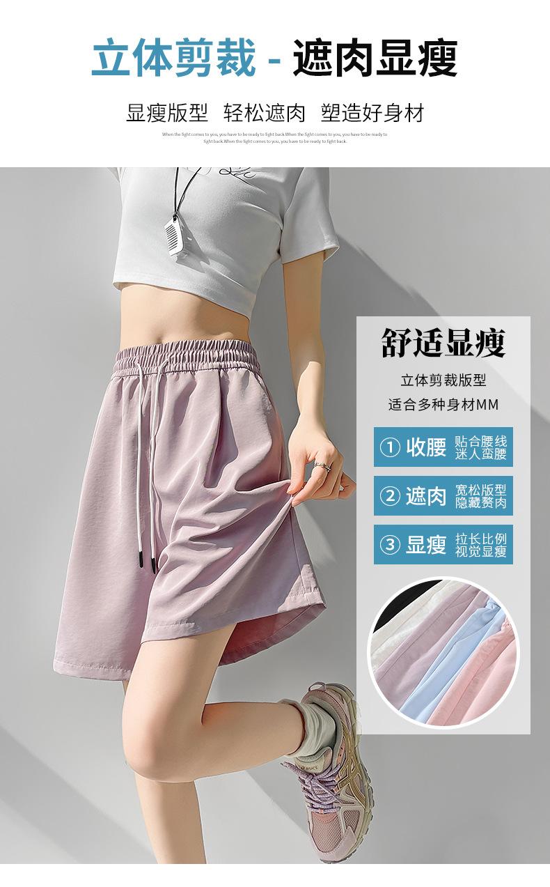 Shorts Casuales de Seda de Hielo para Mujer Verano Delgados 2025 Nueva Llegada Sueltos Pierna Ancha Pantalones Deportivos Sueltos de Secado Rápido Pantalones de Largo Medio