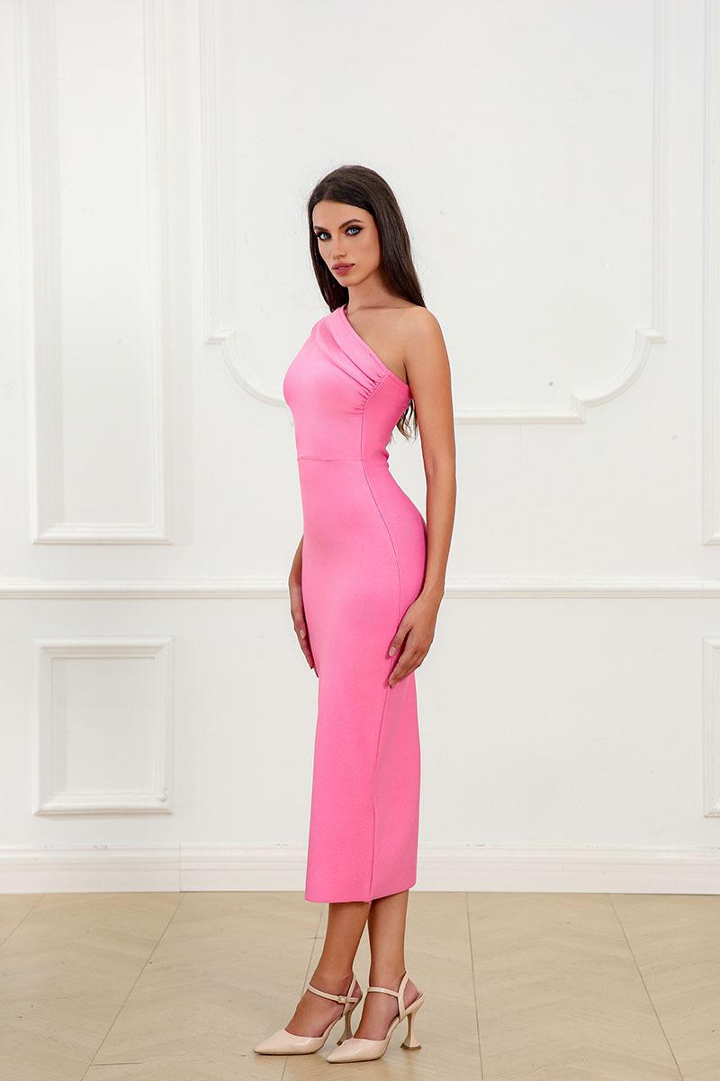 Nuevo Vestido Vendaje de Moda Elegante Vestido de un Hombro Falda Vendaje Ajustada Sexy Vestido de Noche