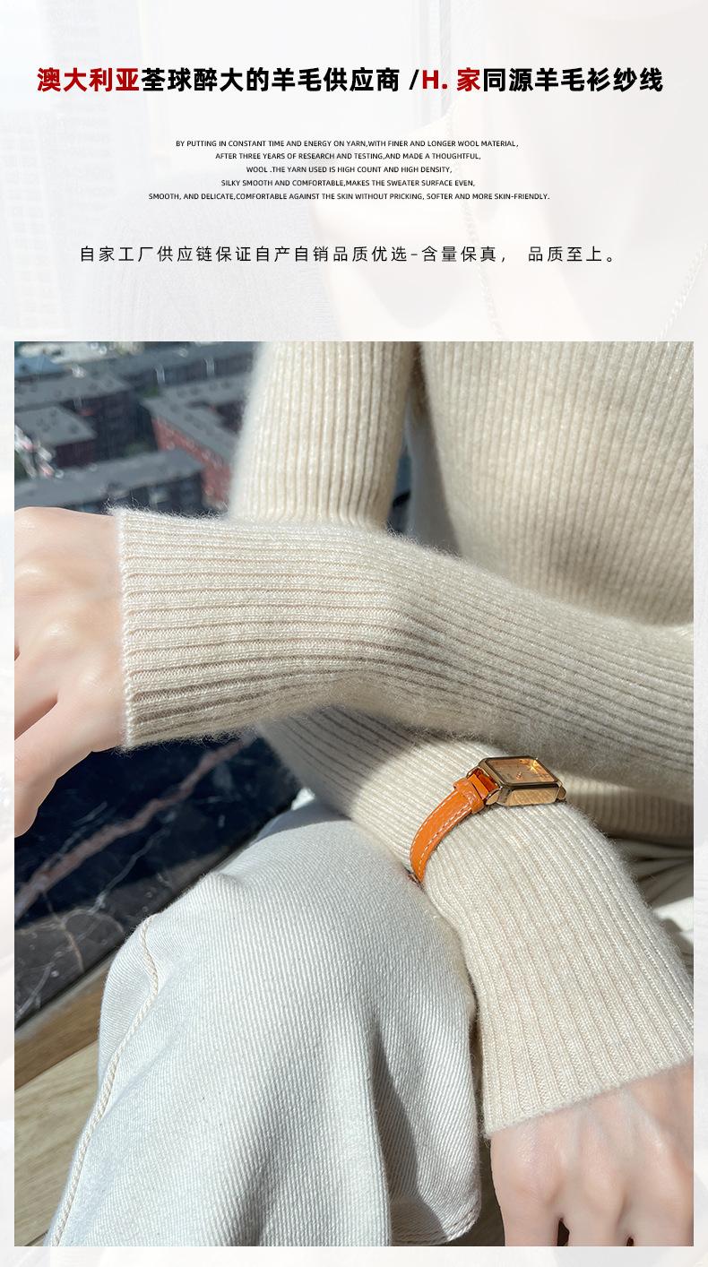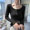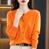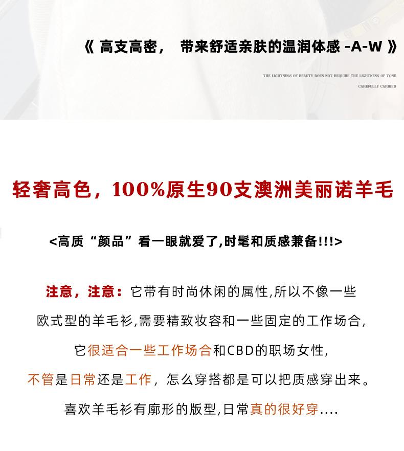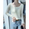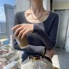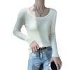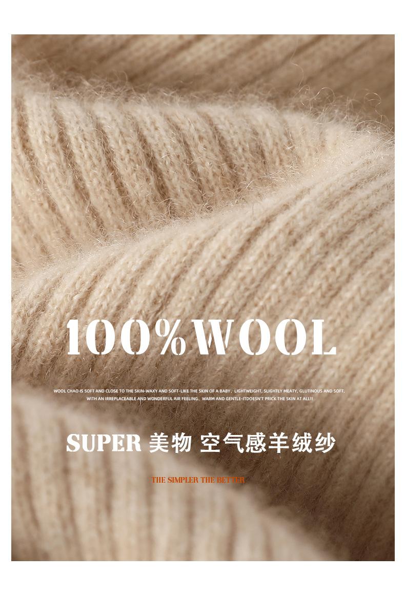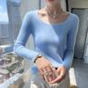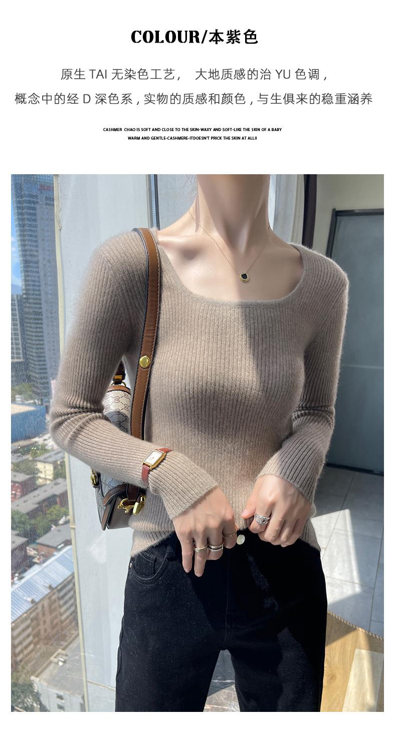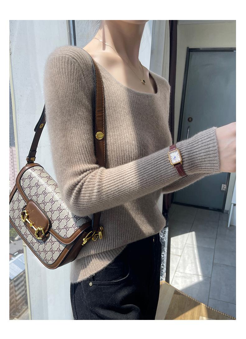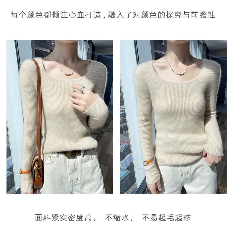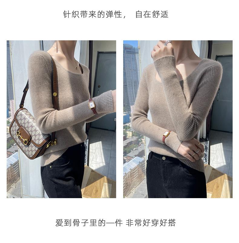 Otoño e invierno Nuevo suéter de lana pura con cuello en U para mujer, top corto de cuello redondo grande, suéter básico ajustado